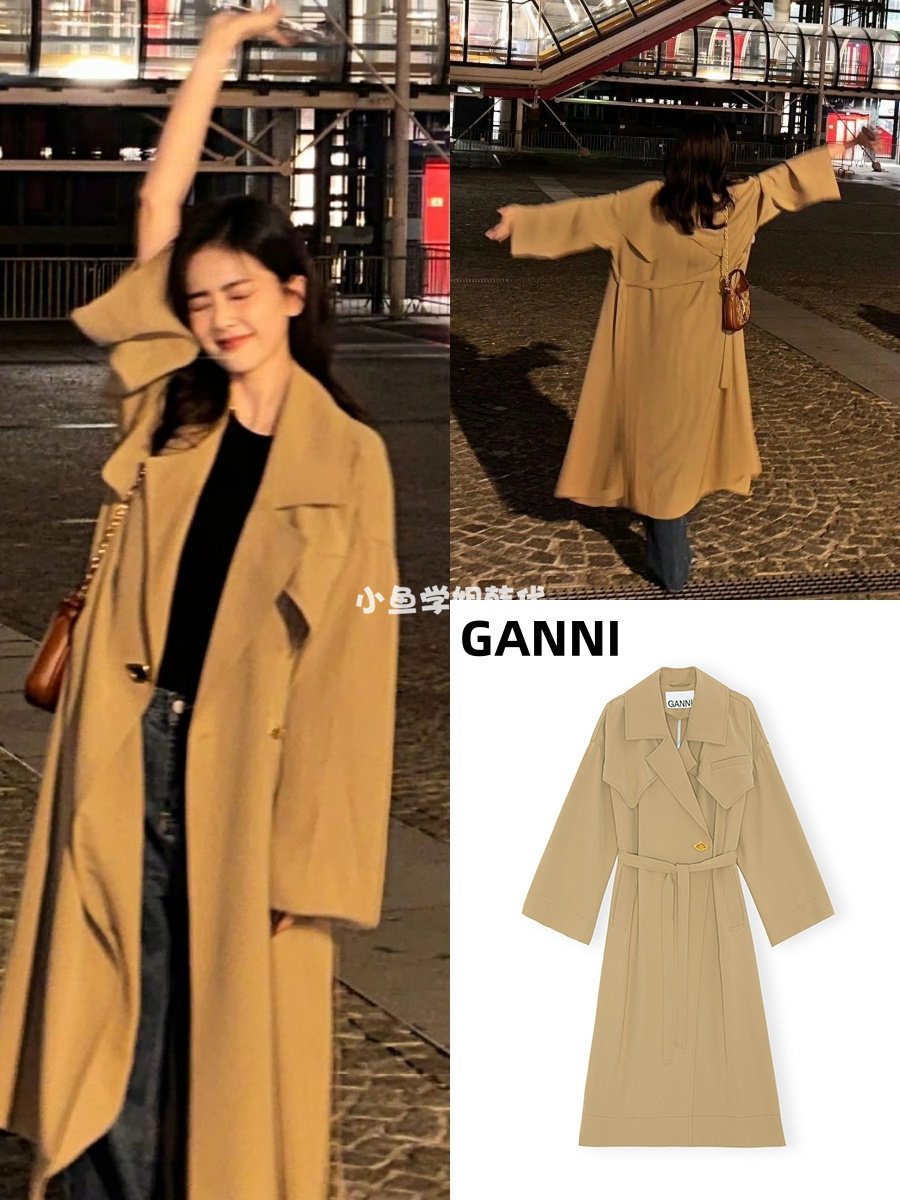 Подлинная покупка ганни белого оленя, те же 23 осень и зимние новое классическое силуэт свободный и вертикальный смысл плащ