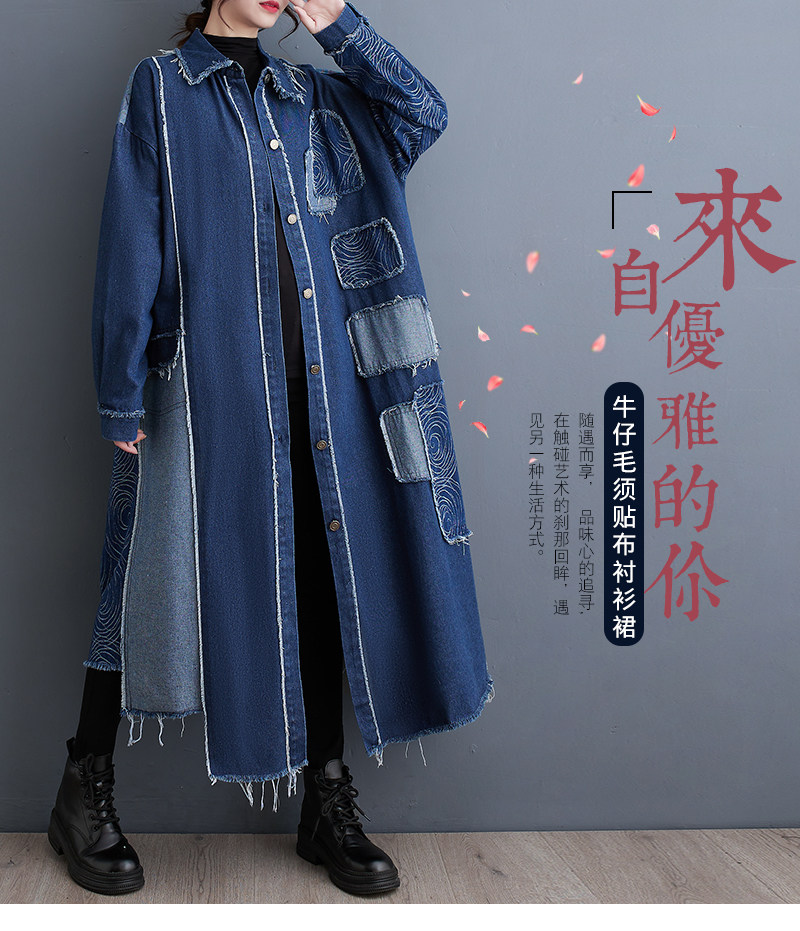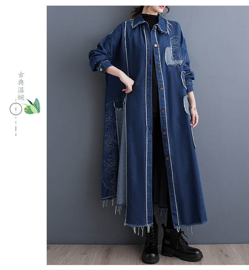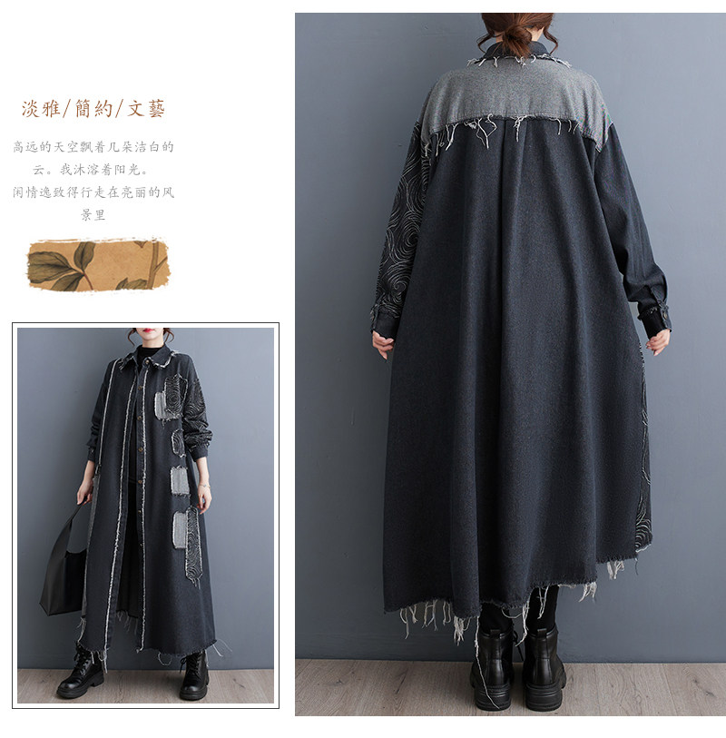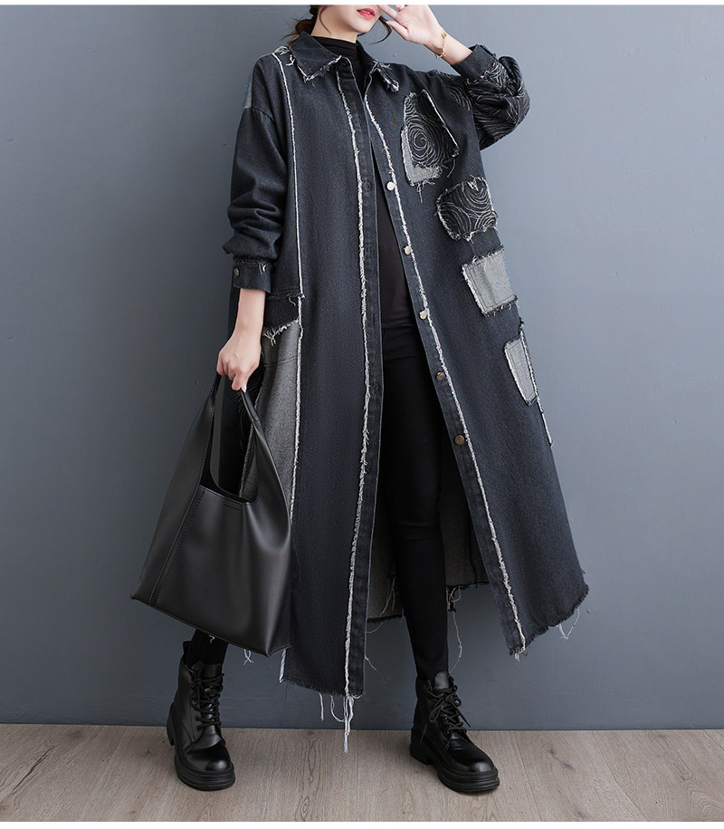 Демисезонный ретро двусторонний джинсовый плащ, большой размер, оверсайз