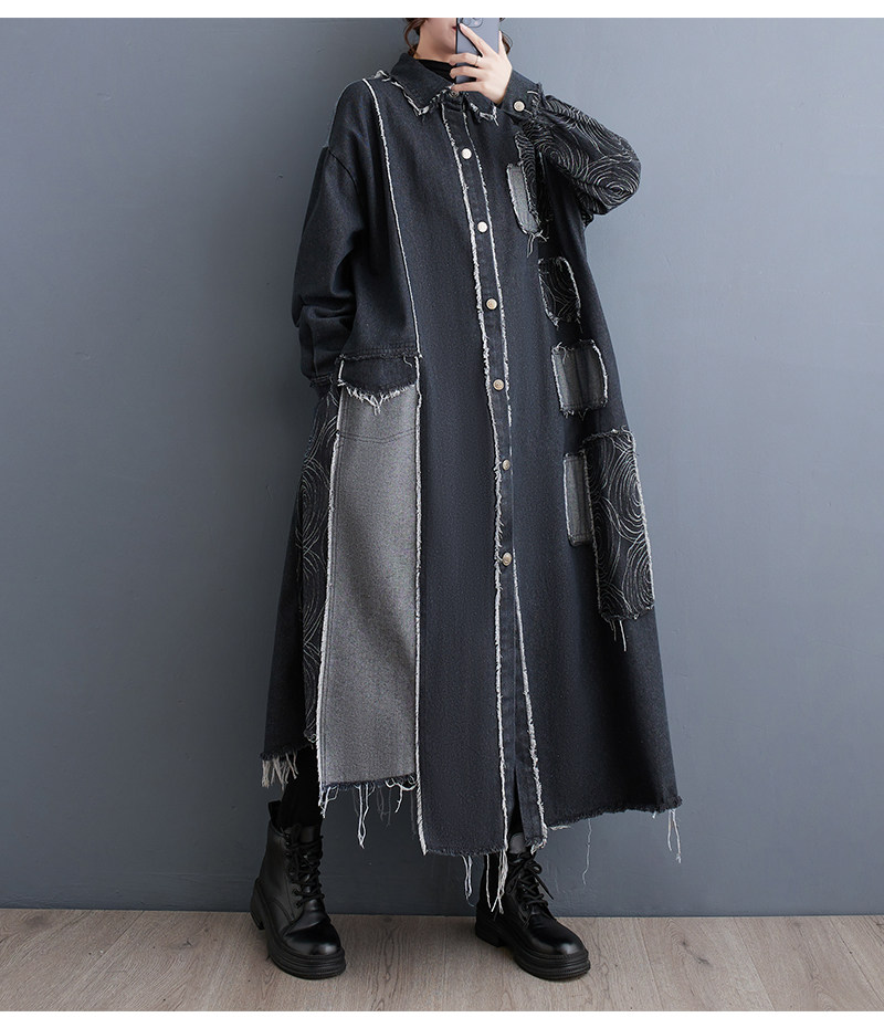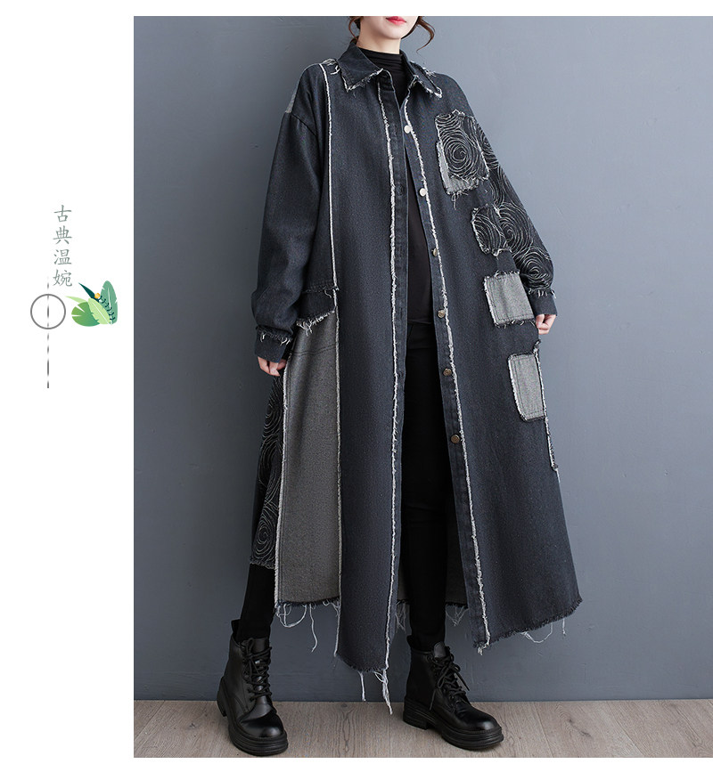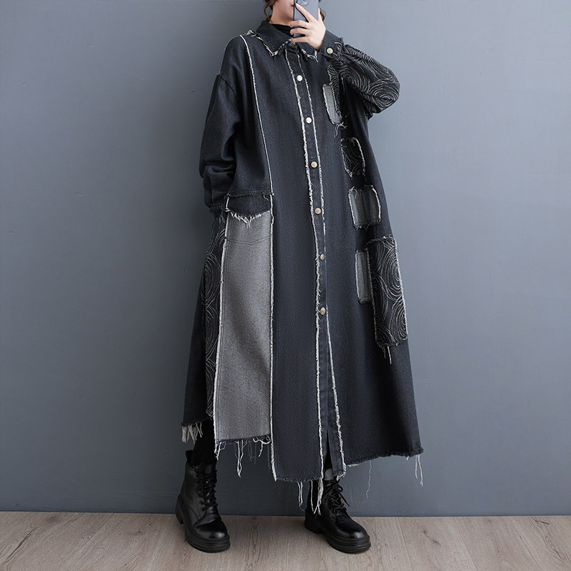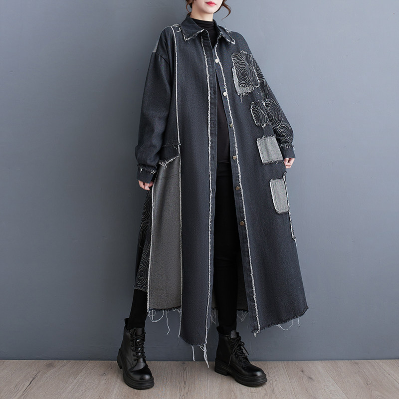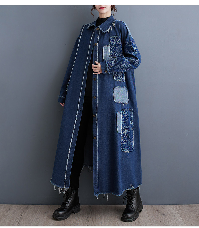 Демисезонный ретро двусторонний джинсовый плащ, большой размер, оверсайз