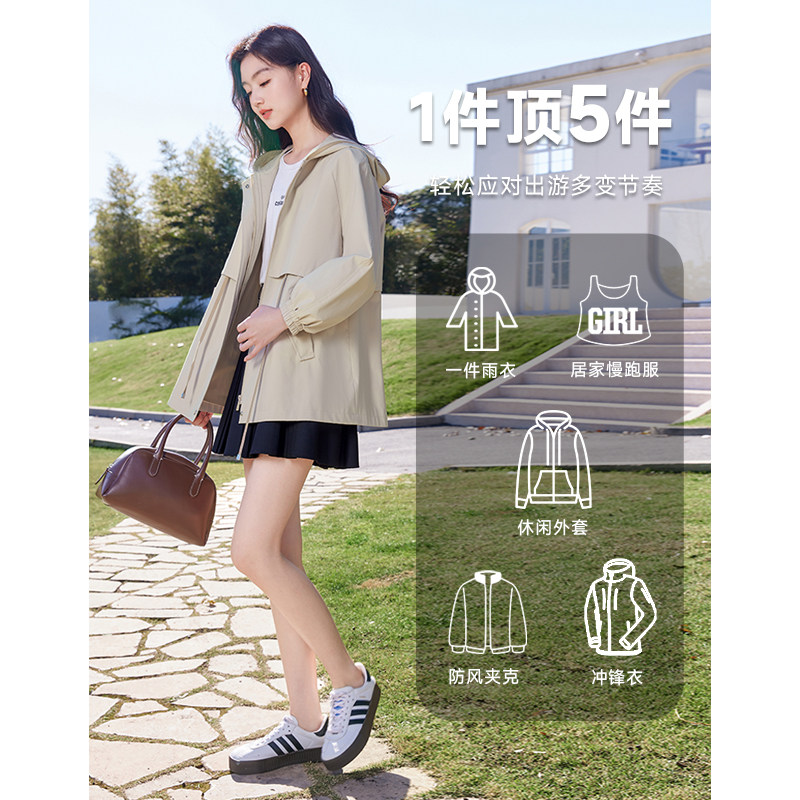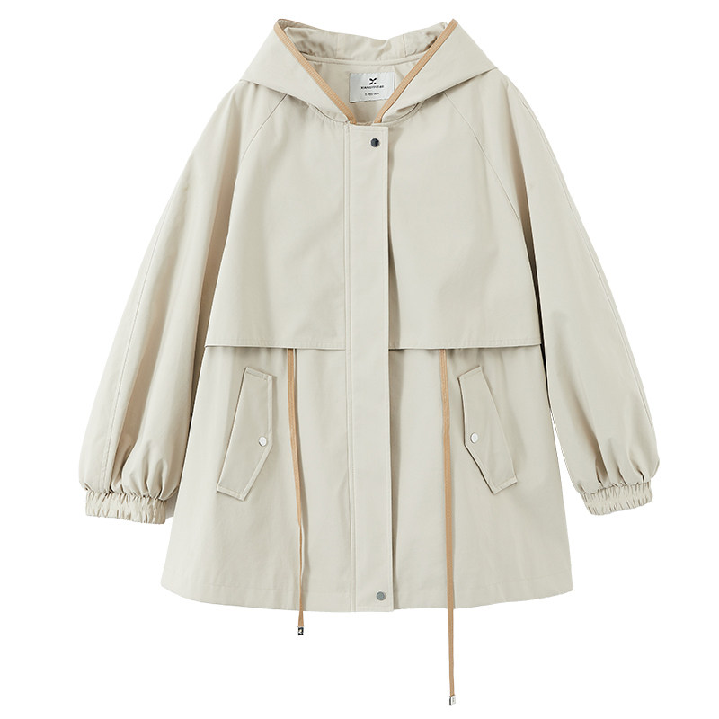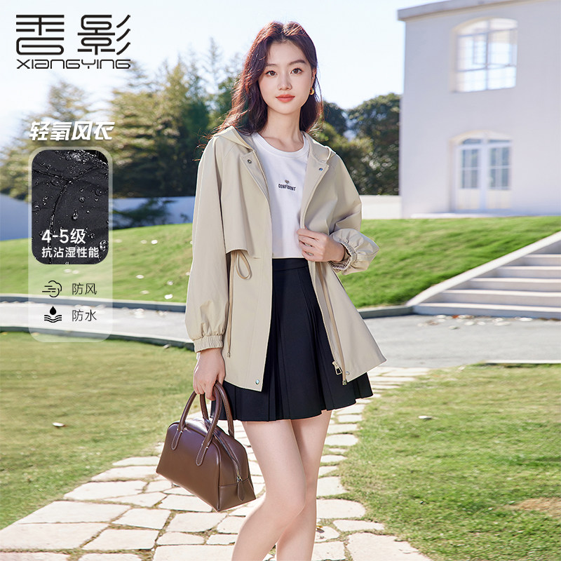 香影 Ветрозащитный водонепроницаемый осенний плащ для отдыха, бежевая цветная длинная толстовка с капюшоном, подходит для подростков