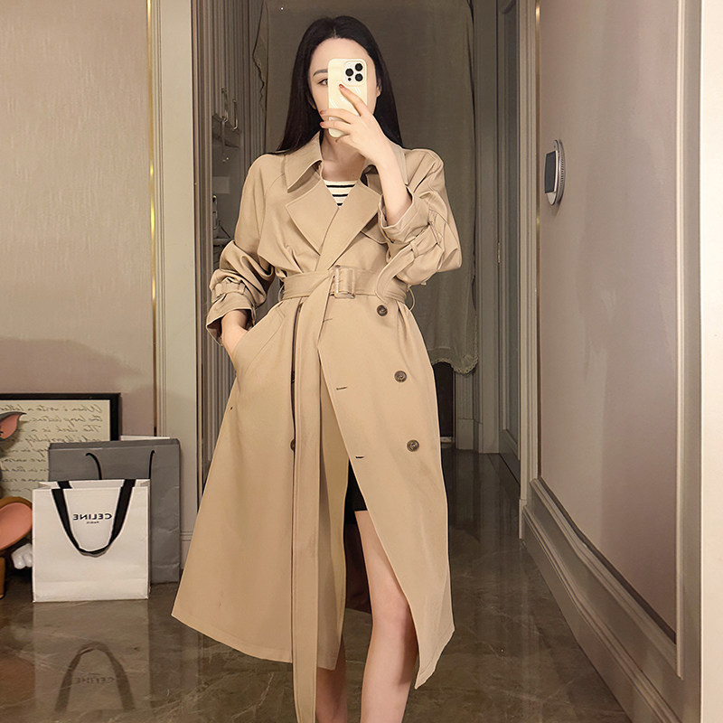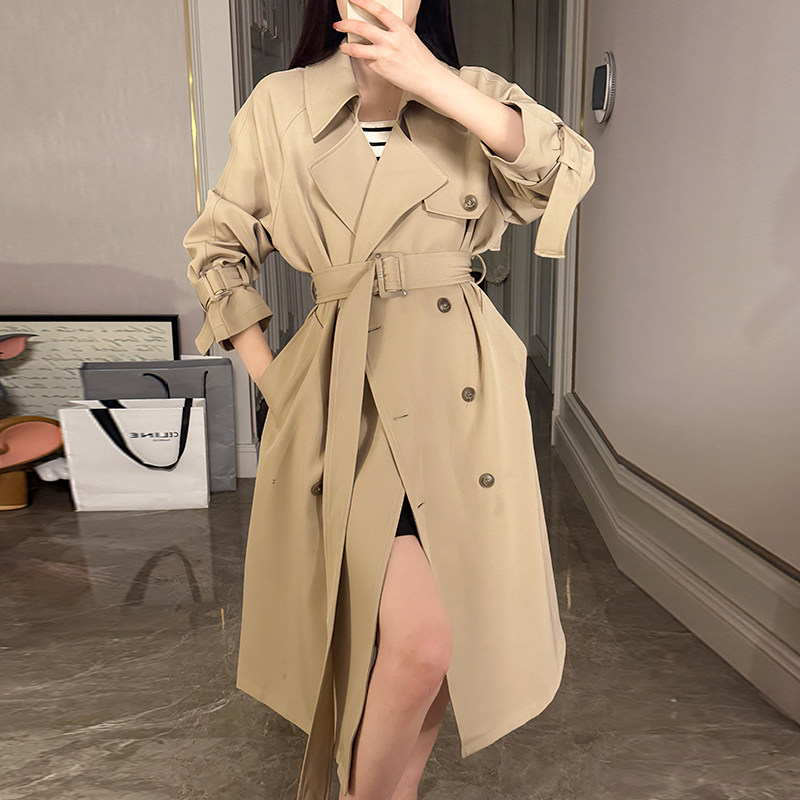 Хаки плащ, длинная осенняя куртка, изысканный стиль, средней длины, подходит для подростков, в британском стиле