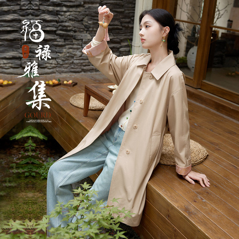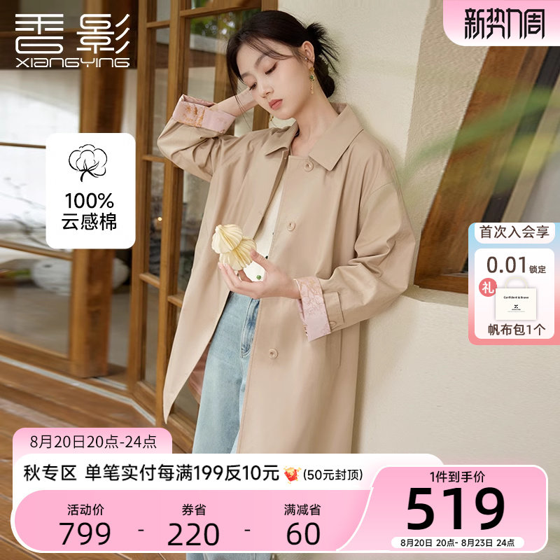 香影 Хаки длинный плащ, осенняя куртка для отдыха, средней длины, в британском стиле