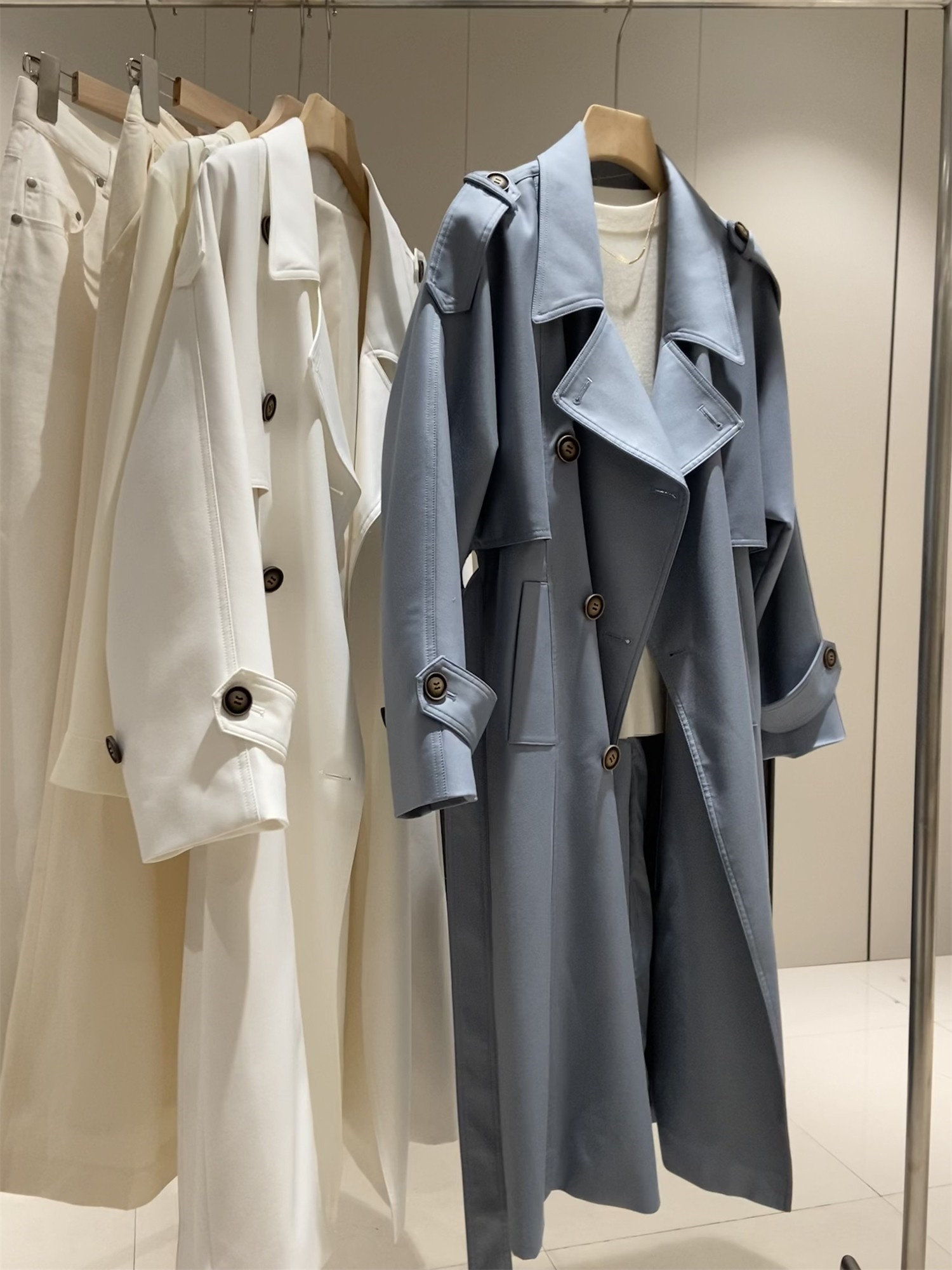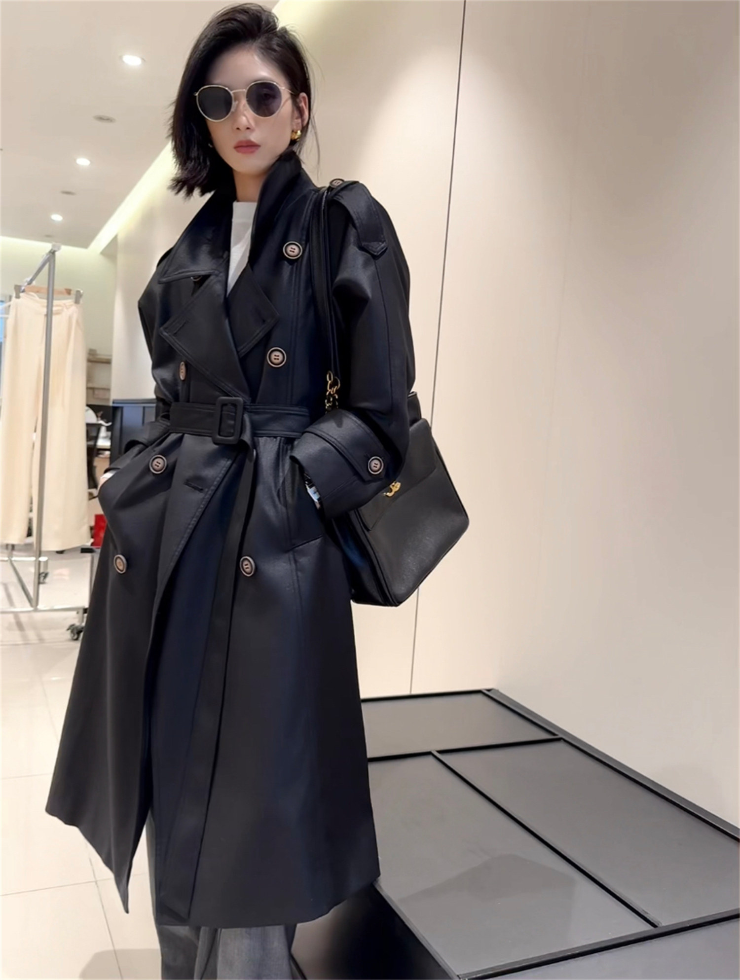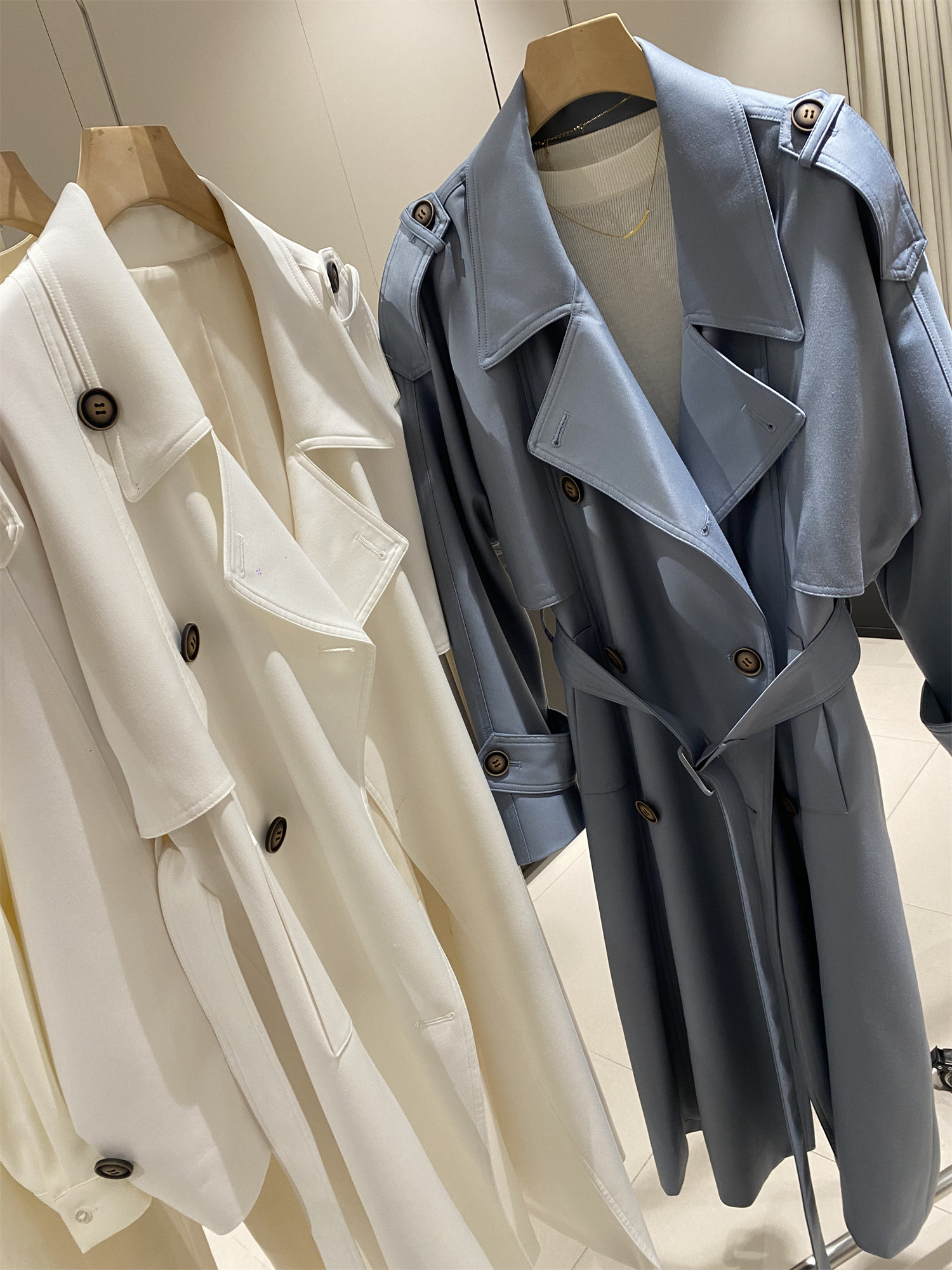 Заказывайте в торговом центре Blue Korea Mall!Высококлассное винтажное двубортное блестящее пальто и куртка-ветровка
