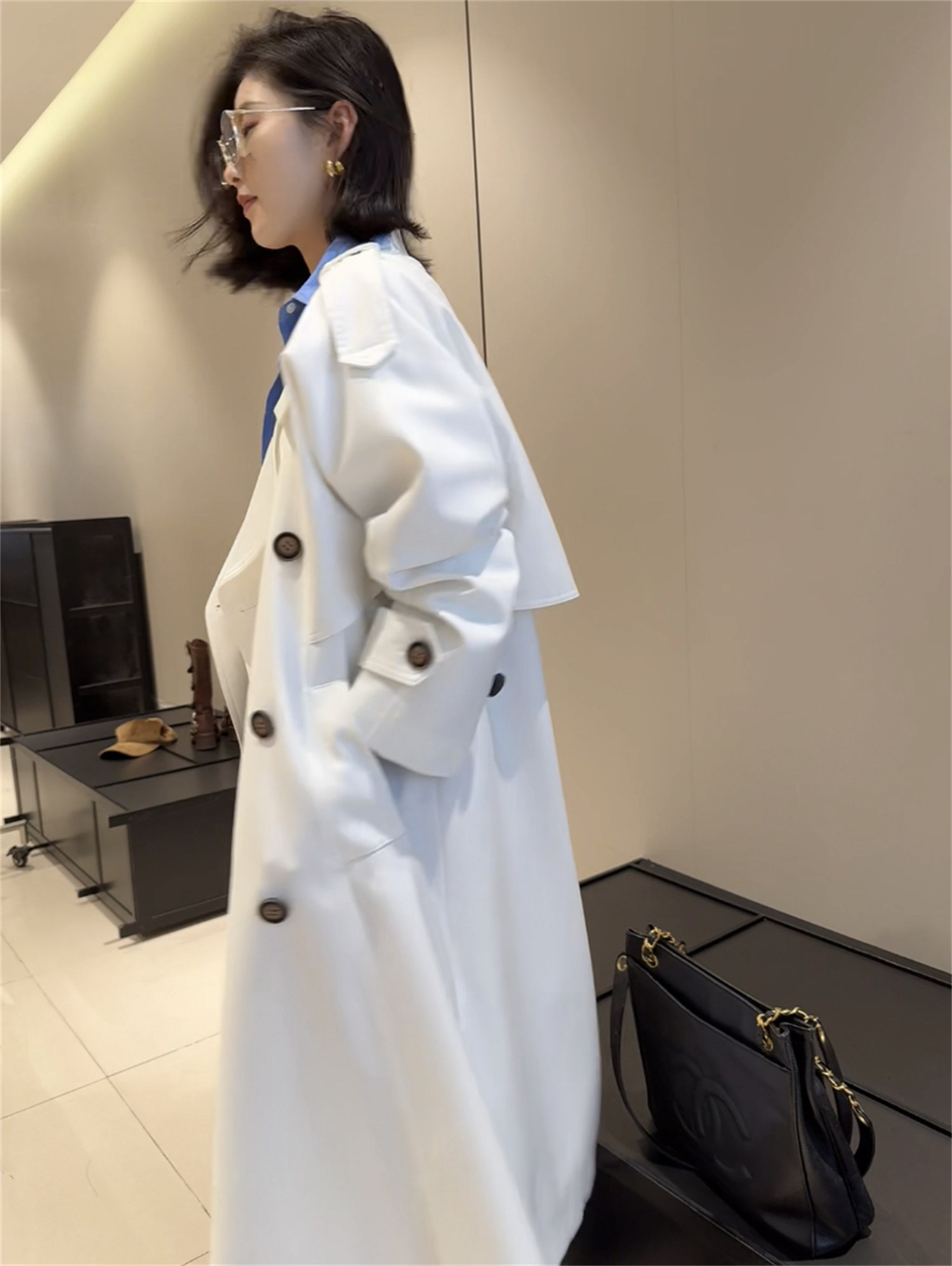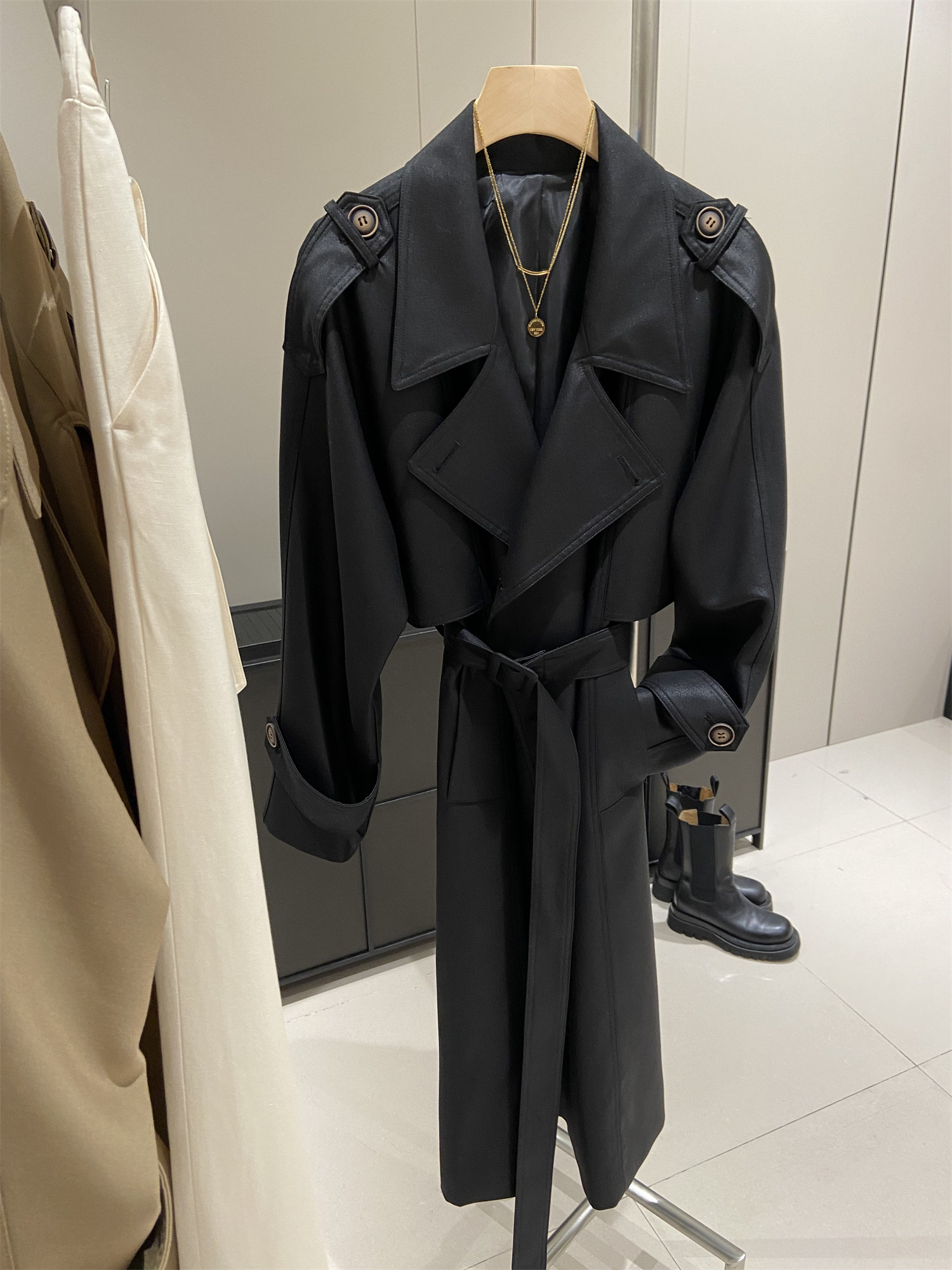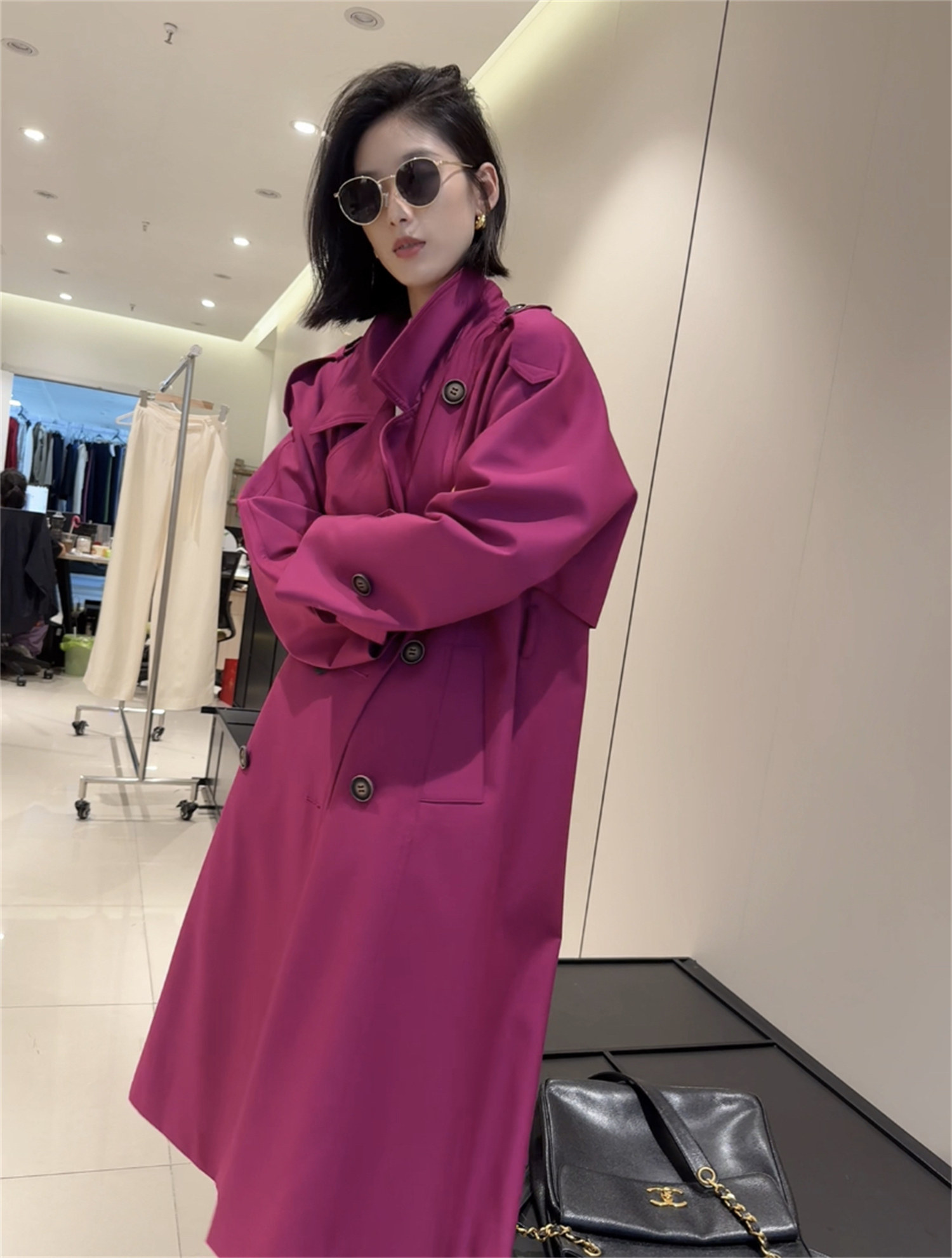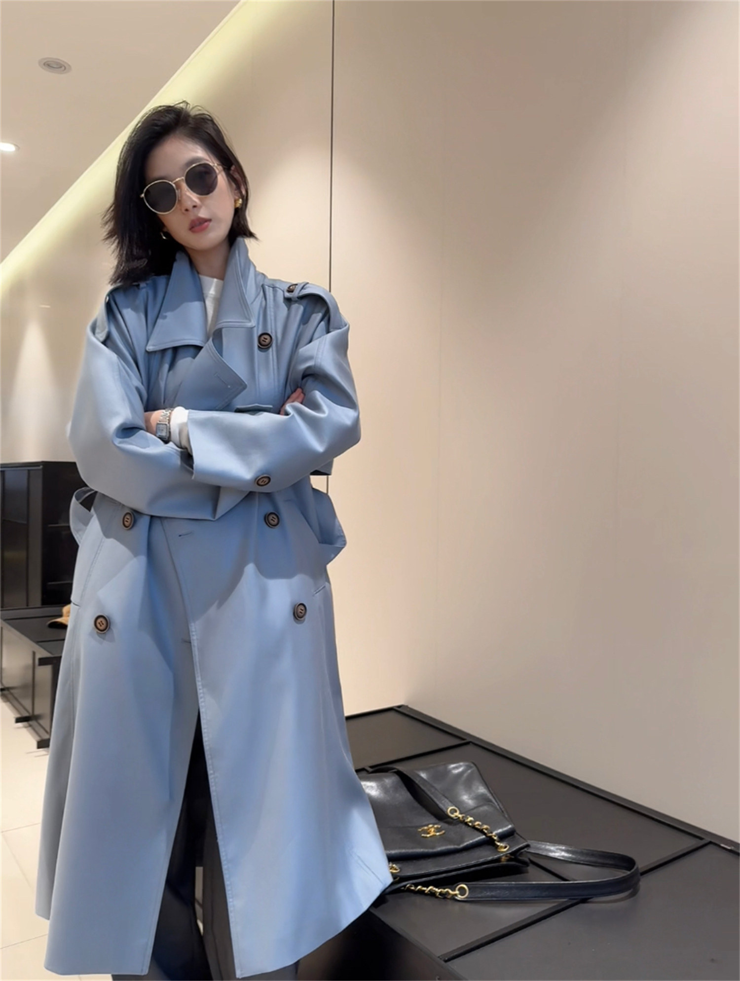 Заказывайте в торговом центре Blue Korea Mall!Высококлассное винтажное двубортное блестящее пальто и куртка-ветровка