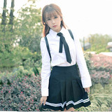 Весенний комплект, галстук, милая свежая студенческая юбка в складку, рубашка, в корейском стиле
