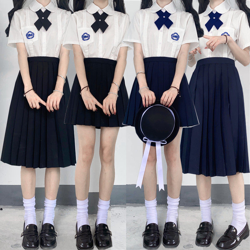- Прикрепленный средний короткий рукав + темно-синий середина юбки + галстук-бабочка (проданные носки
