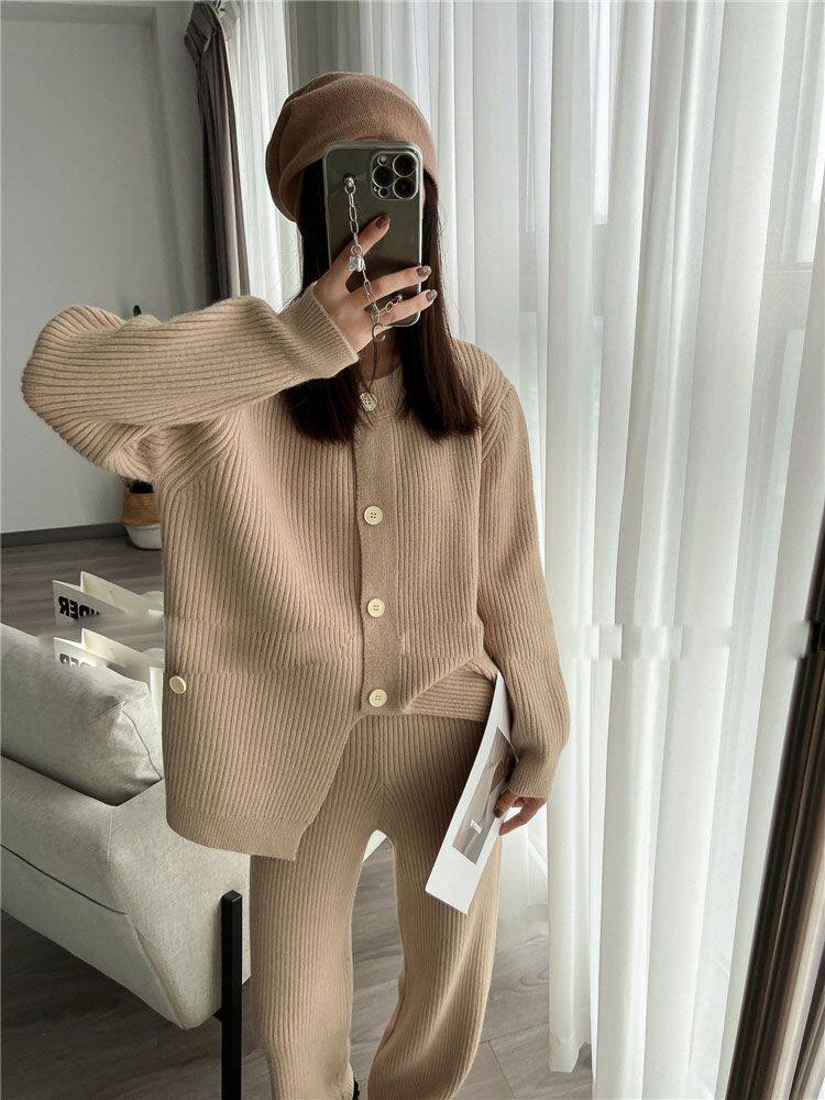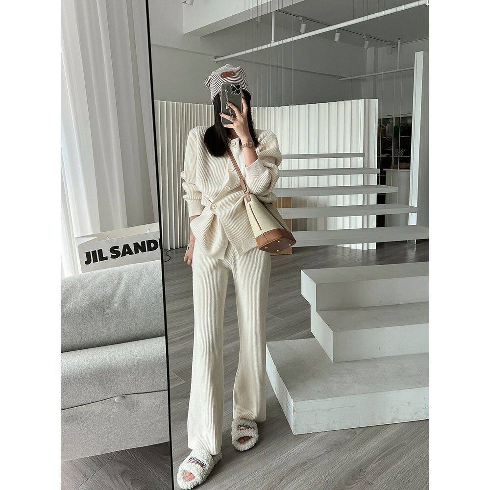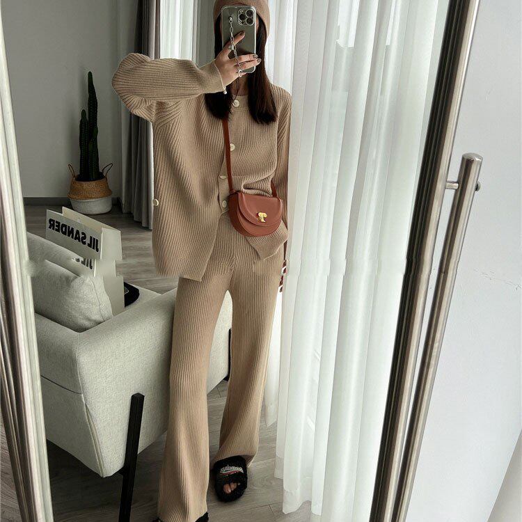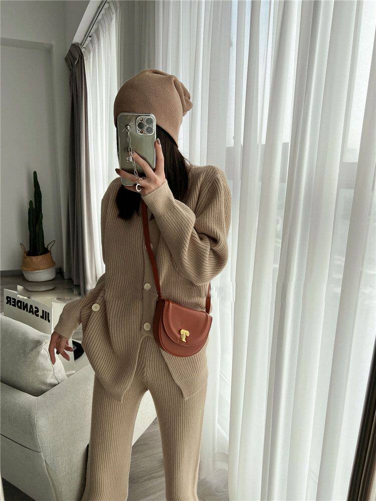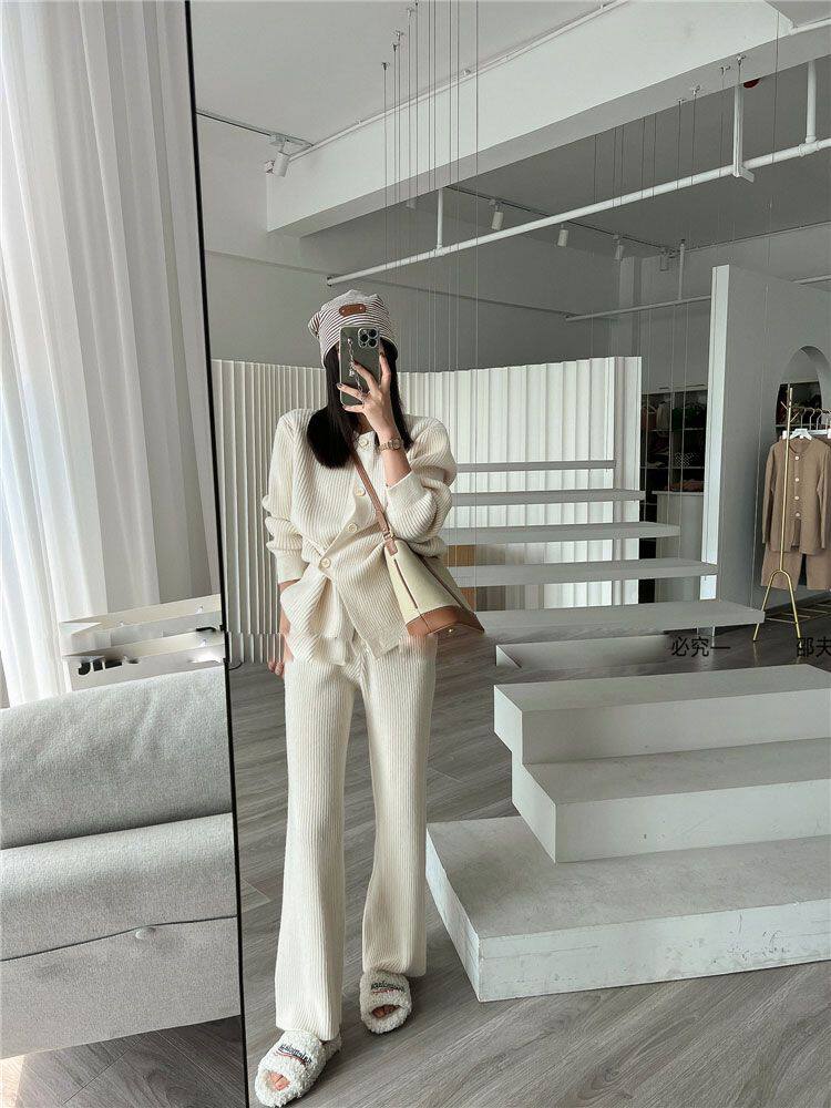 Модный трикотажный свитер, штаны, осенний комплект для отдыха, подходит для подростков, в западном стиле