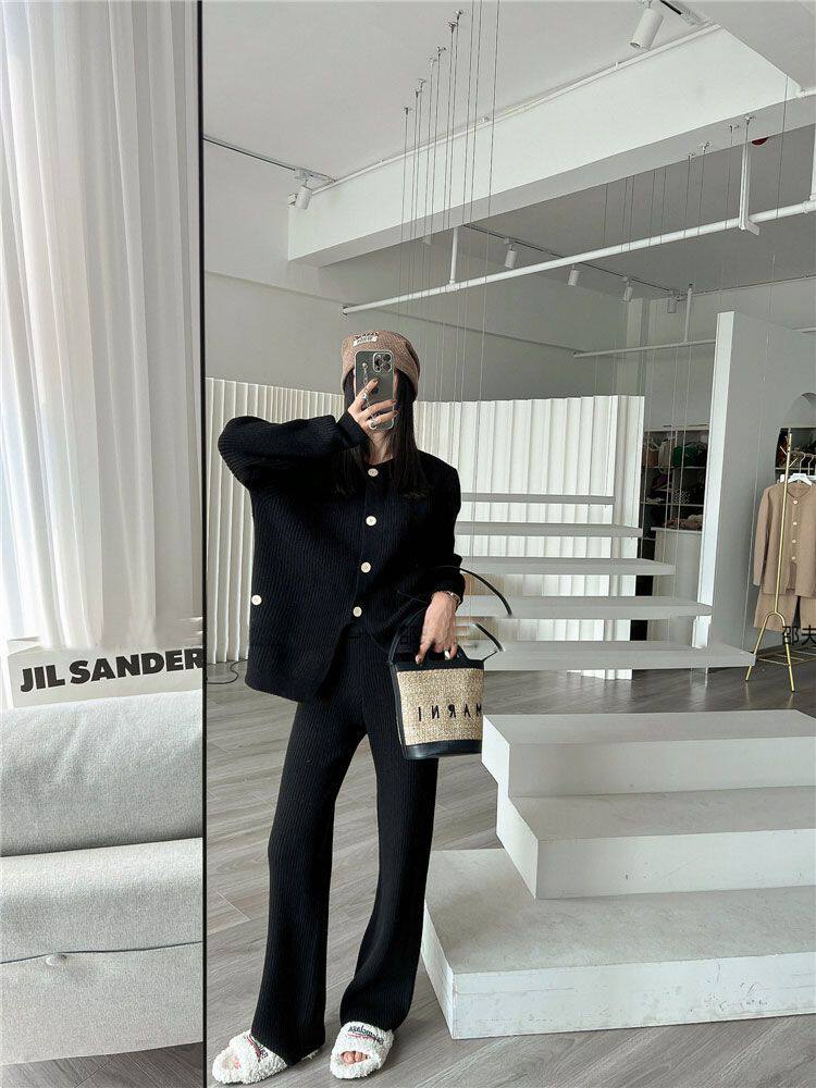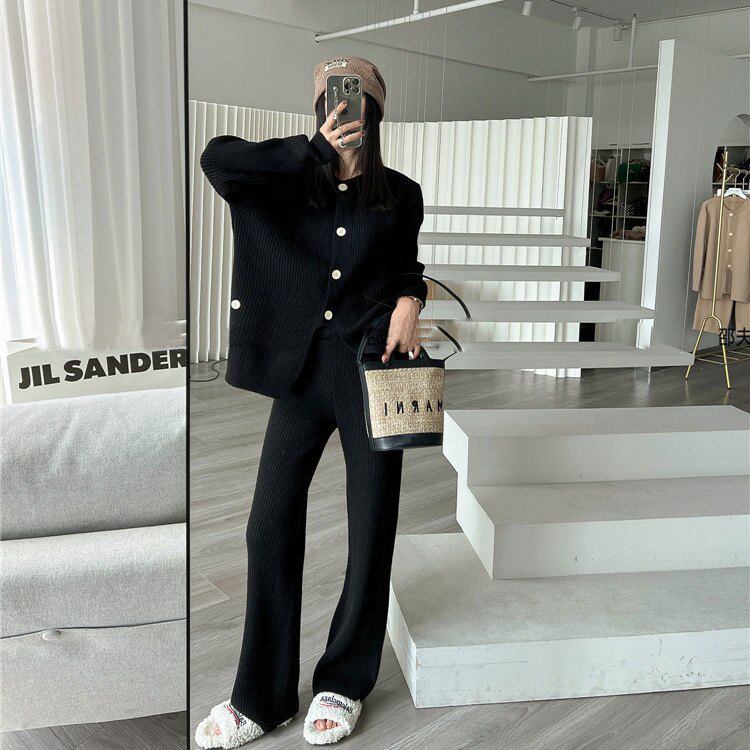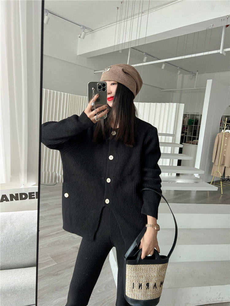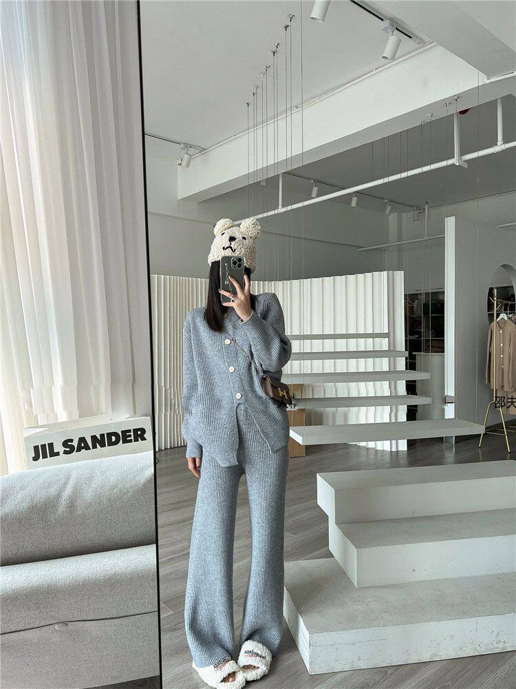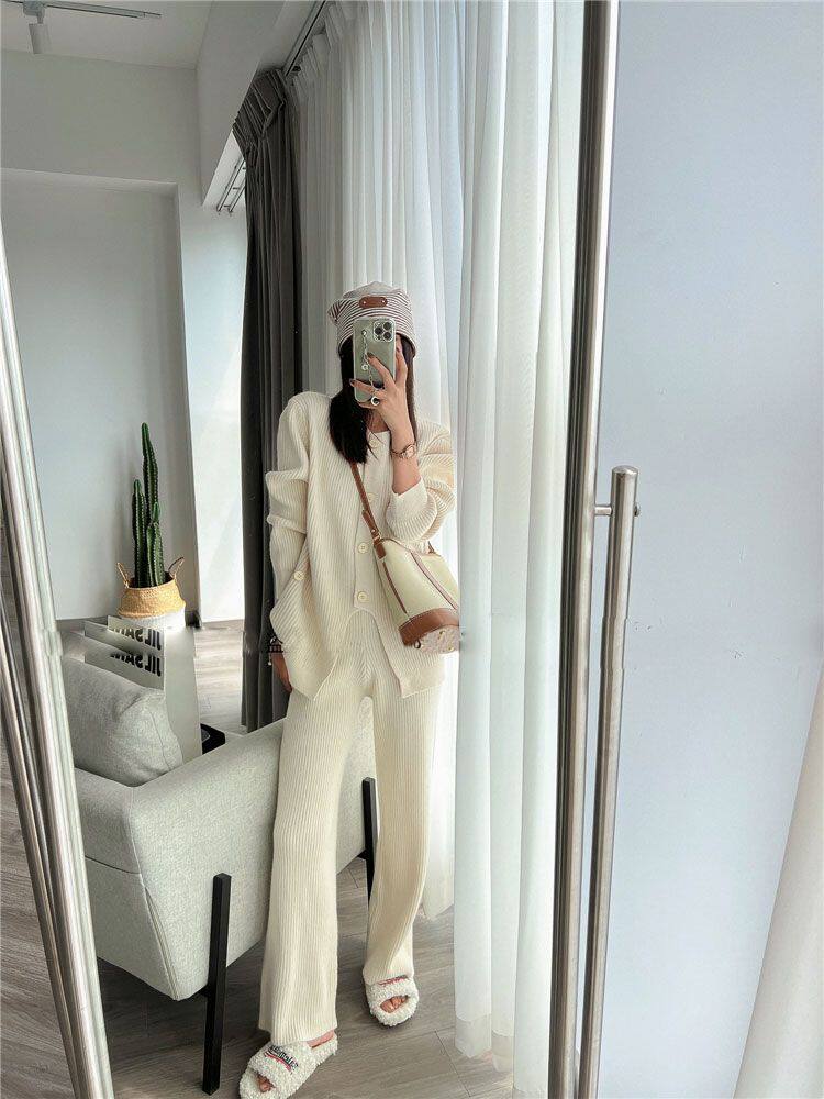 Модный трикотажный свитер, штаны, осенний комплект для отдыха, подходит для подростков, в западном стиле