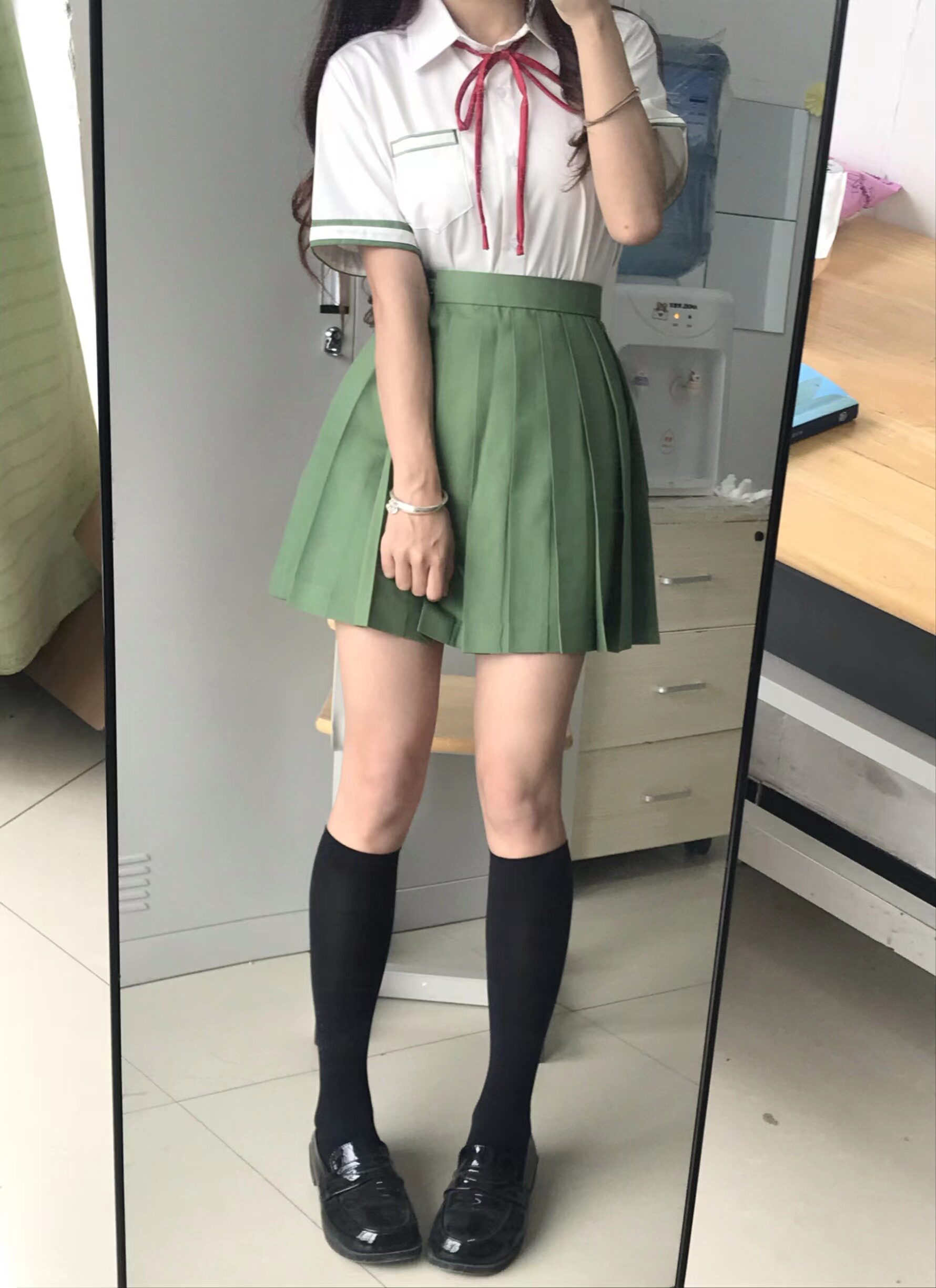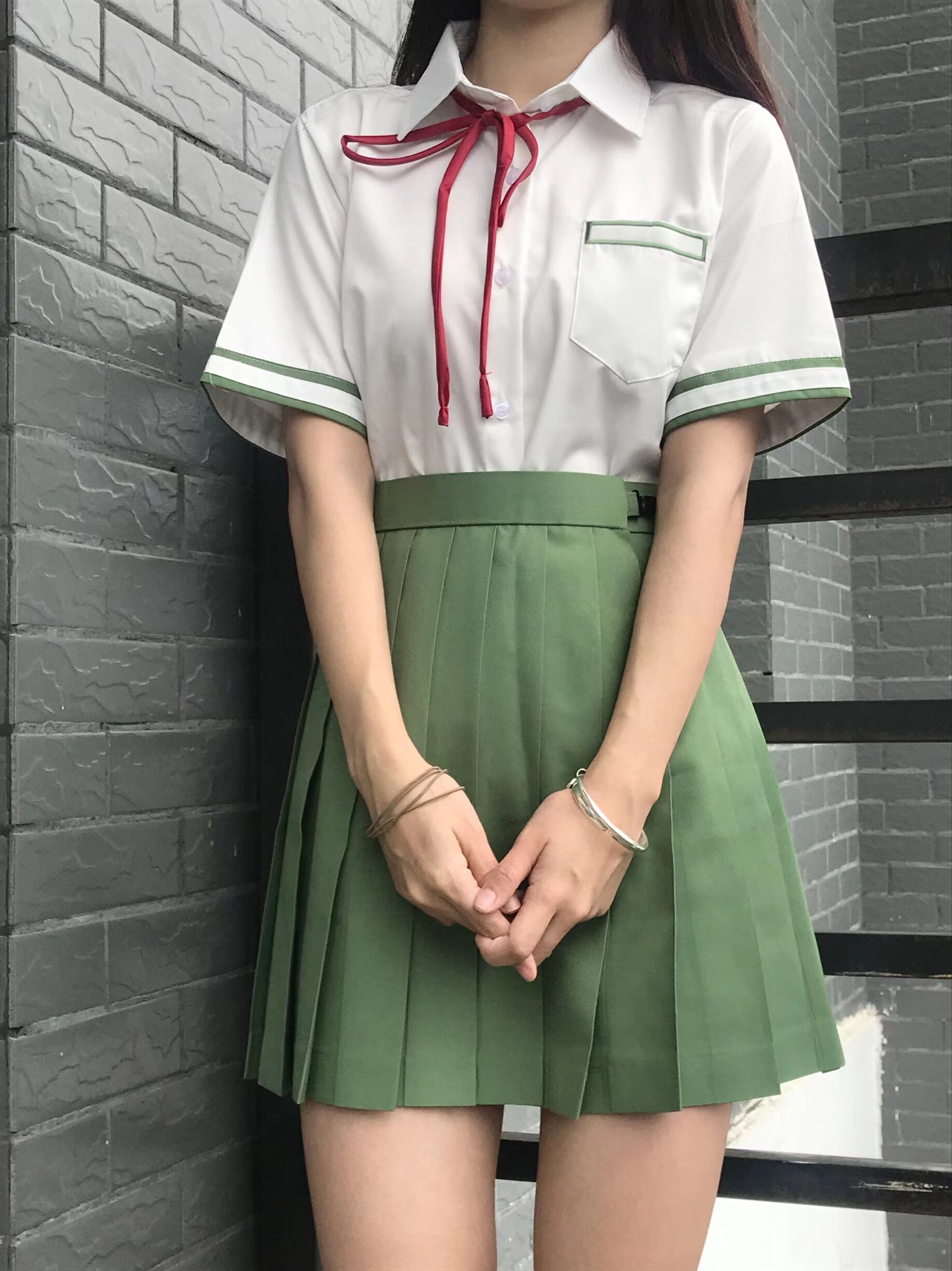 | Цвет: | 【Одиночная кусок】 Белая рубашка с короткими рукавами + вина красная воротничка, Рубашка, черная юбка в складку, короткий рукав, [Цельное изделие] Плиссированная юбка (42 см) поставляется в комплекте с черными носками до середины икры. |
