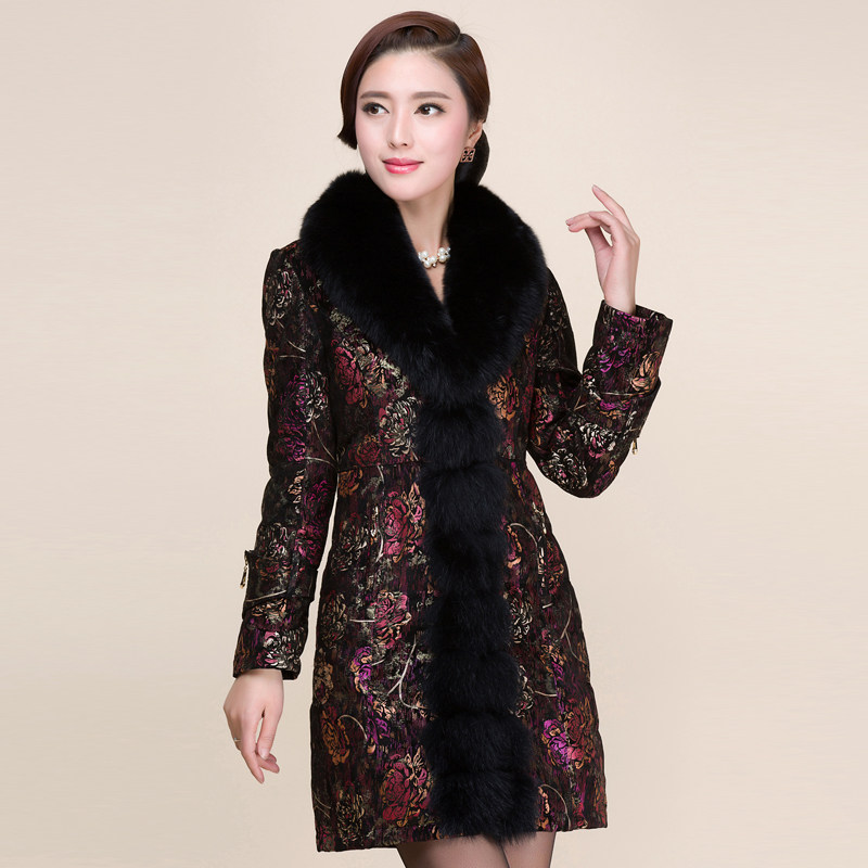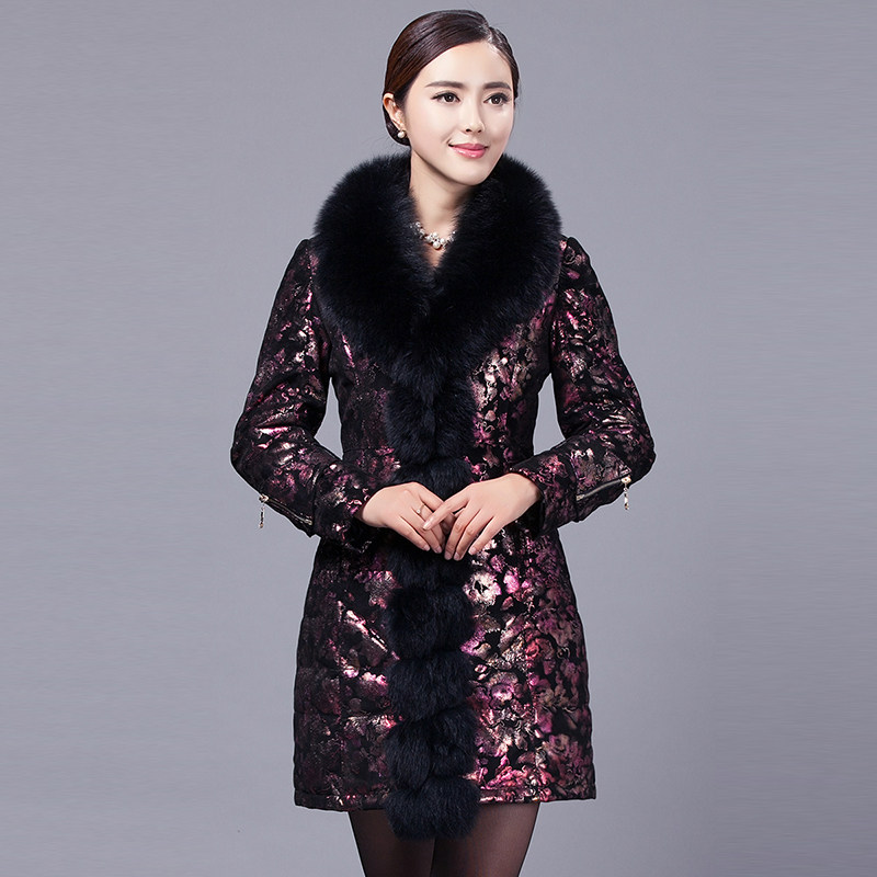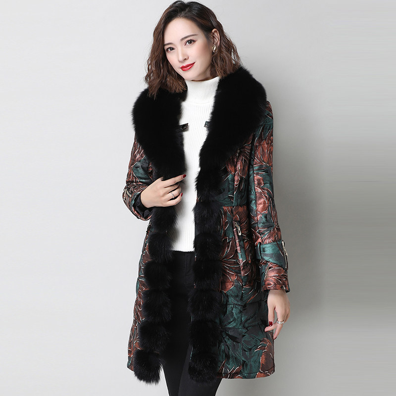Пуховик, куртка для матери, для среднего возраста, из натуральной кожи