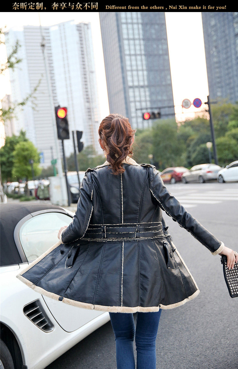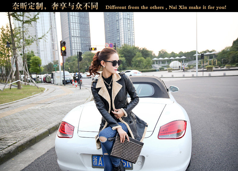 奈昕 Индивидуальная 99724 Тенденция темперамента меховой одежды корейская версия осени и зимы в середине длины сплошной кожа