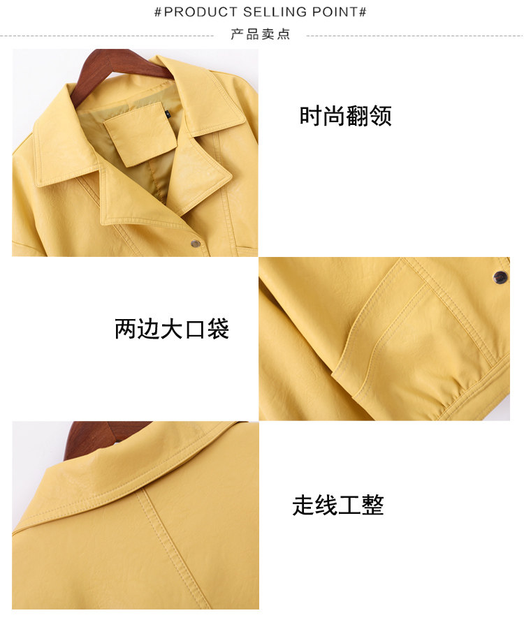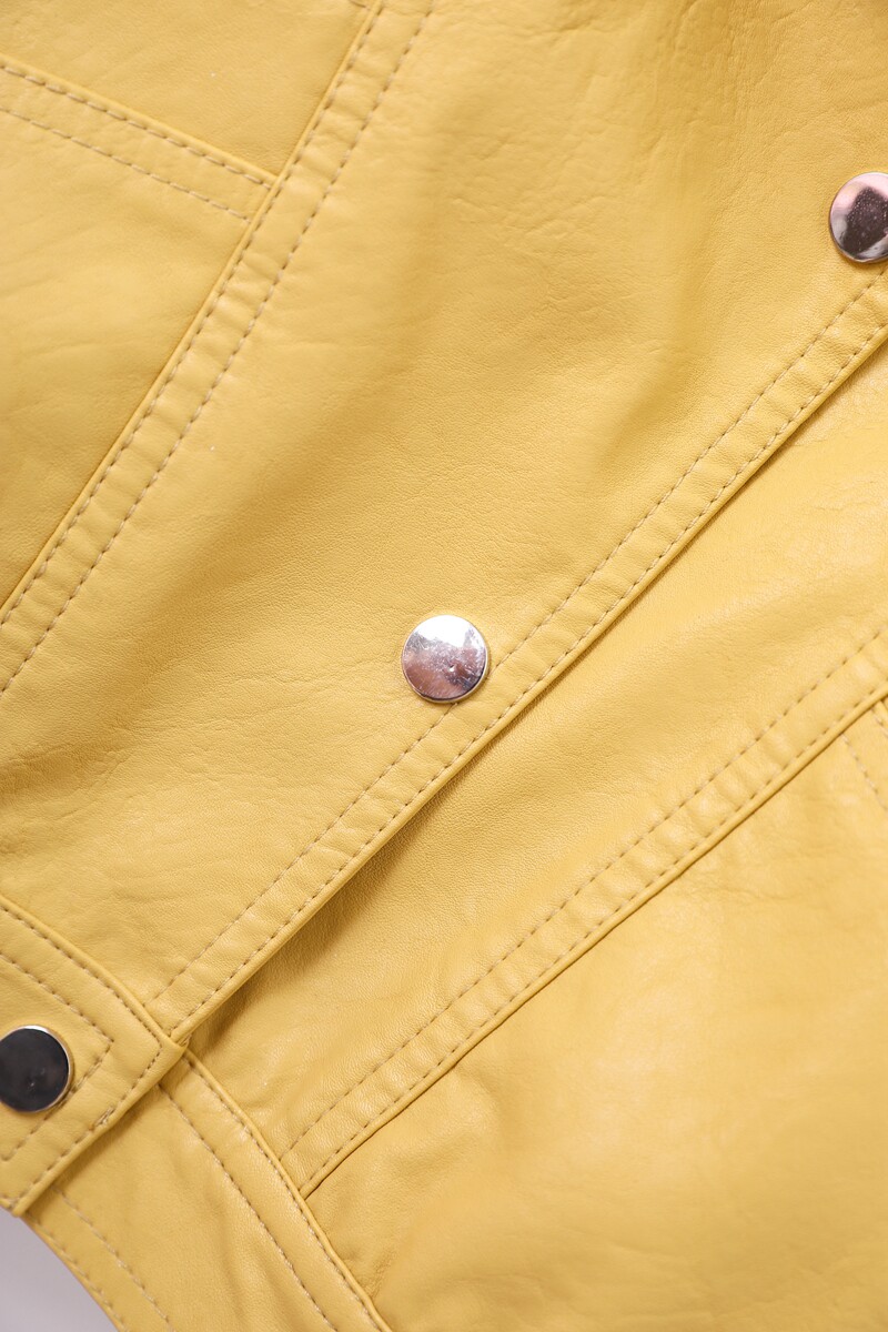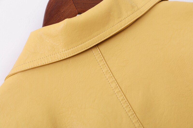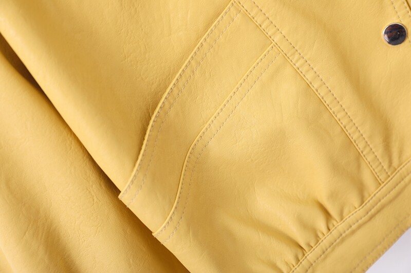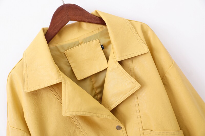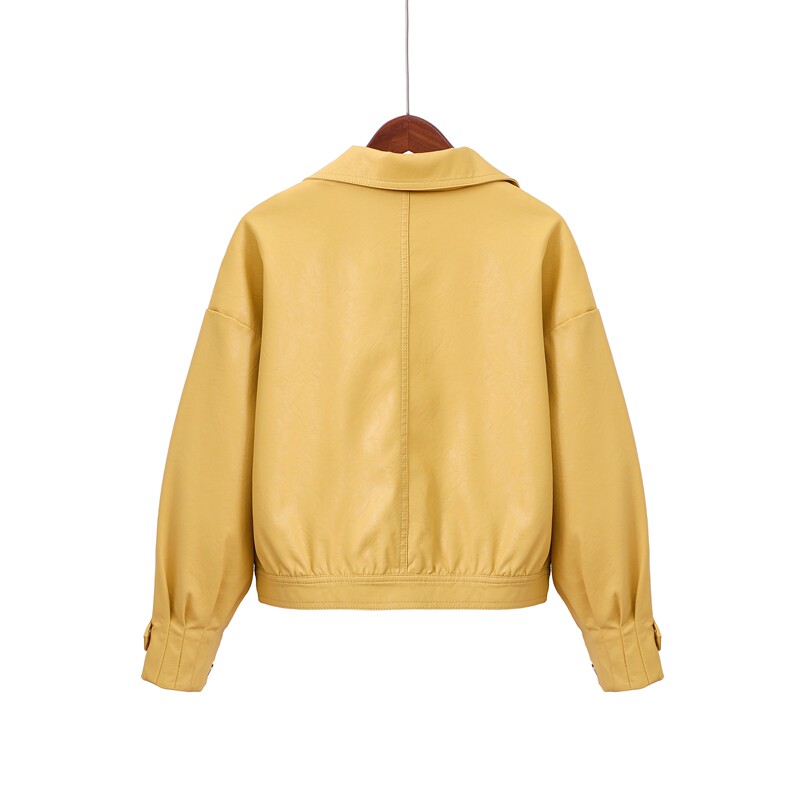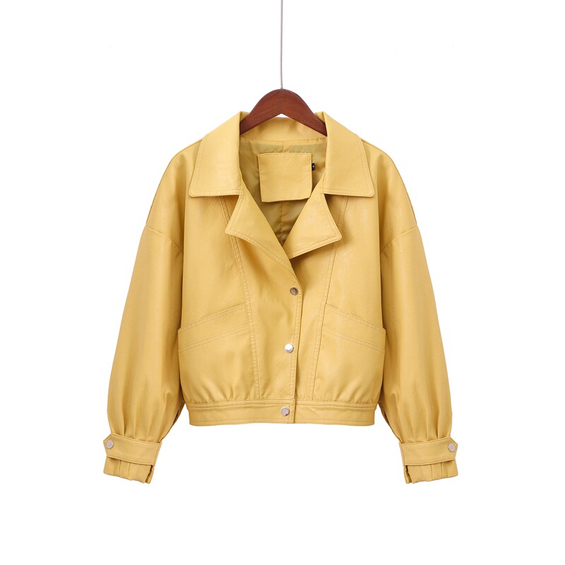 Осенняя короткая желтая полиуретановая куртка, коллекция 2023, оверсайз, в корейском стиле