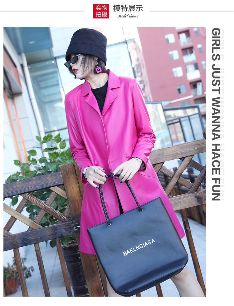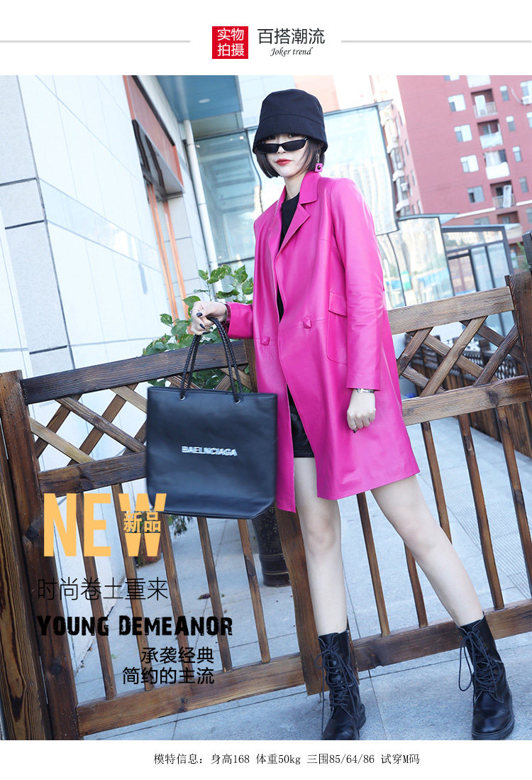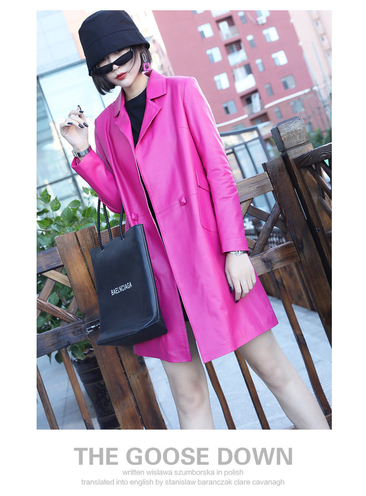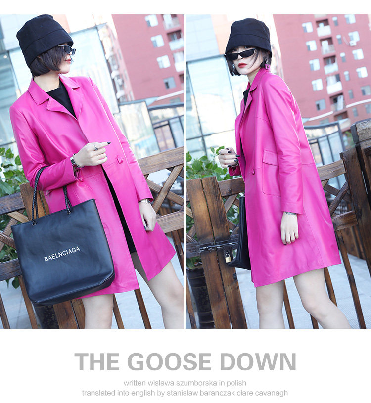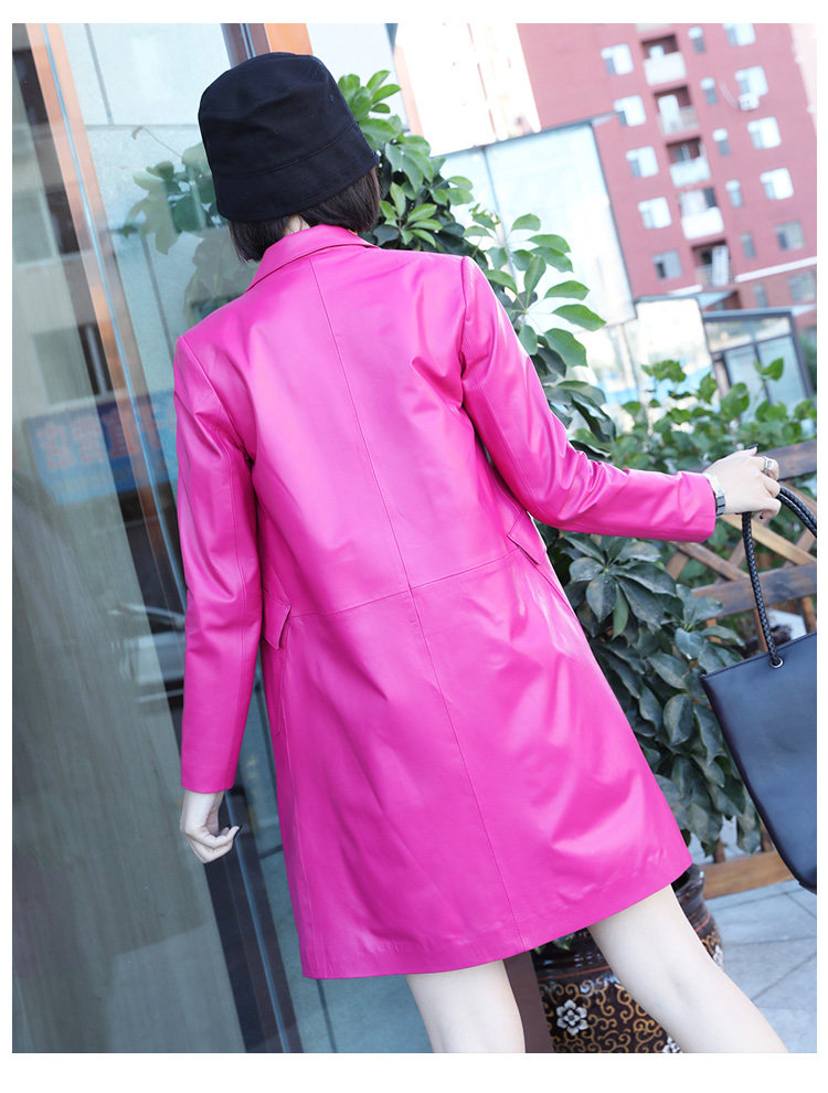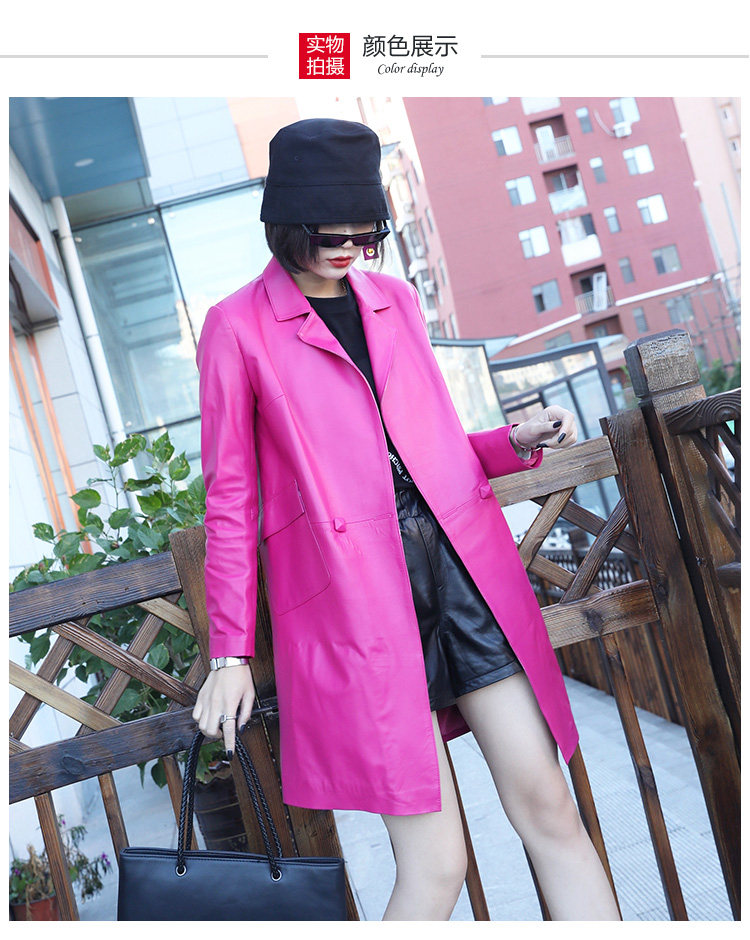Демисезонная длинная приталенная куртка, плащ, европейский стиль, из натуральной кожи, средней длины