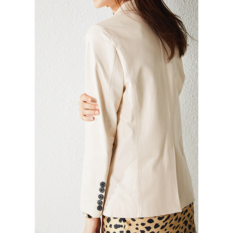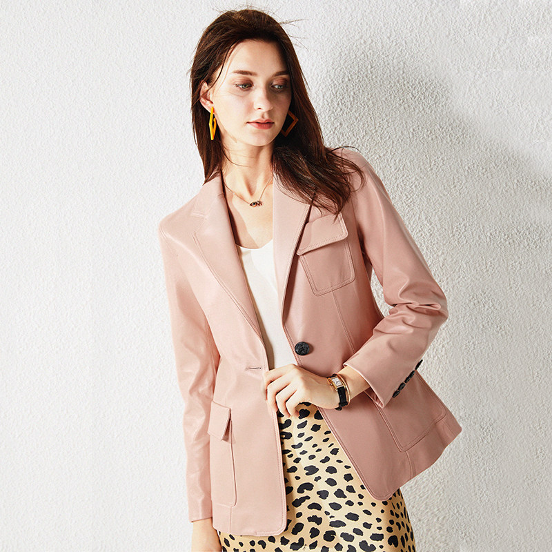 Ретро короткий приталенный костюм, куртка, из натуральной кожи