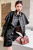 Демисезонное короткое модное термобелье, куртка, из натуральной кожи, в западном стиле, 2 предмета