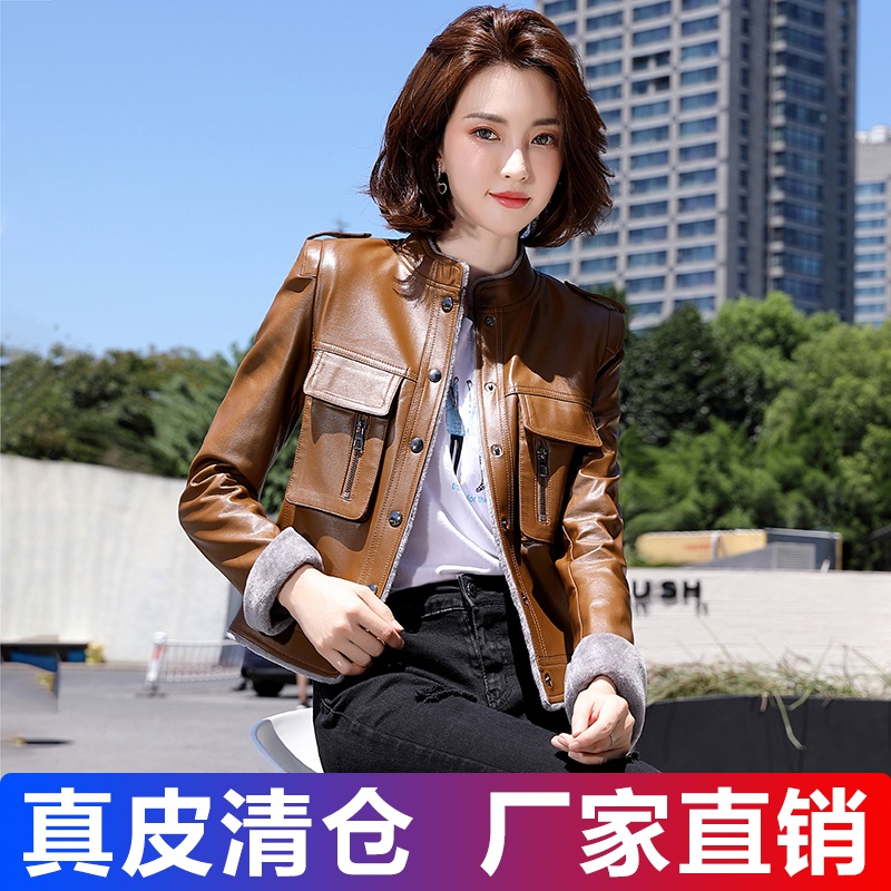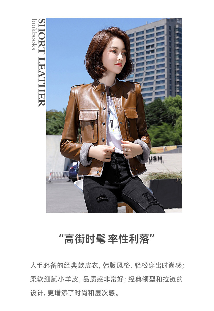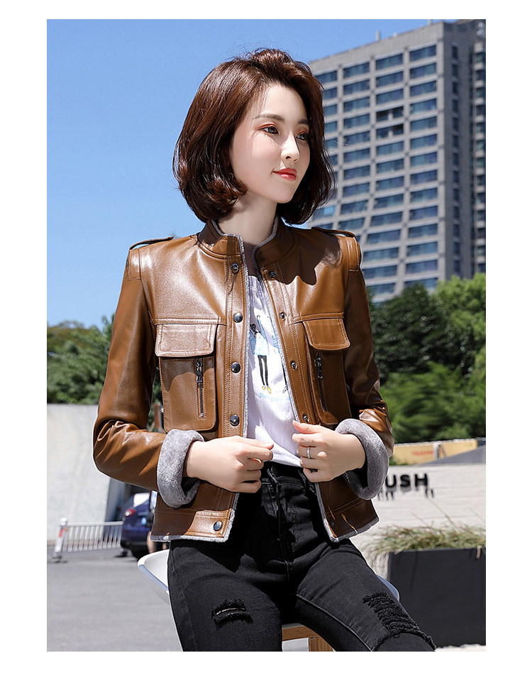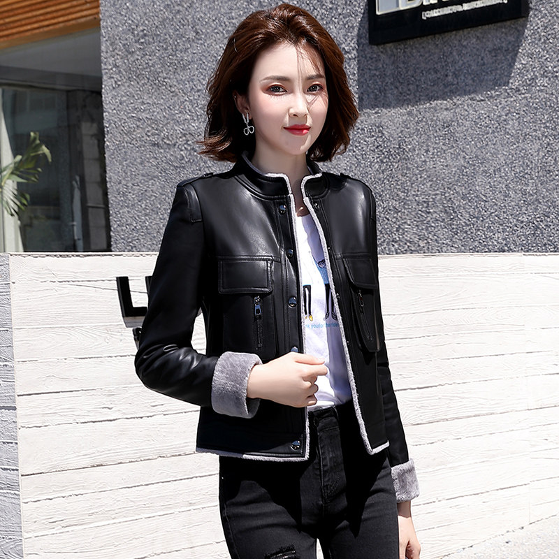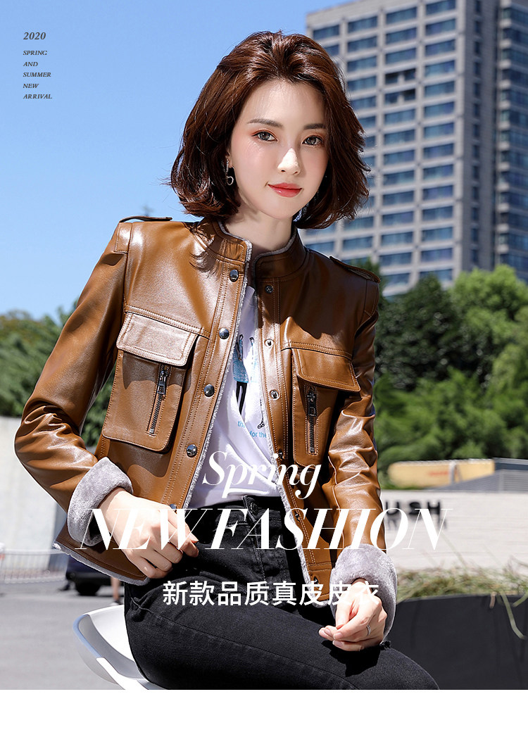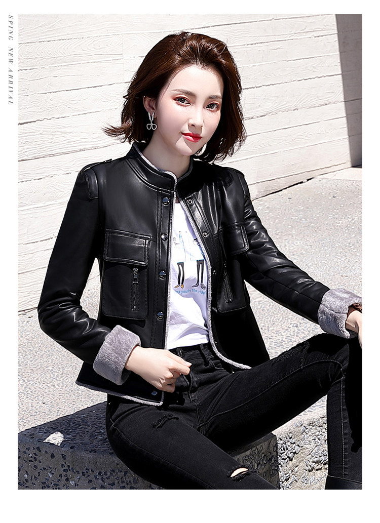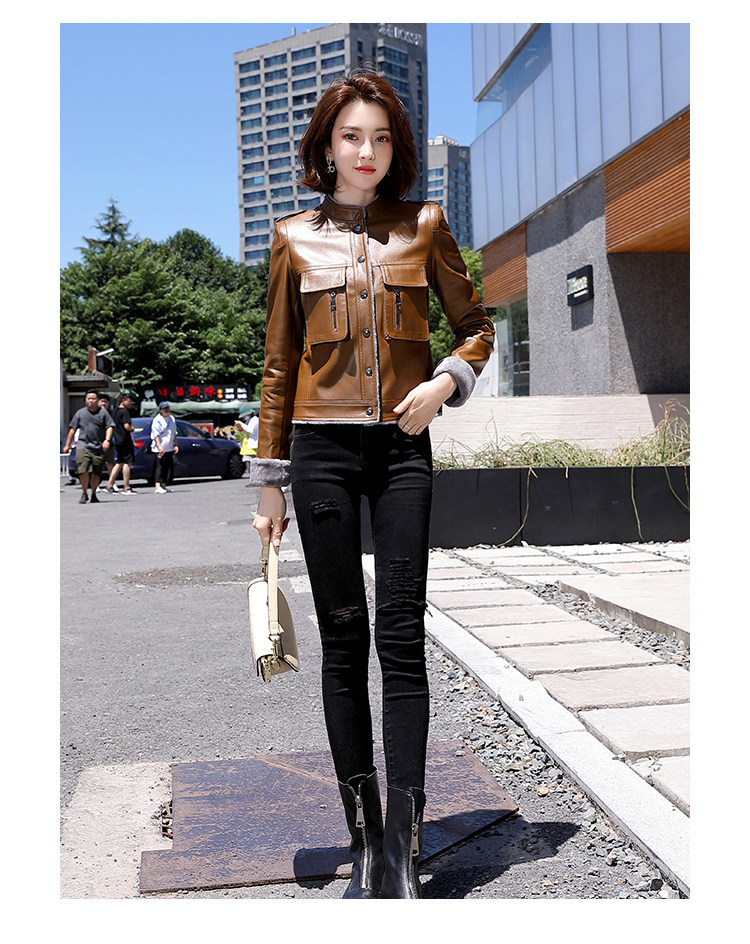 Короткая осенняя демисезонная утепленная куртка, из натуральной кожи, в корейском стиле
