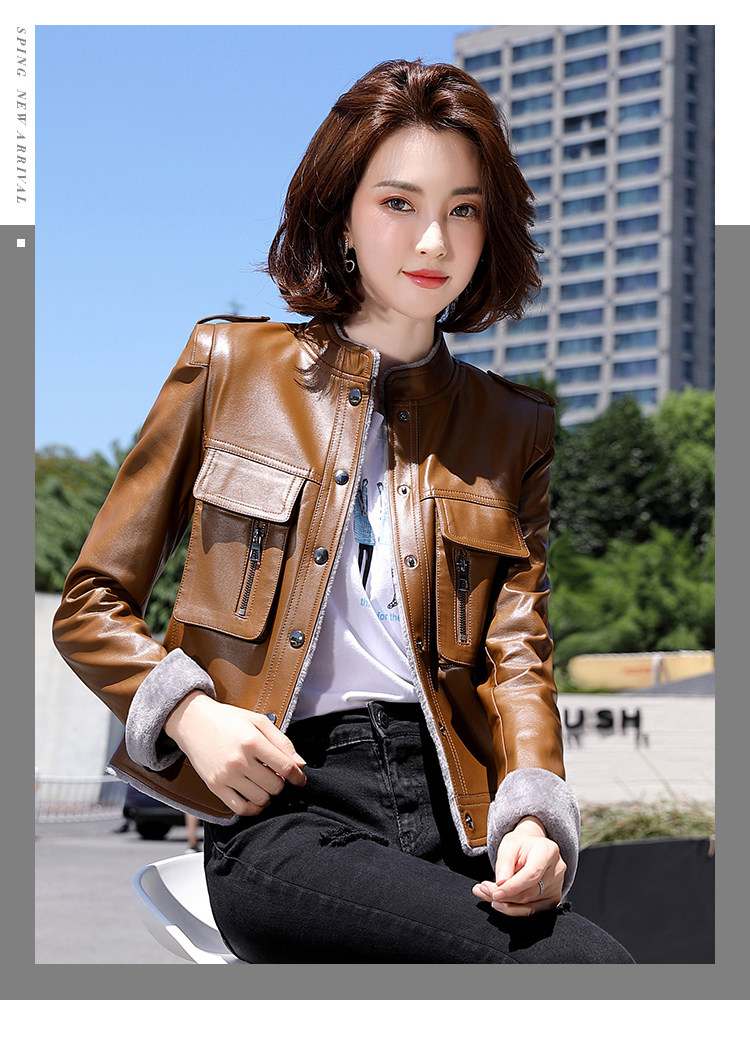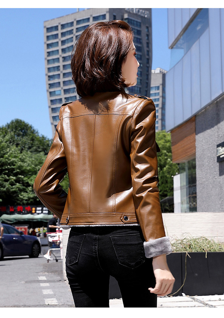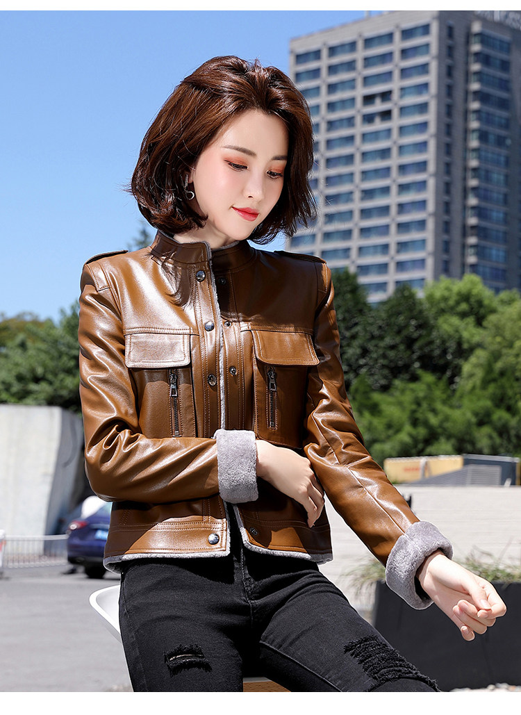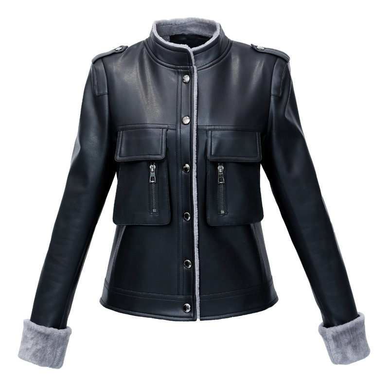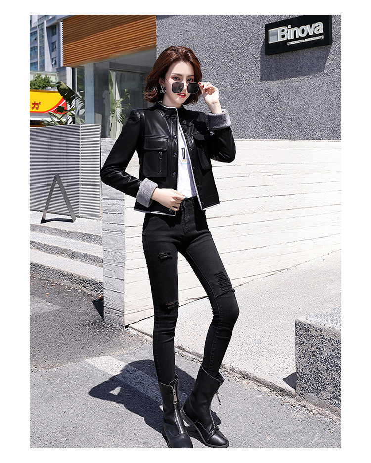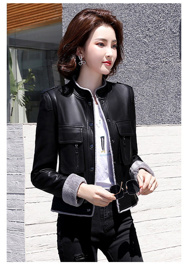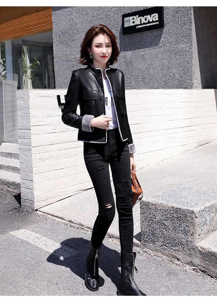 Короткая осенняя демисезонная утепленная куртка, из натуральной кожи, в корейском стиле
