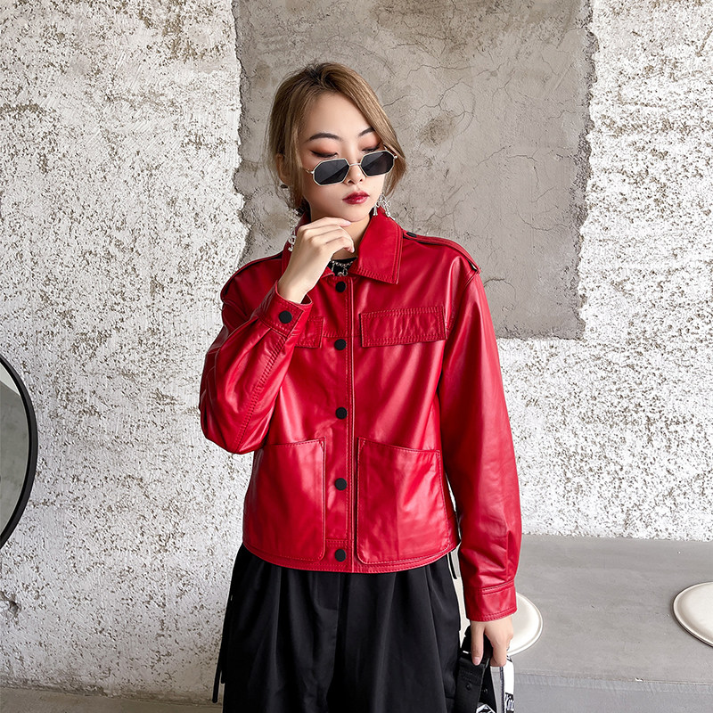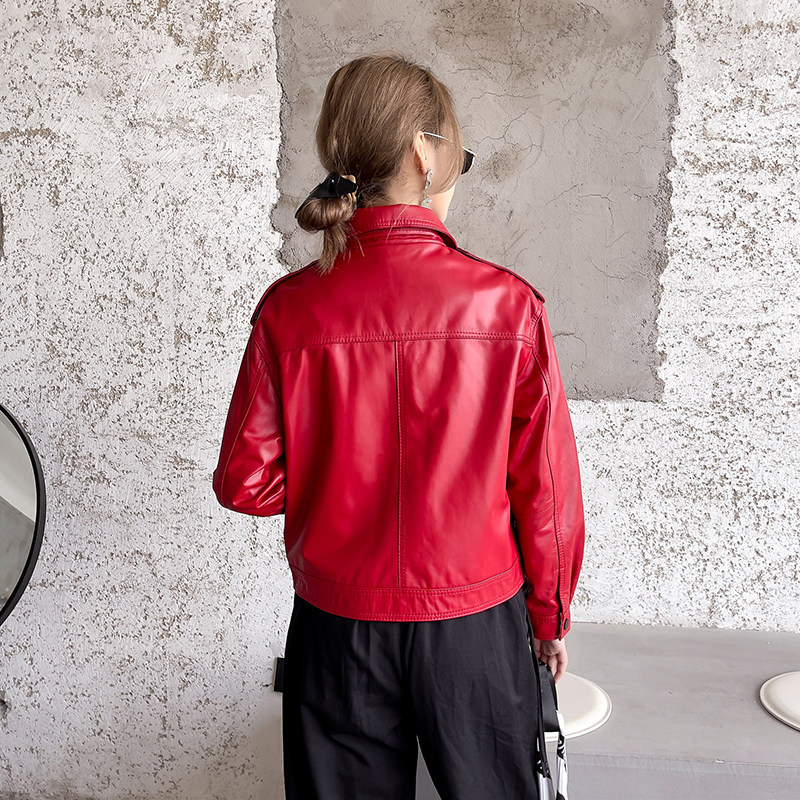 Короткая куртка для отдыха, из натуральной кожи, воротник поло, коллекция 2023