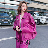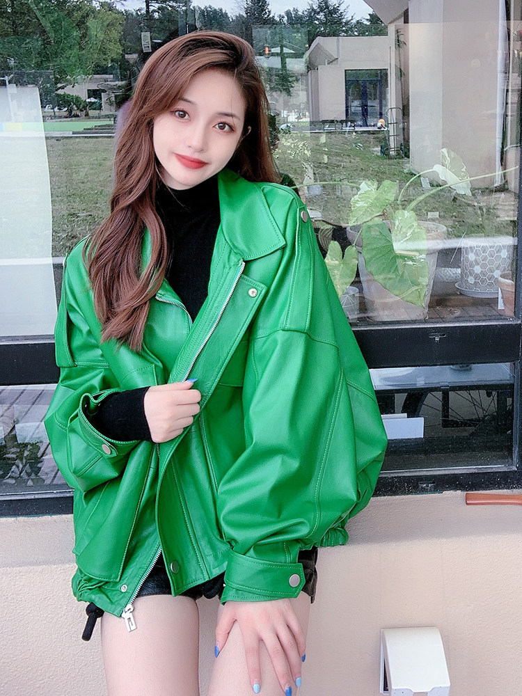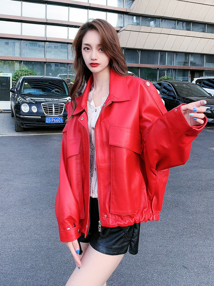 Демисезонная короткая куртка, свободный крой, из натуральной кожи, на шнурках, большой размер