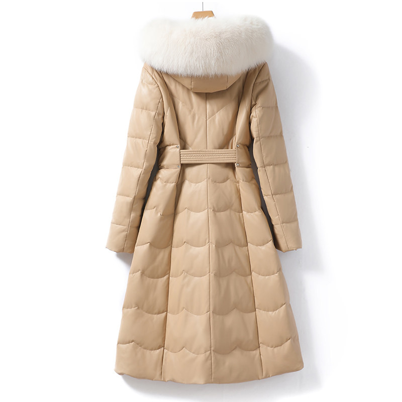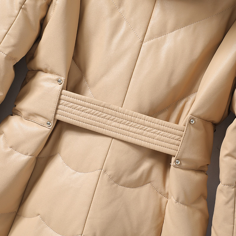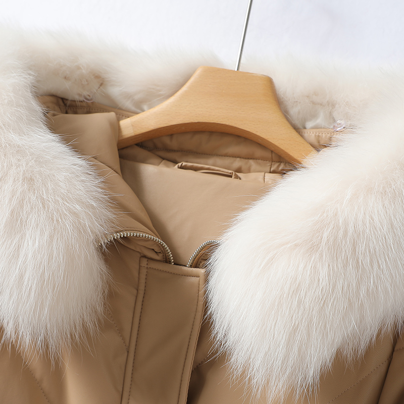 Демисезонная бархатная куртка с капюшоном с пухом, средней длины, утиный пух, из натуральной кожи