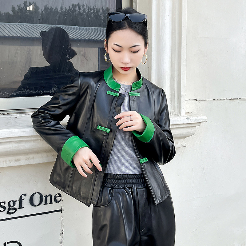 Осенняя ретро короткая куртка, китайский стиль, из натуральной кожи