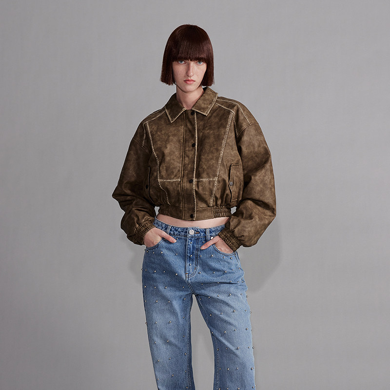 Дирижабль, куртка, коричневый ретро пуховик, свободный крой