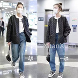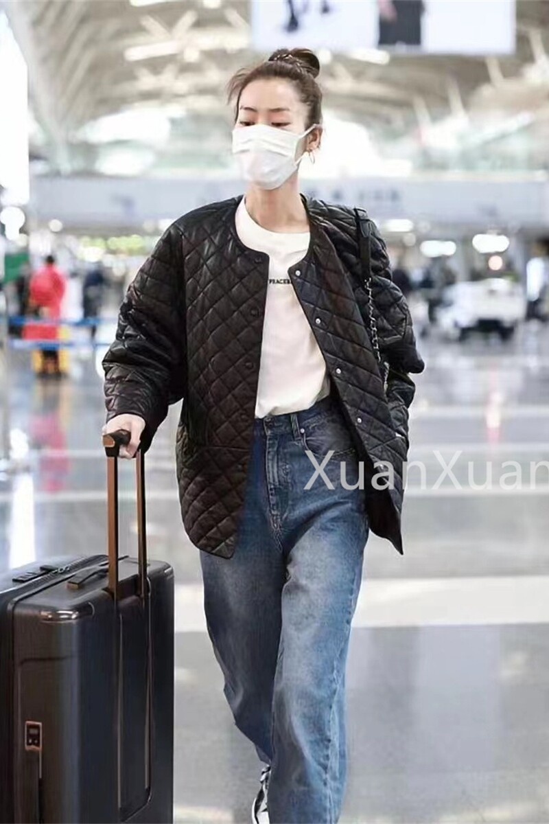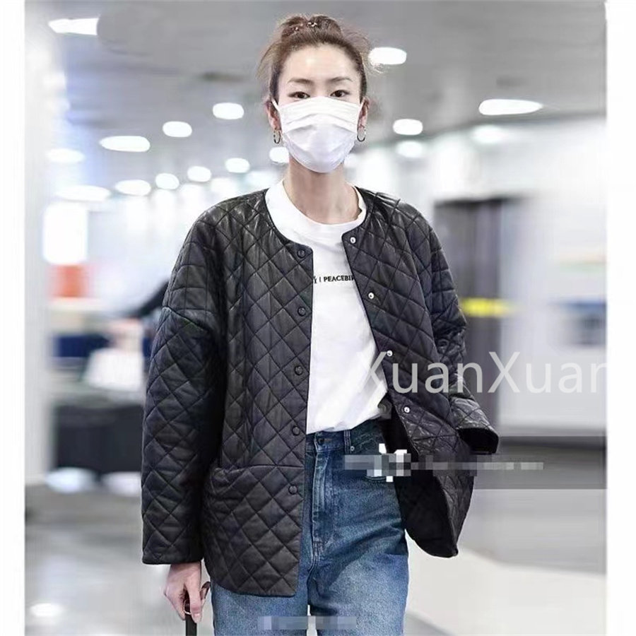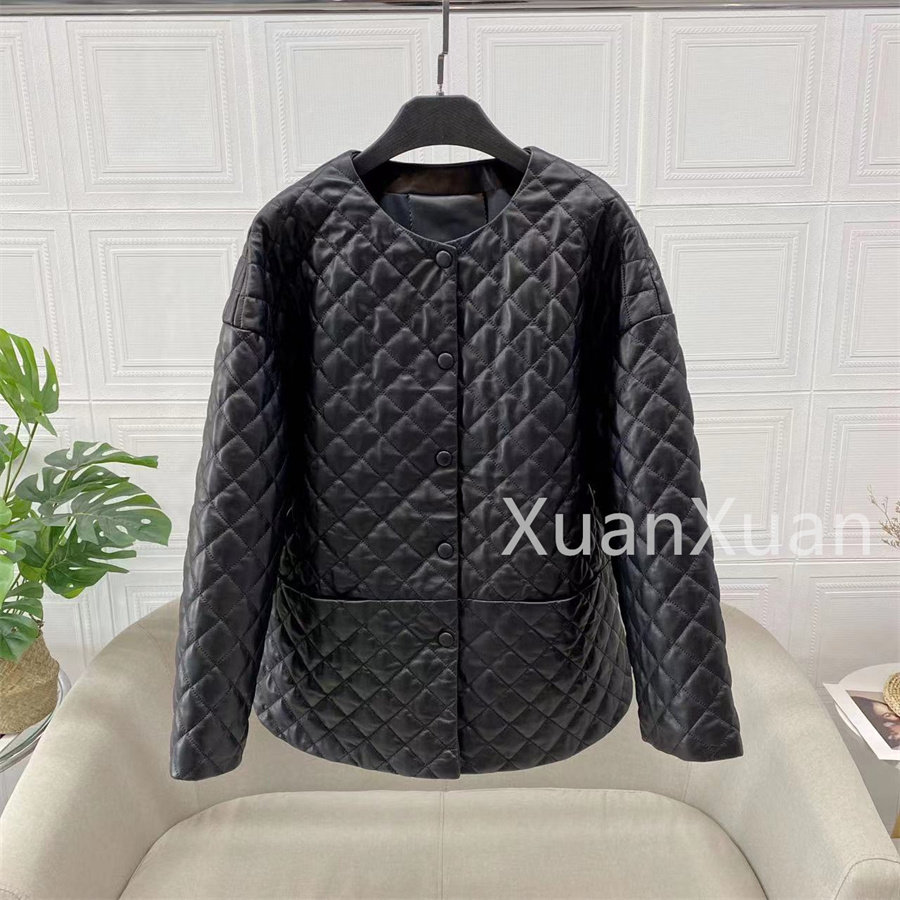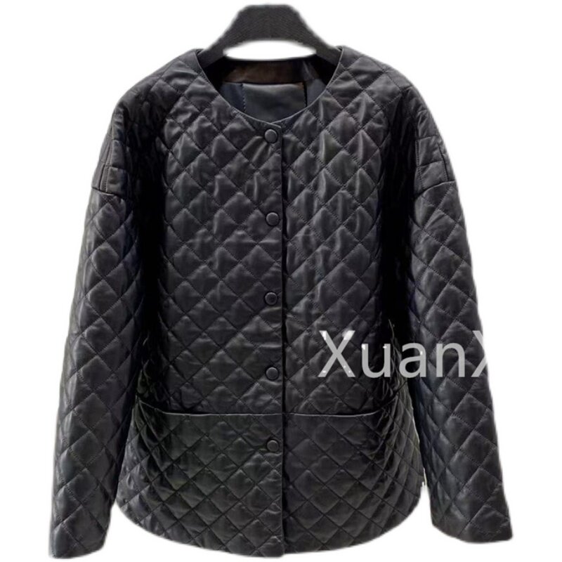 Модная куртка с круглым воротником с ромбовидным узором, из натуральной кожи, оверсайз, свободный крой