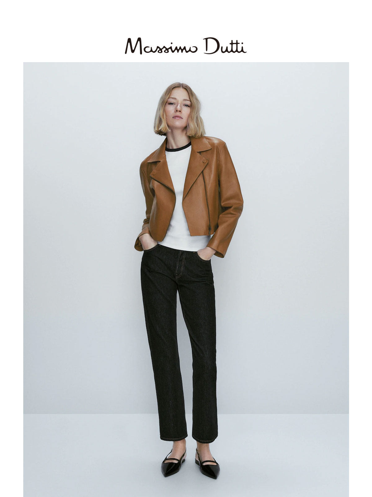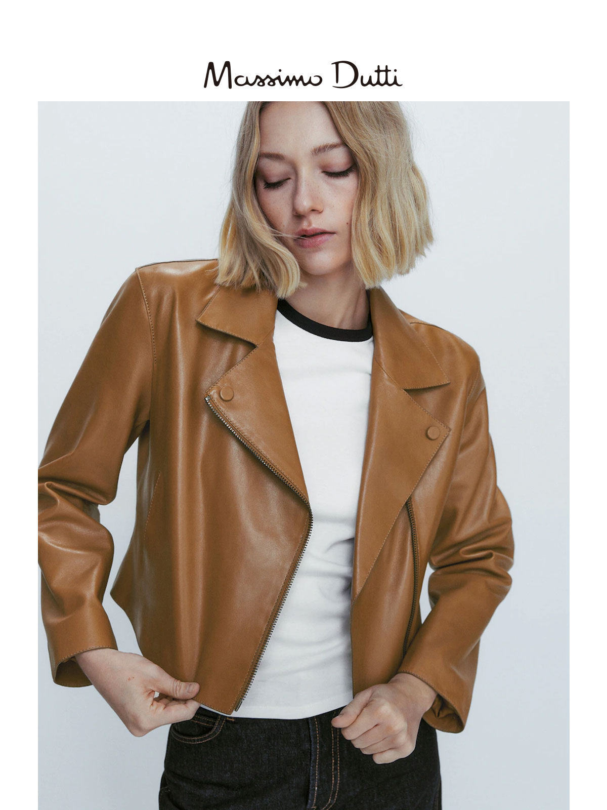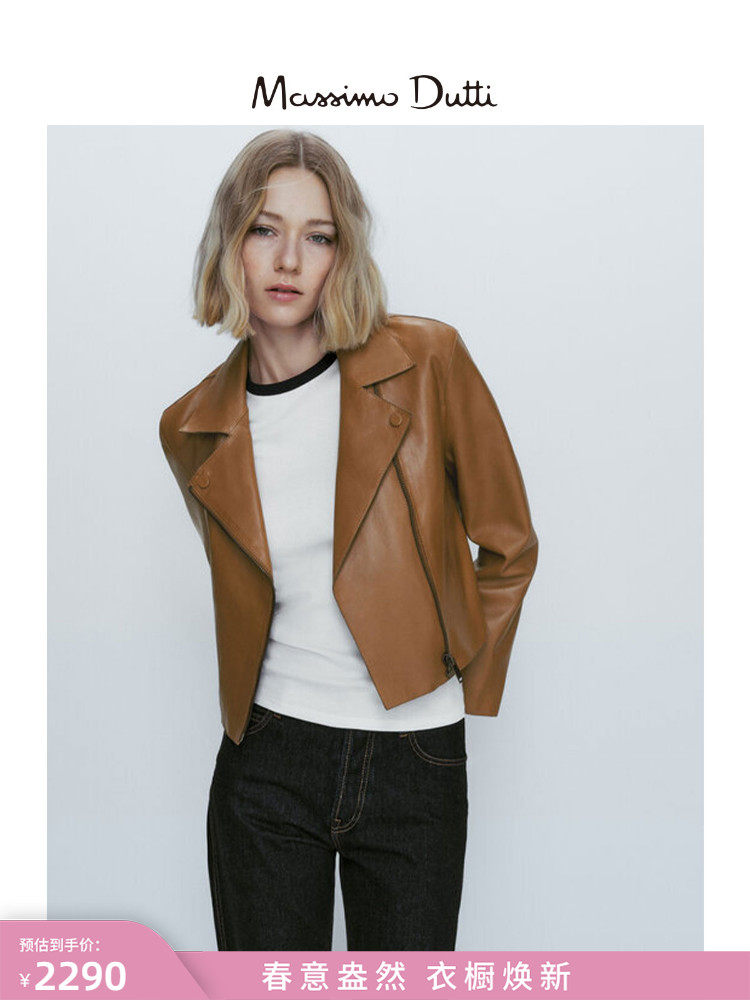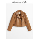 Обновление скидок Massimodtti Женская одежда 2023 Осень и зима Новая коричневая ретро -ретро -напа