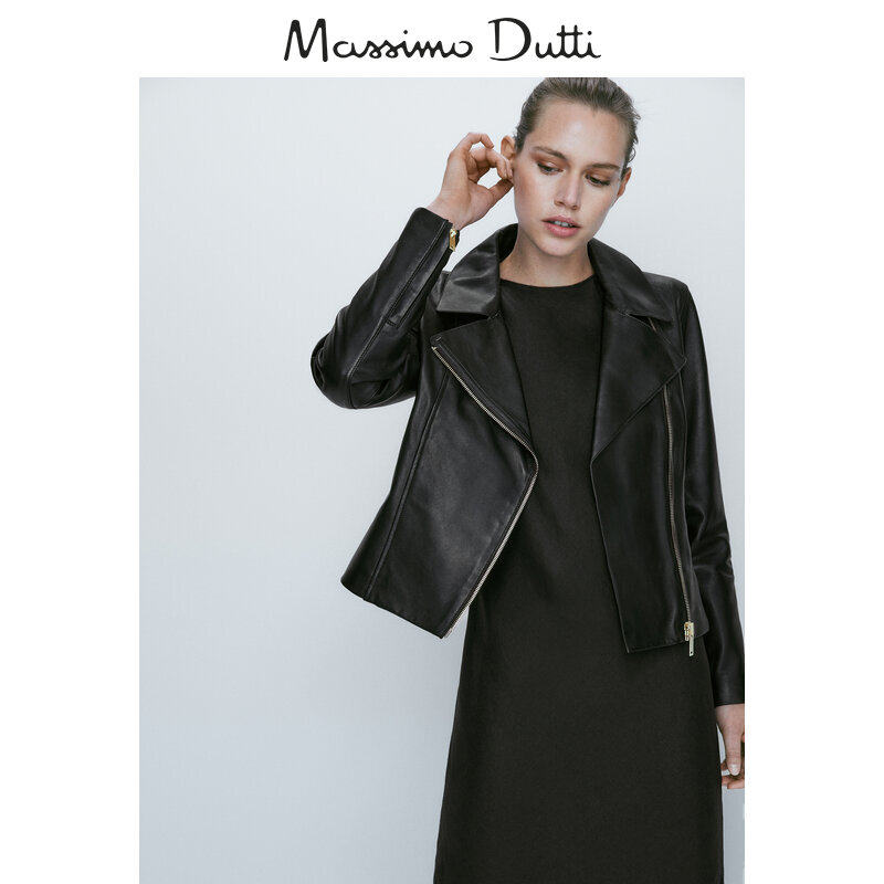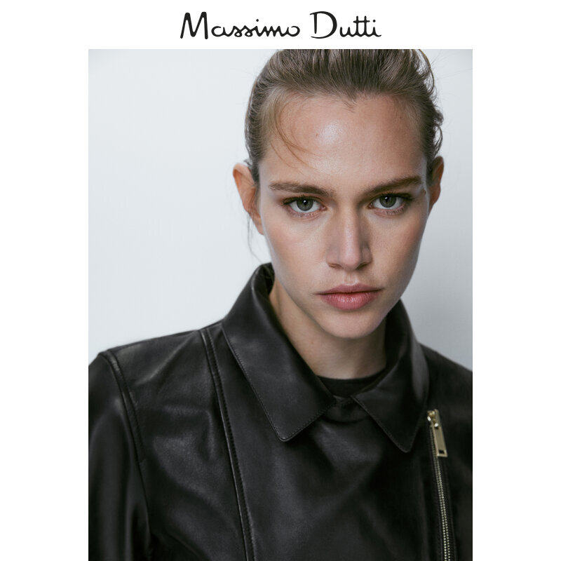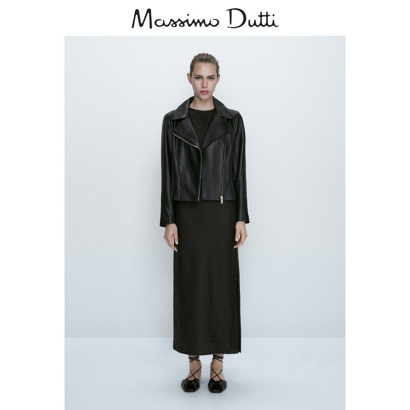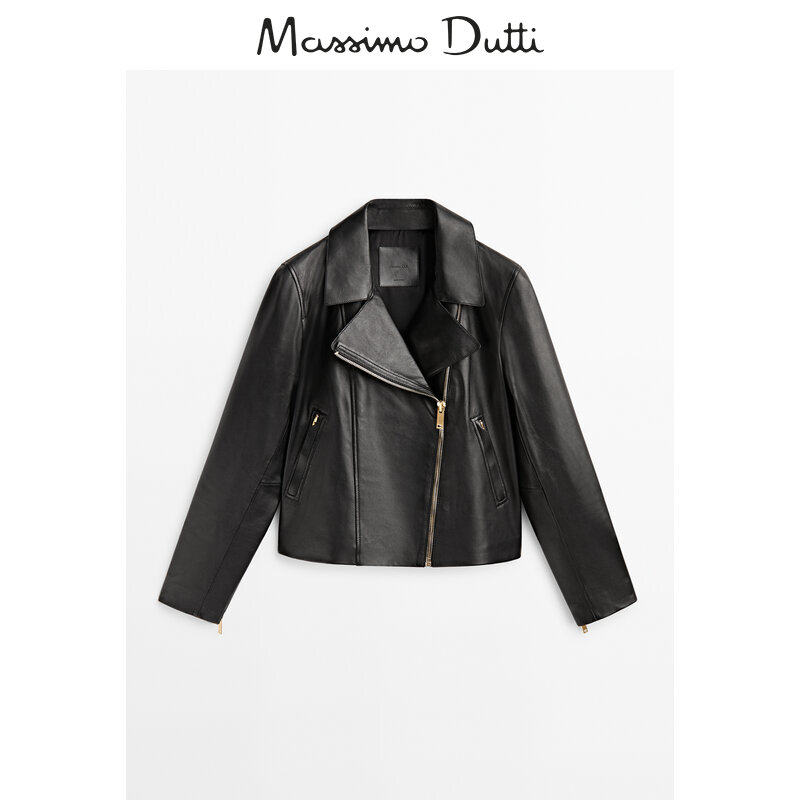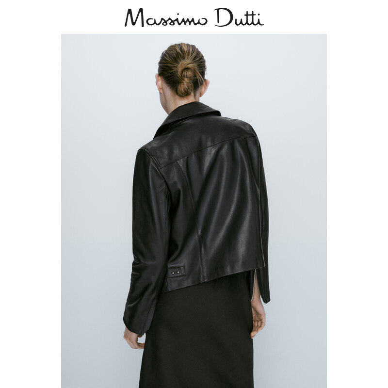 Обновление дисконтирования Massimodtti Женская одежда 2023 Осень и зима Новая черная простая простая локомотивная кожаная куртка с кожаным ветром 04721641800