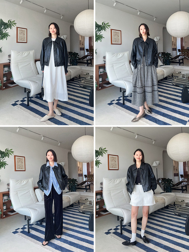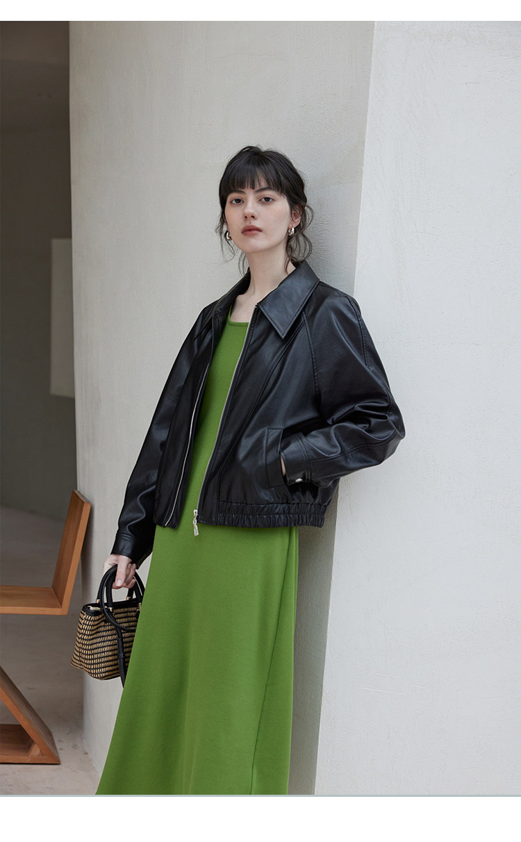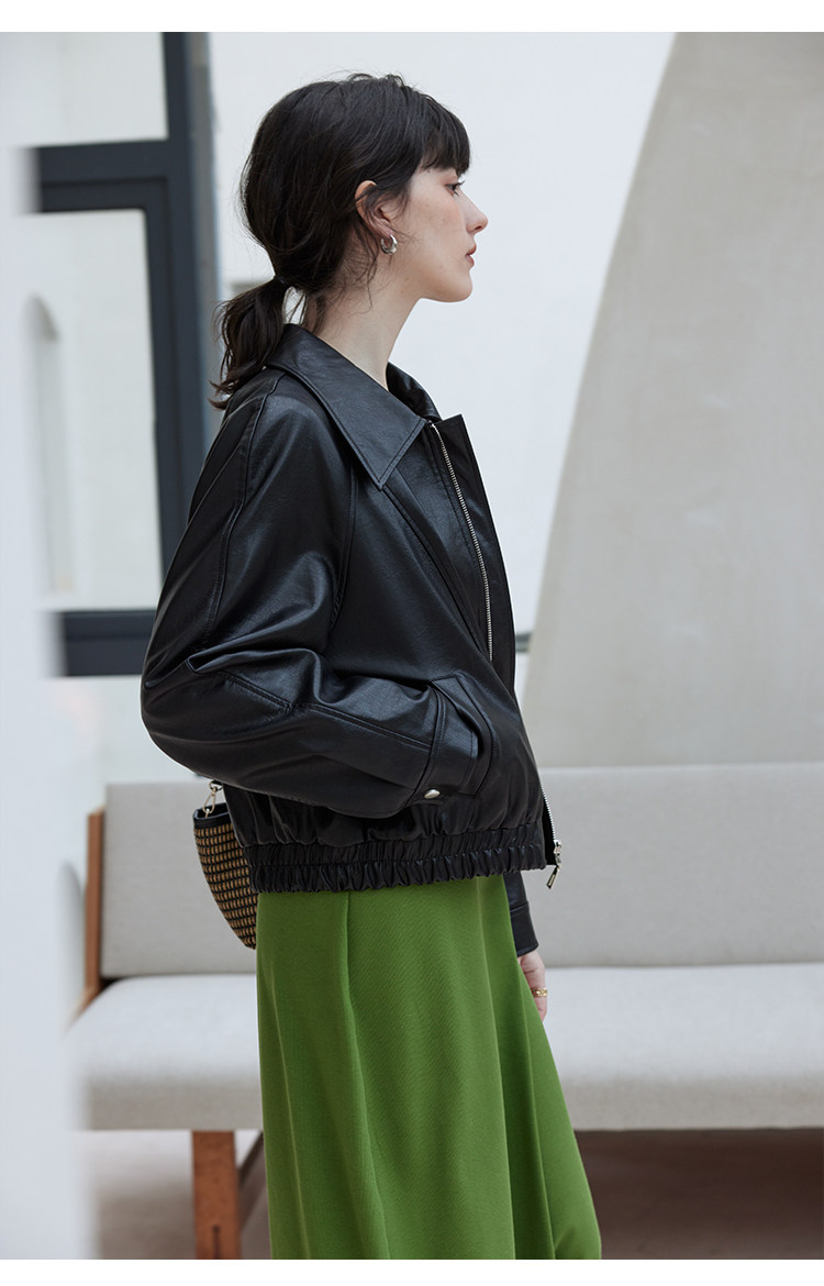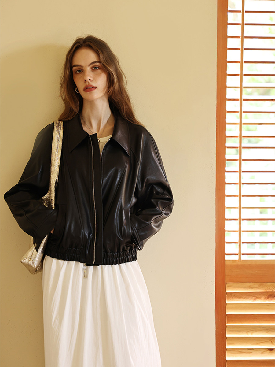 Черная осенняя полиуретановая куртка для отдыха, свободный крой, облегающий крой, стиль