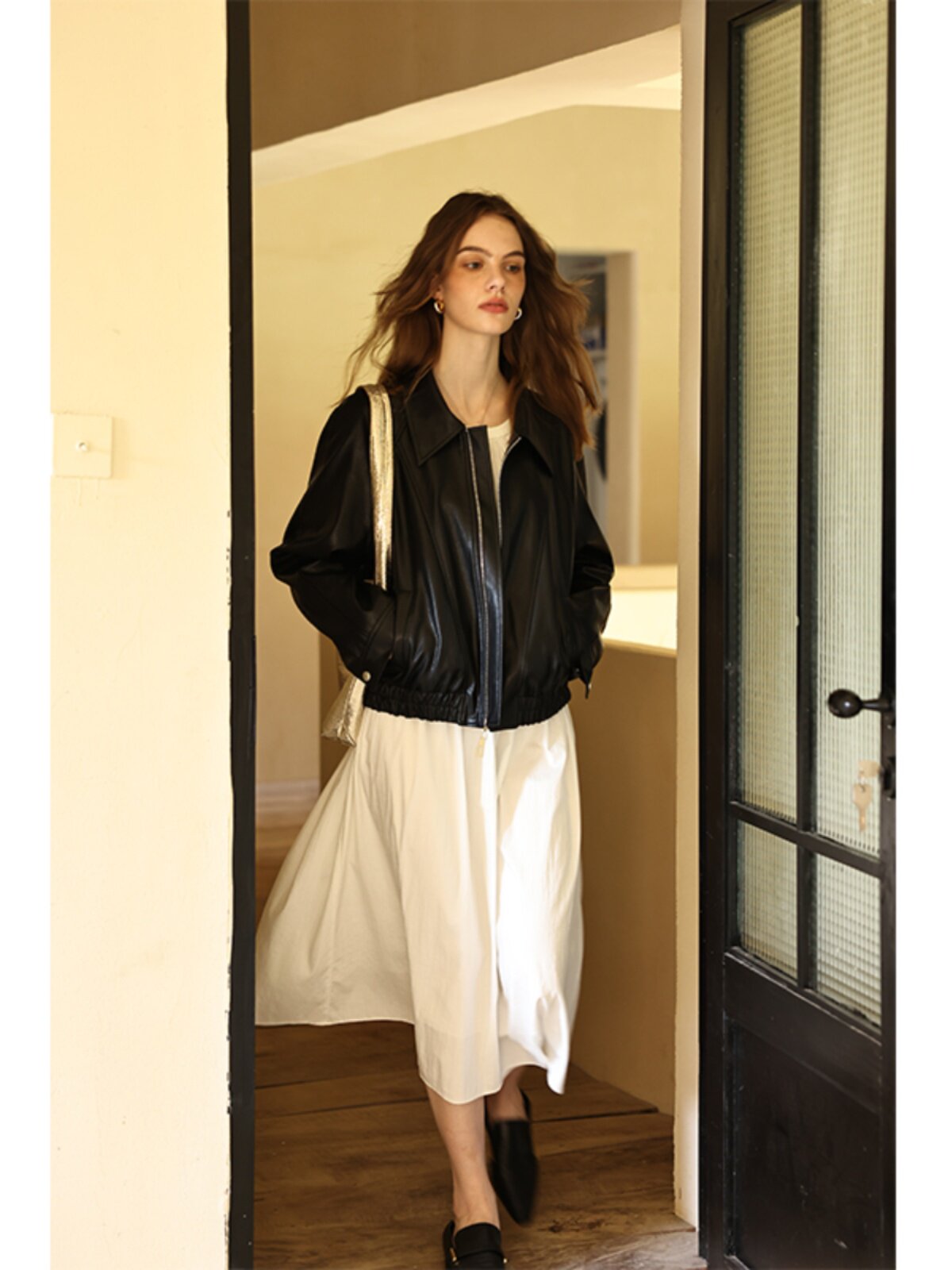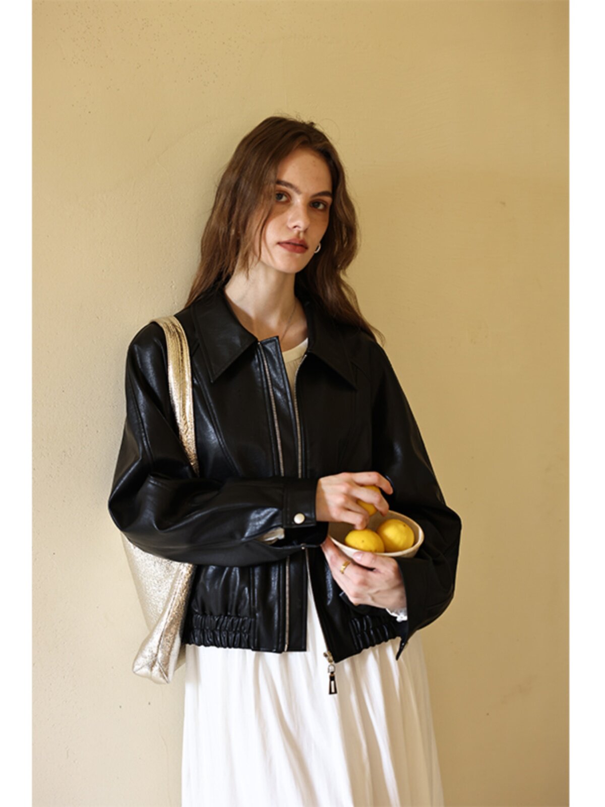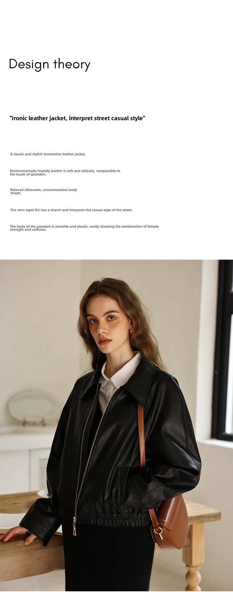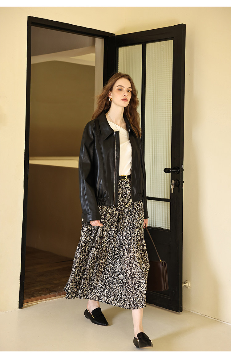 Черная осенняя полиуретановая куртка для отдыха, свободный крой, облегающий крой, стиль