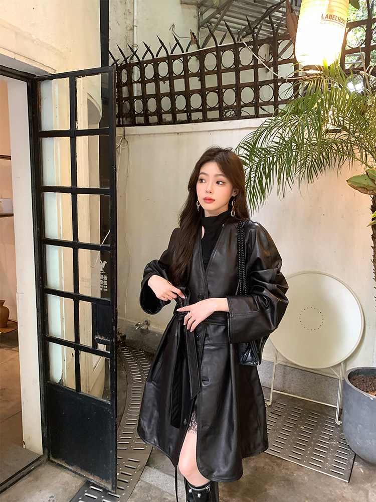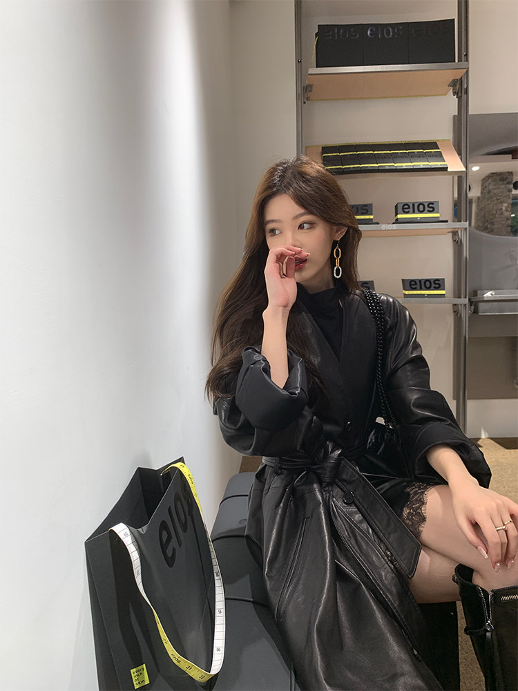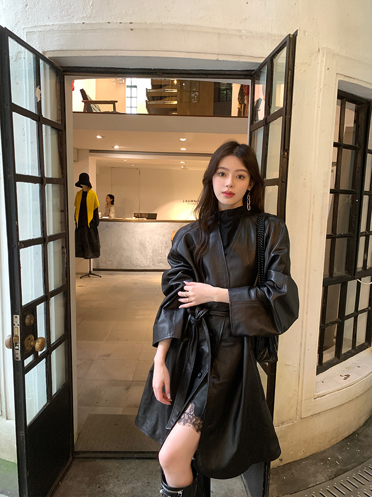 Импортный плащ в форме цветка, черная куртка, из натуральной кожи