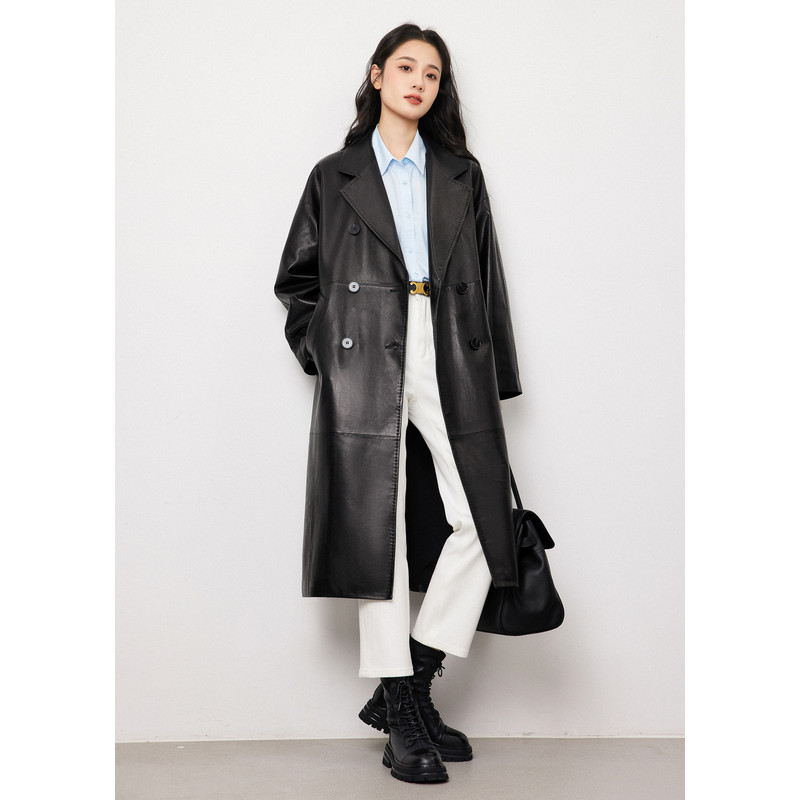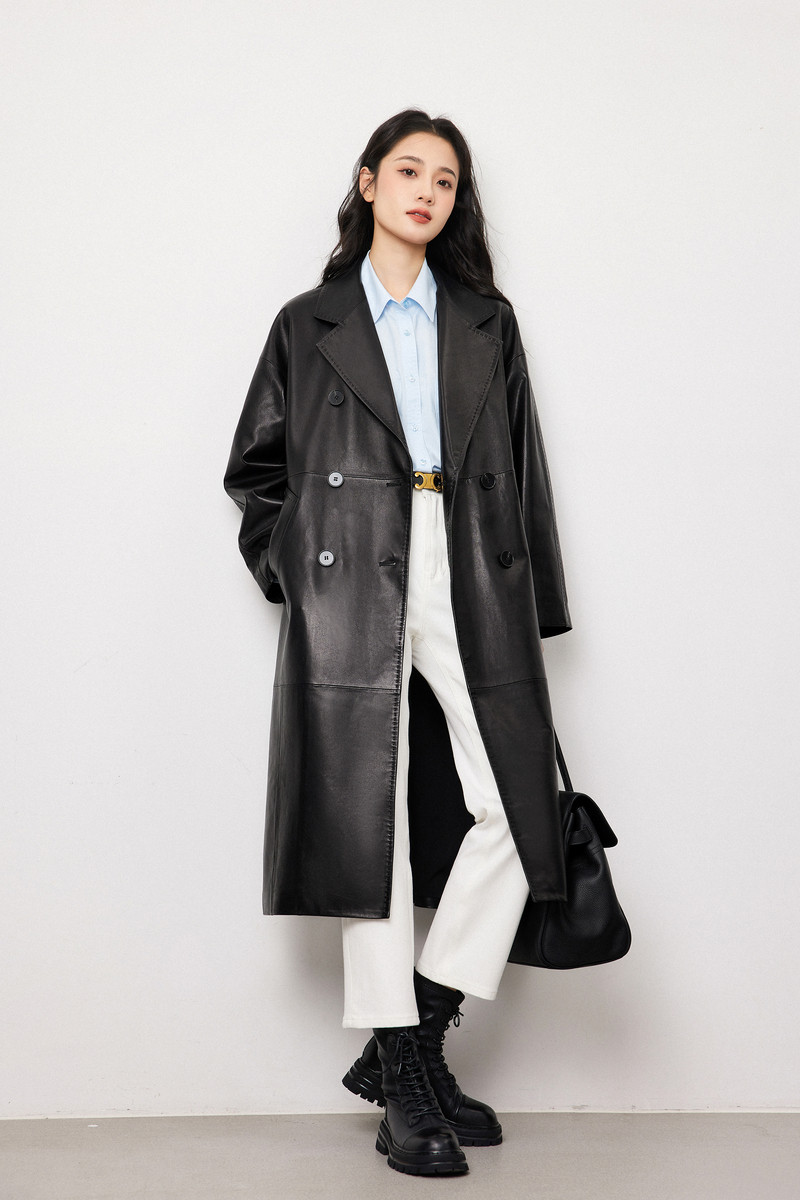 Миджия хорошего качества среднего, современного, модного, нежного овчины, осень и зима, чтобы опровергнуть длинное кожаное пальто воротника