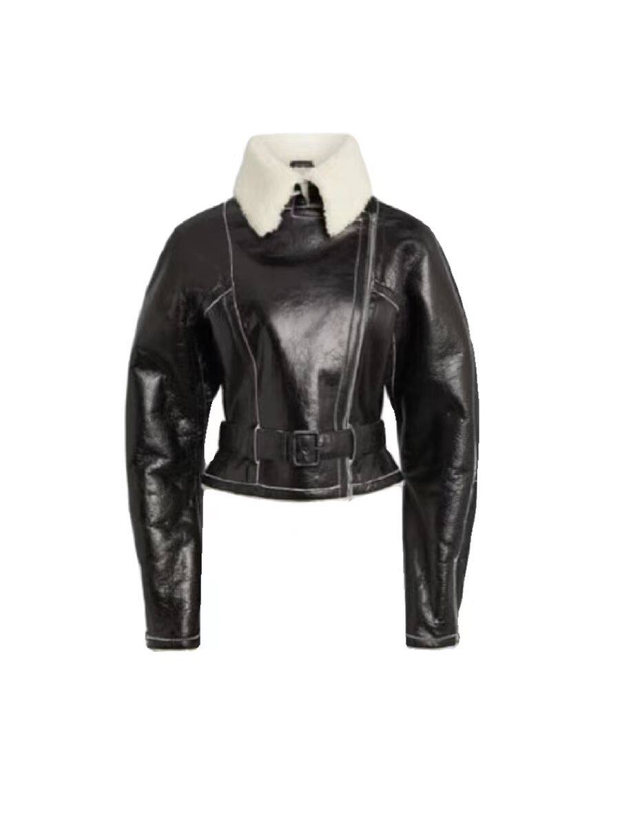 Цельная меховая куртка Jennie's в стиле ретро с лацканами из искусственной кожи, теплая короткая кожаная куртка с длинными рукавами и шерстью ягненка для женщин