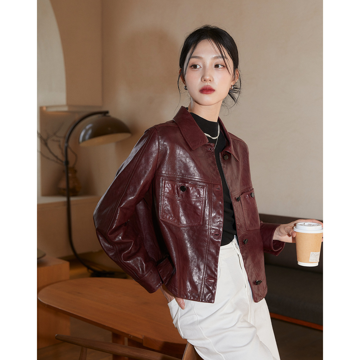 Северный Синьцзян Синьцзян Синьцзянская бумага Синьохан Павильон Сенсорная Восковая Кожа Ретро Кожа Ретро Кожа/Короткая куртка Кампания Ламскина Женщины