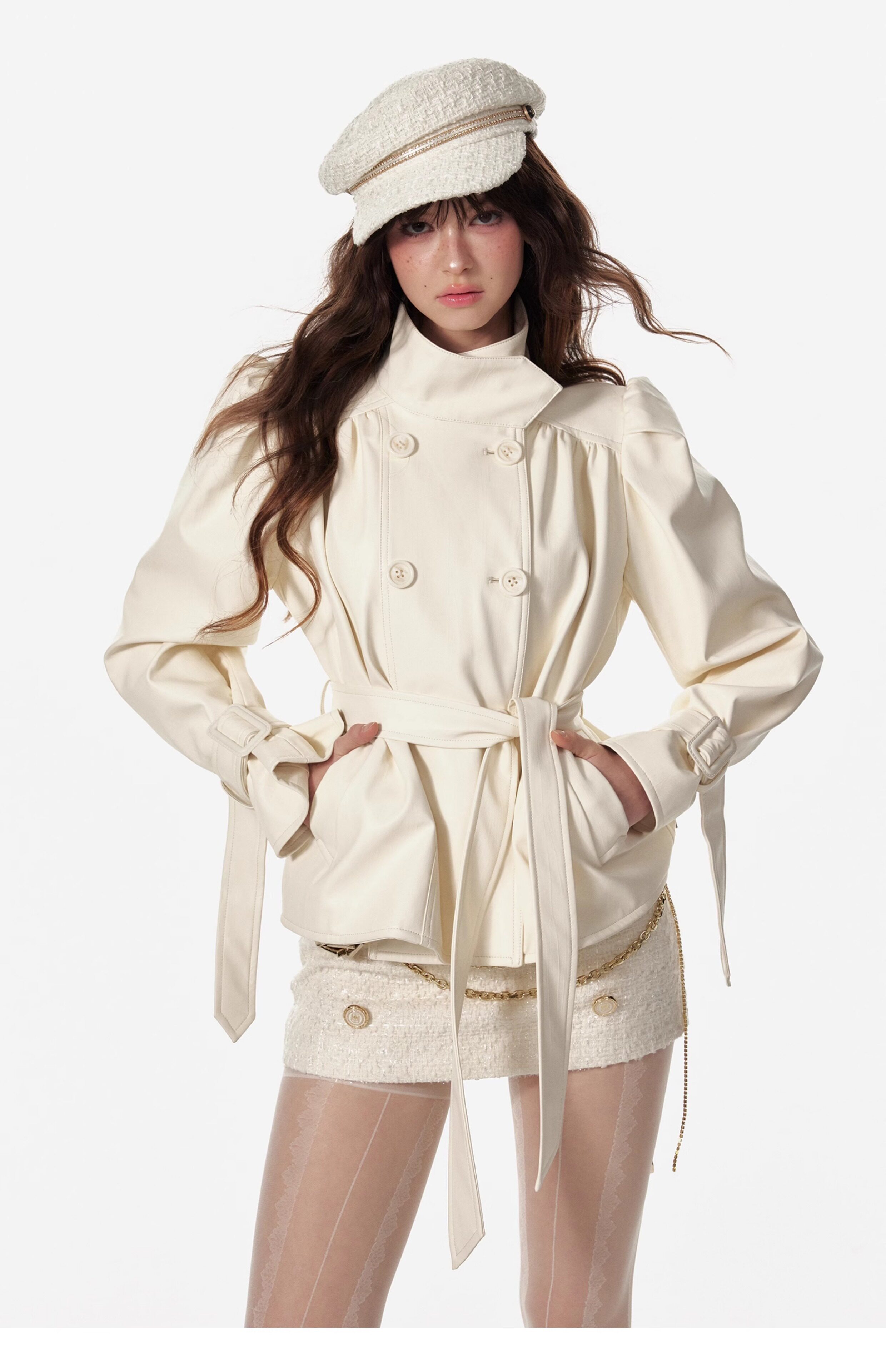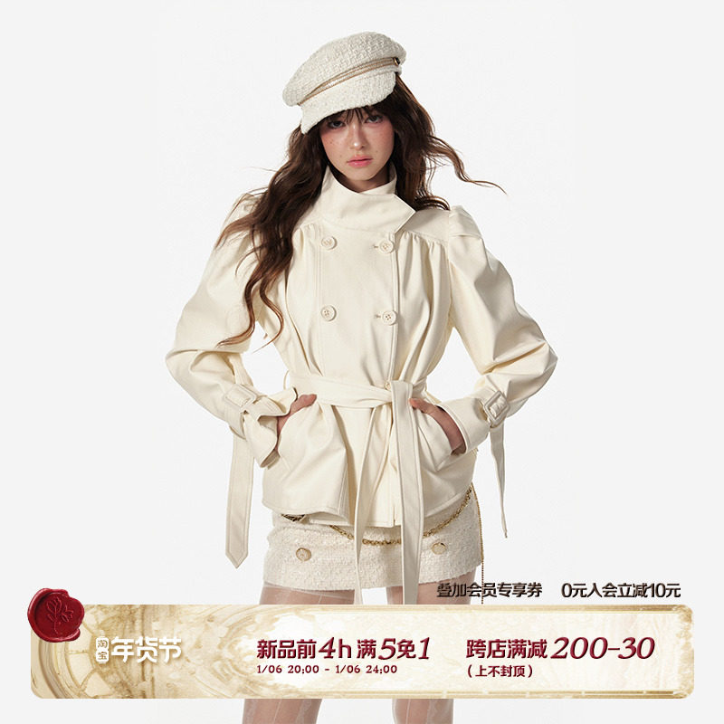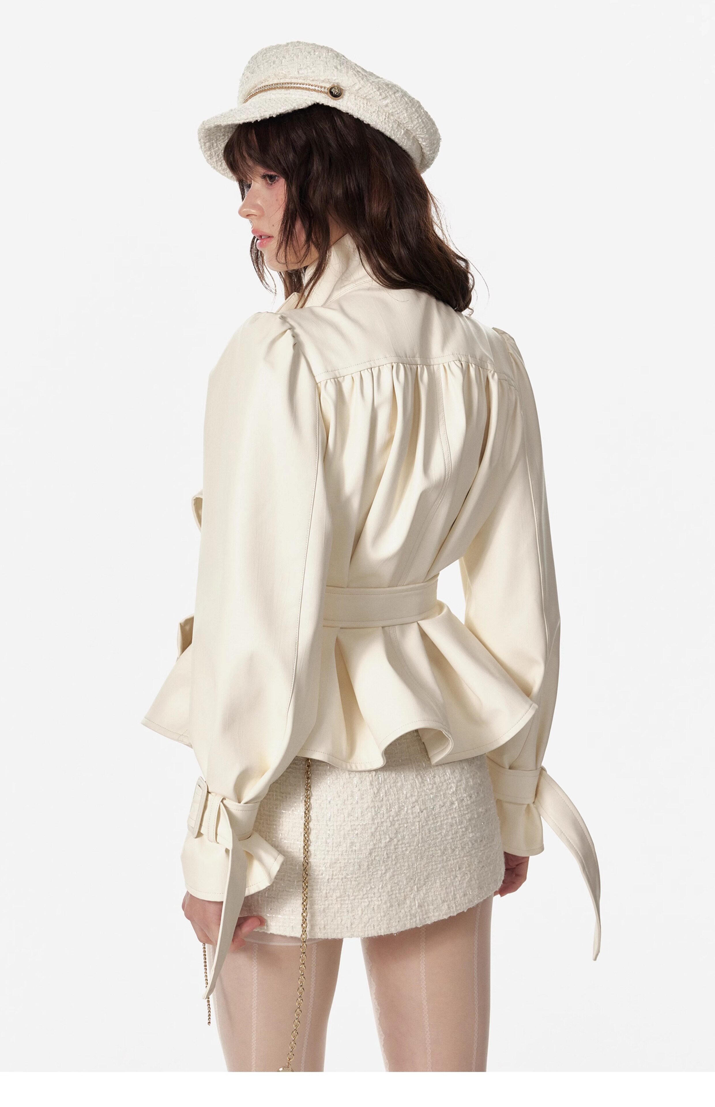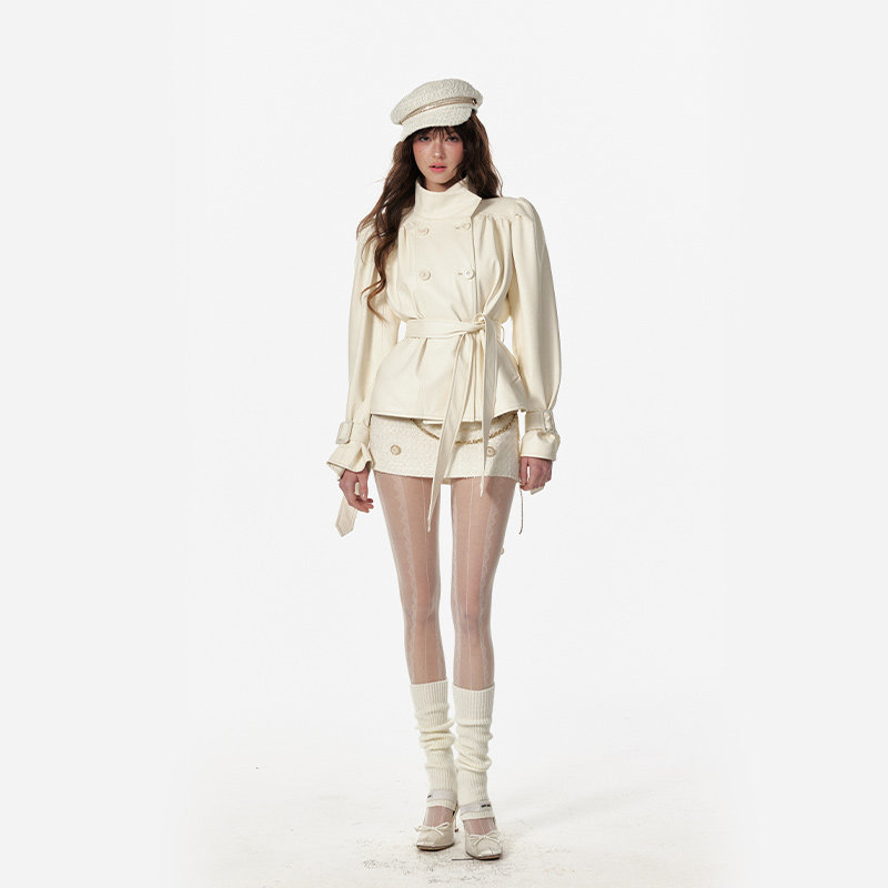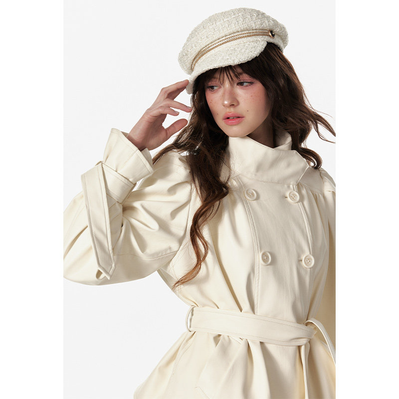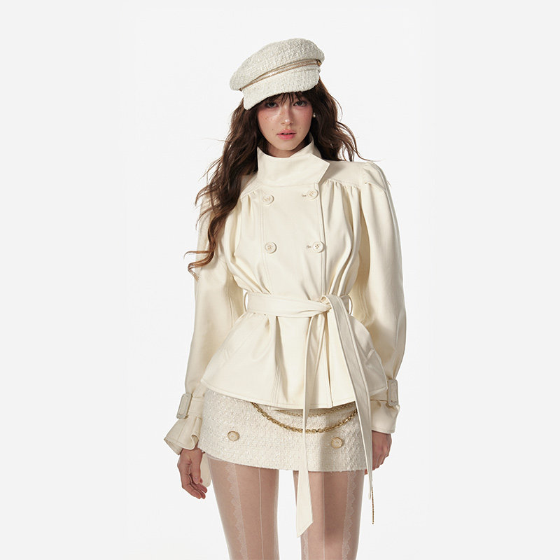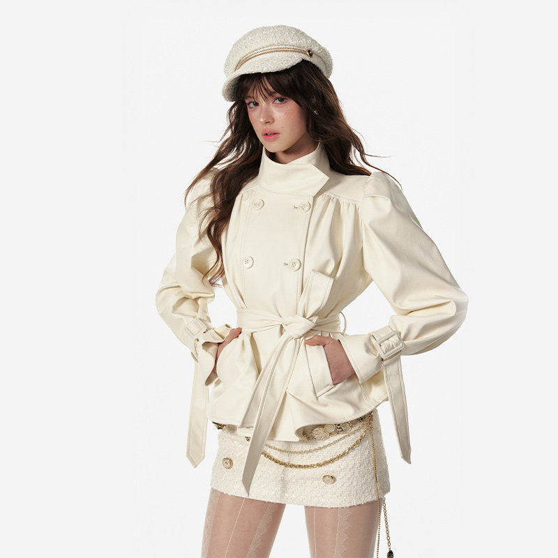 4 -маггл оригинальный дизайн высокий модный зонтик складывает складки и воротник белая кожаная одежда темперамента горячая девушка топ -короткая внешняя куртка самка