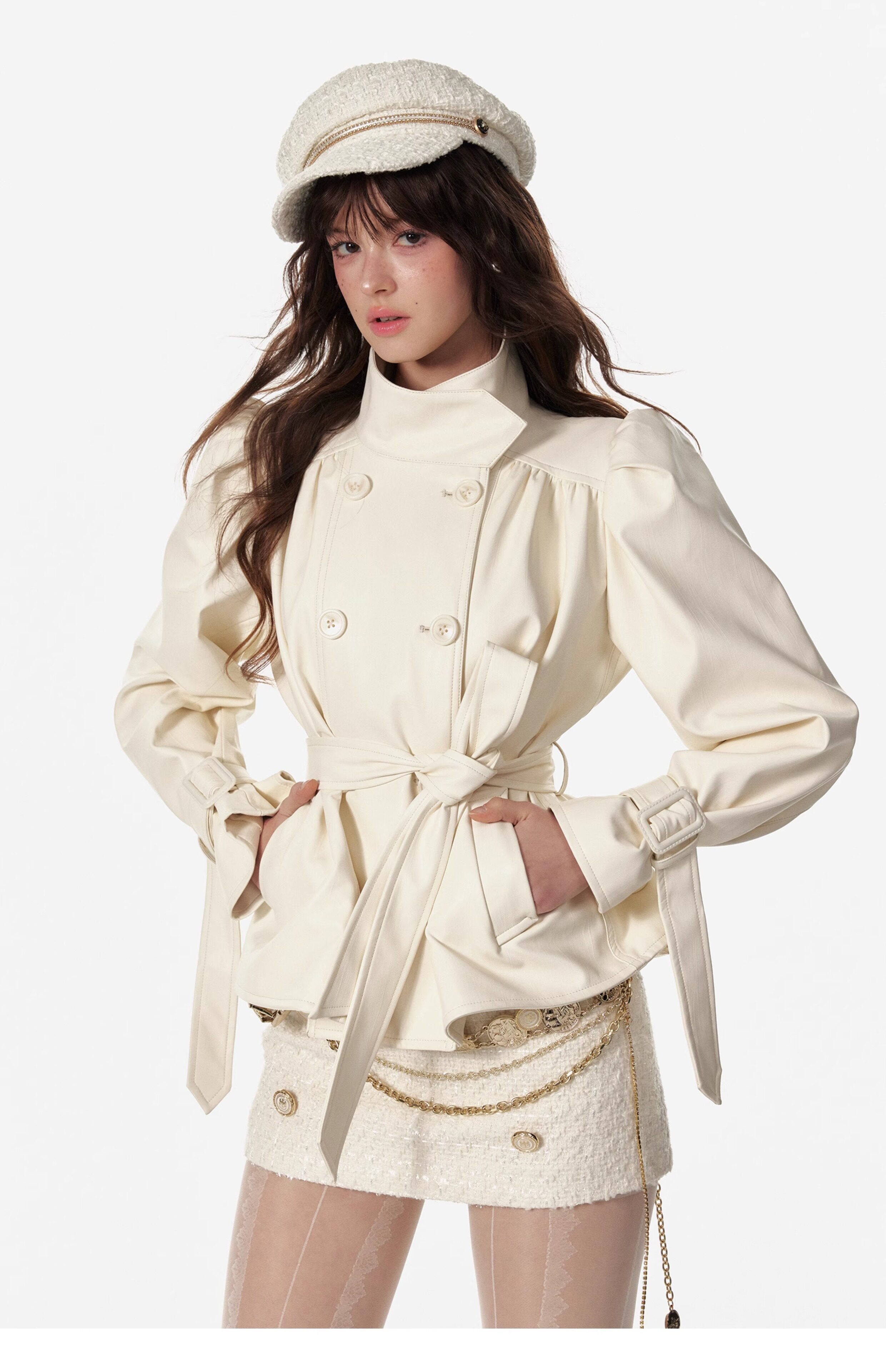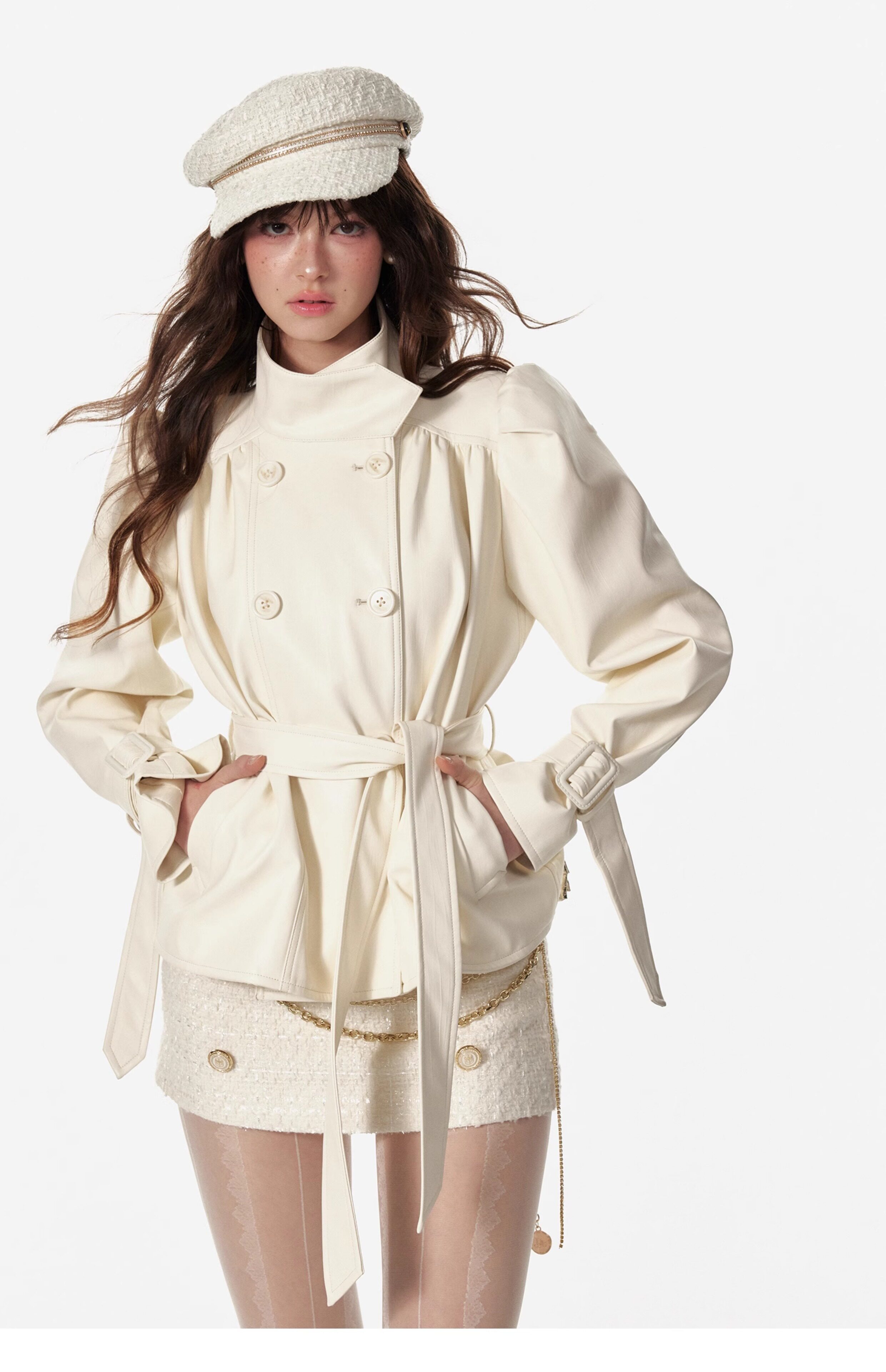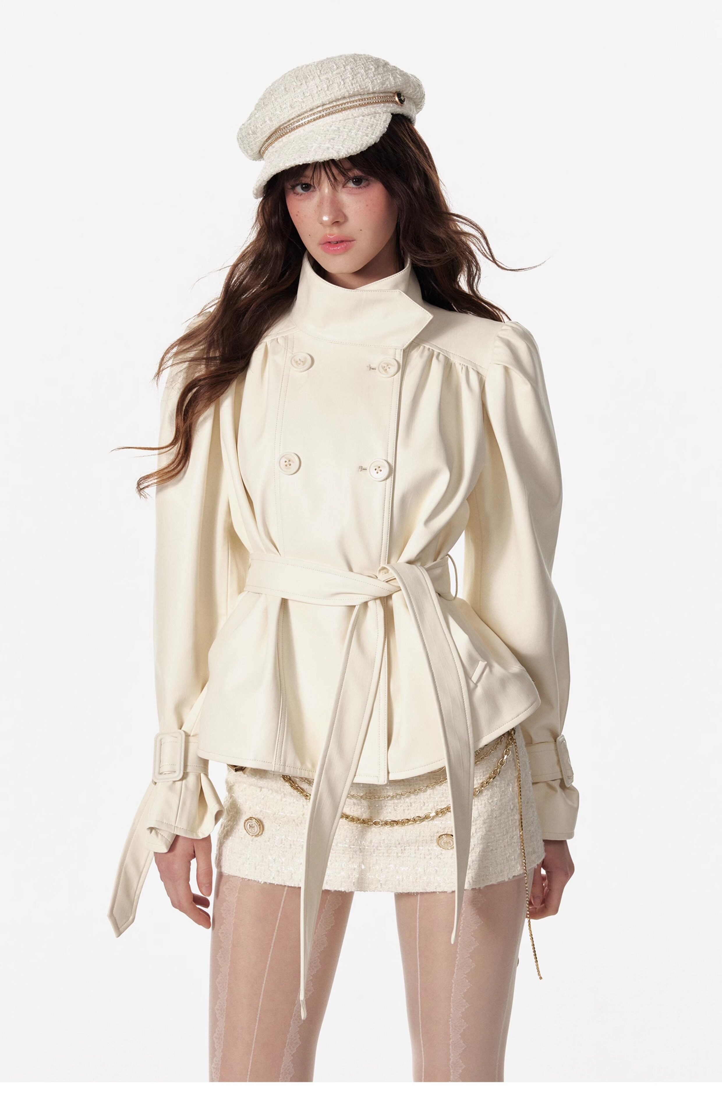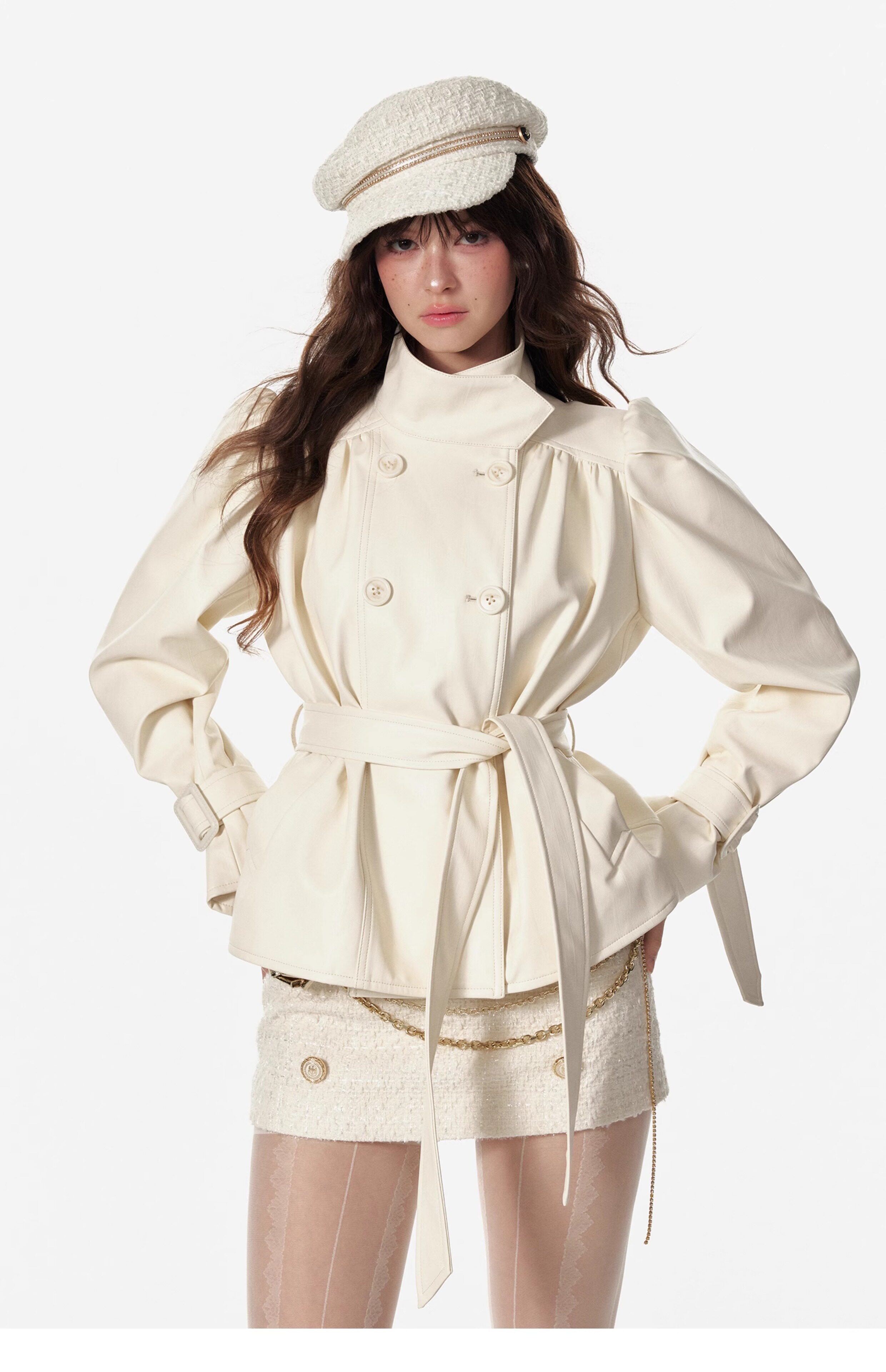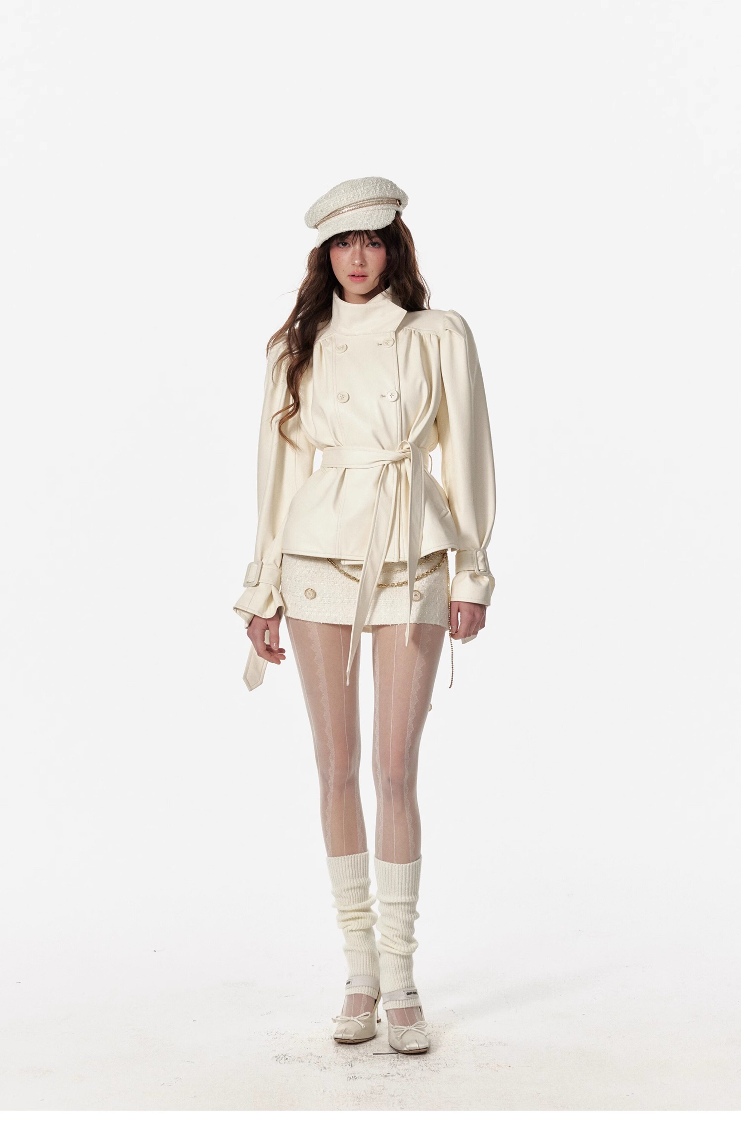 4 -маггл оригинальный дизайн высокий модный зонтик складывает складки и воротник белая кожаная одежда темперамента горячая девушка топ -короткая внешняя куртка самка