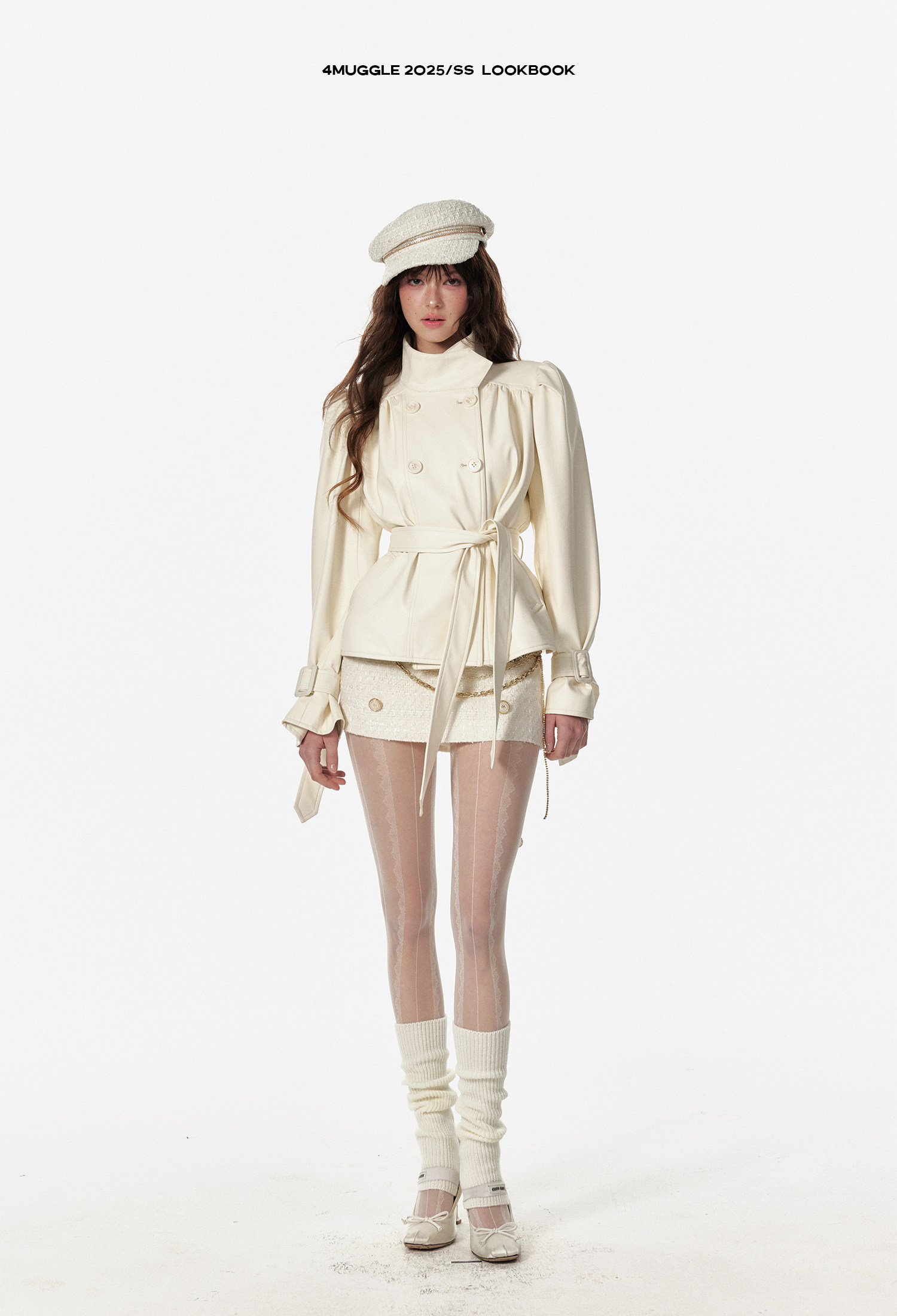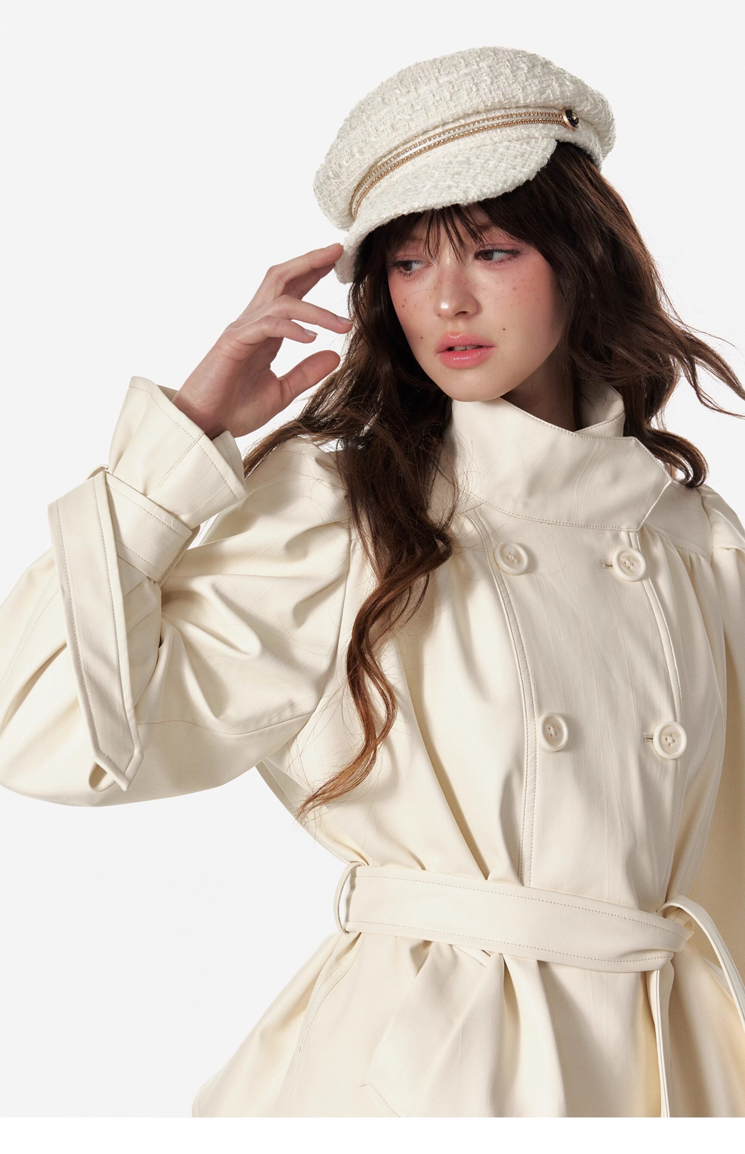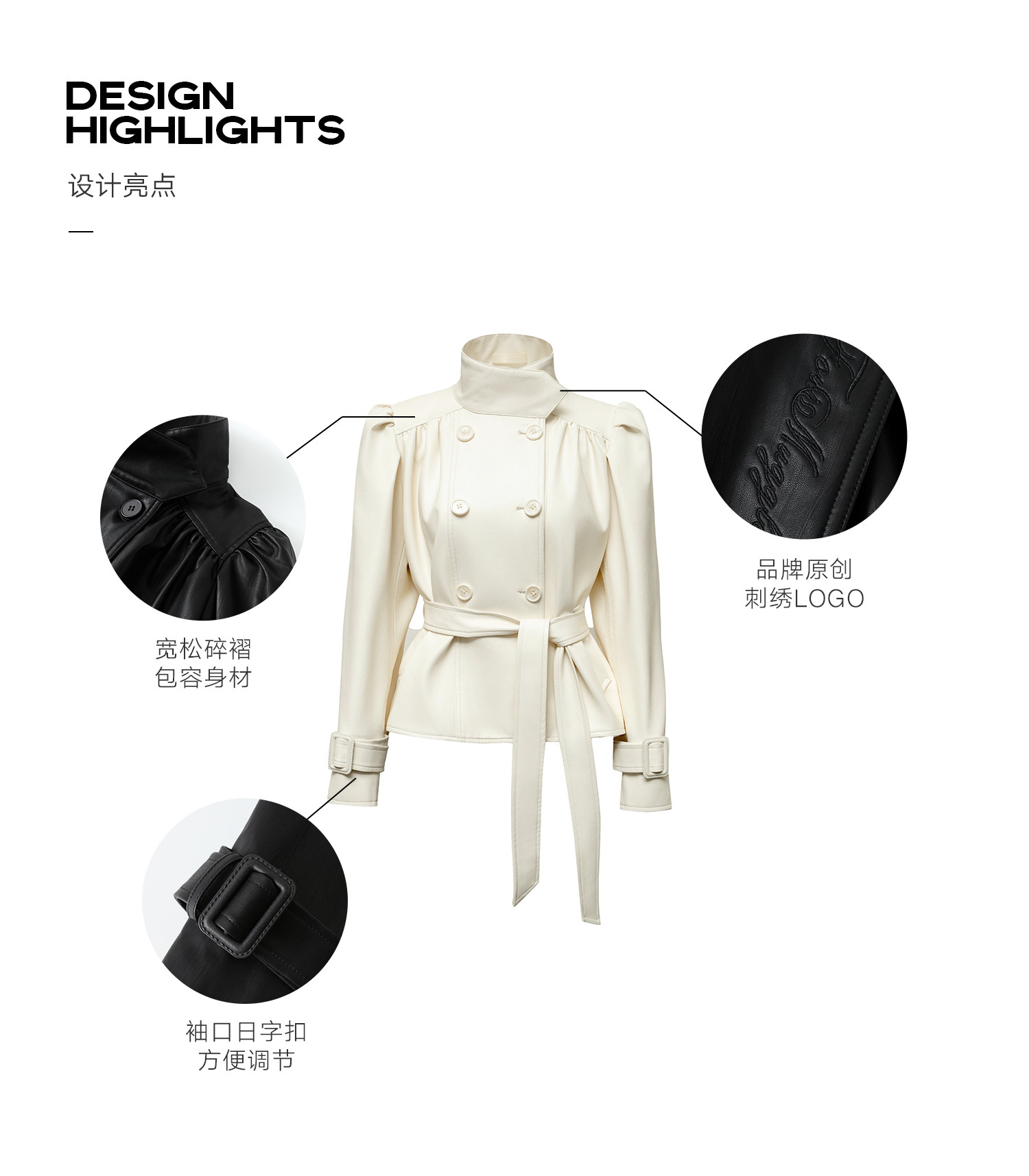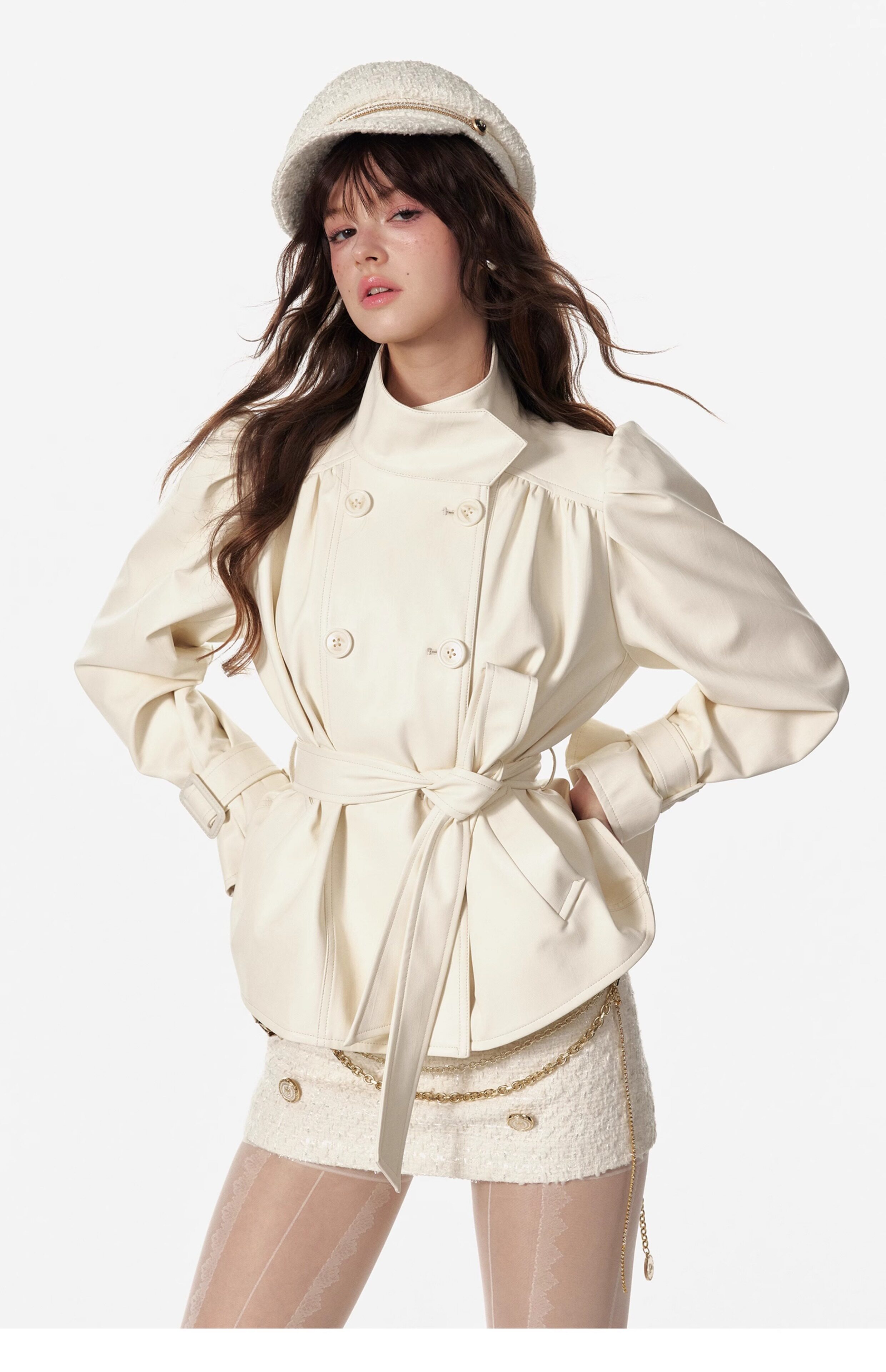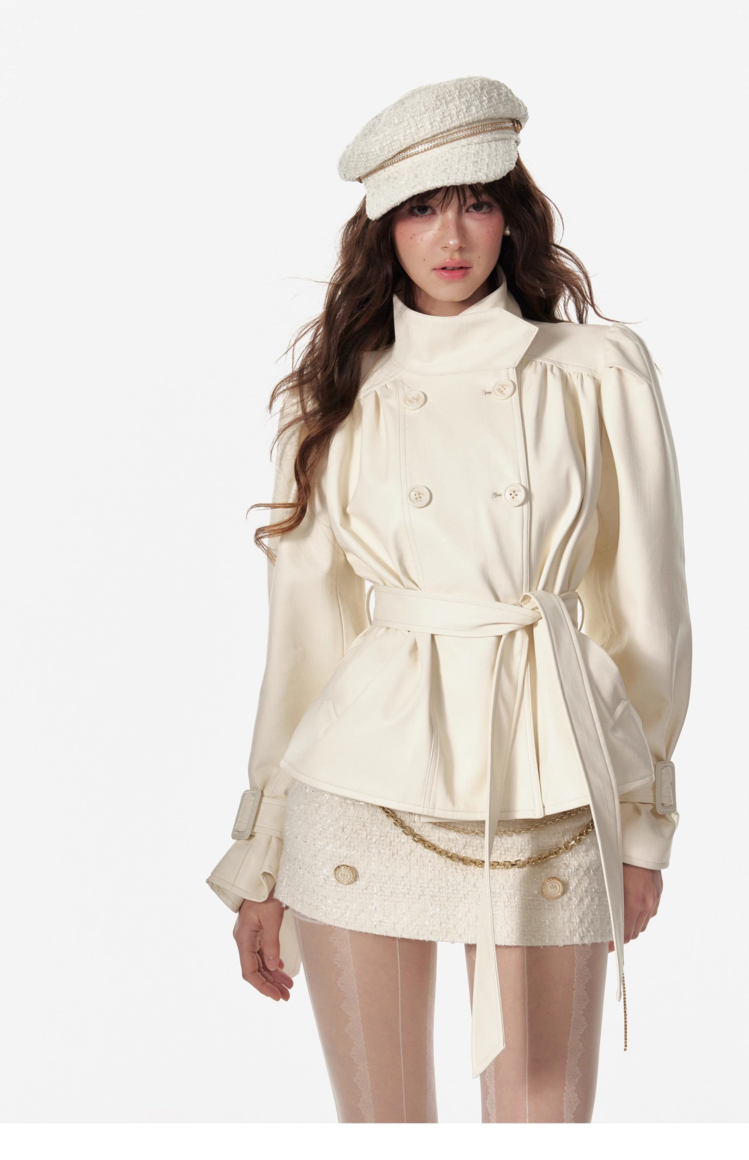4 -маггл оригинальный дизайн высокий модный зонтик складывает складки и воротник белая кожаная одежда темперамента горячая девушка топ -короткая внешняя куртка самка
