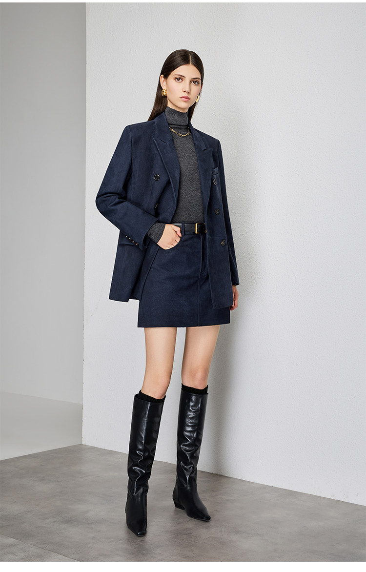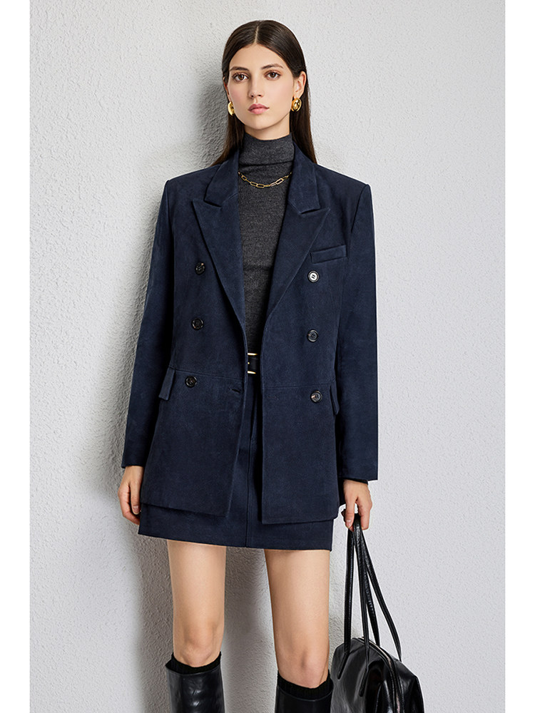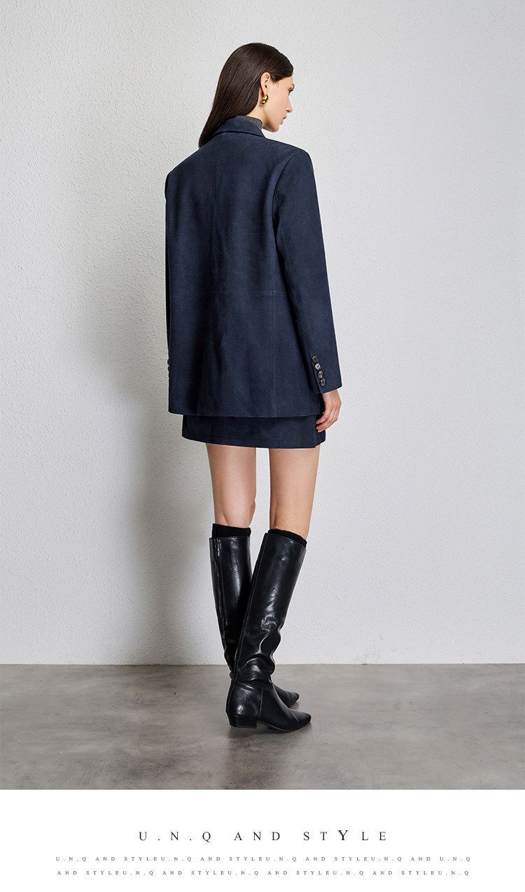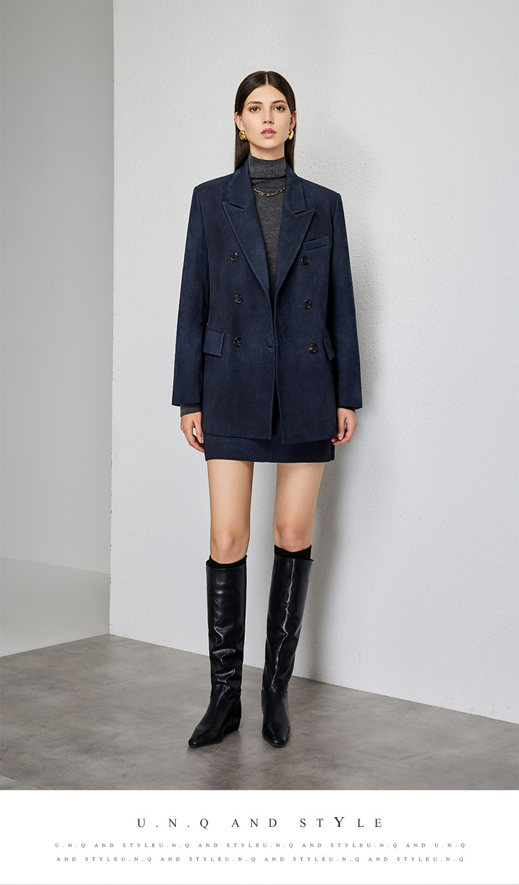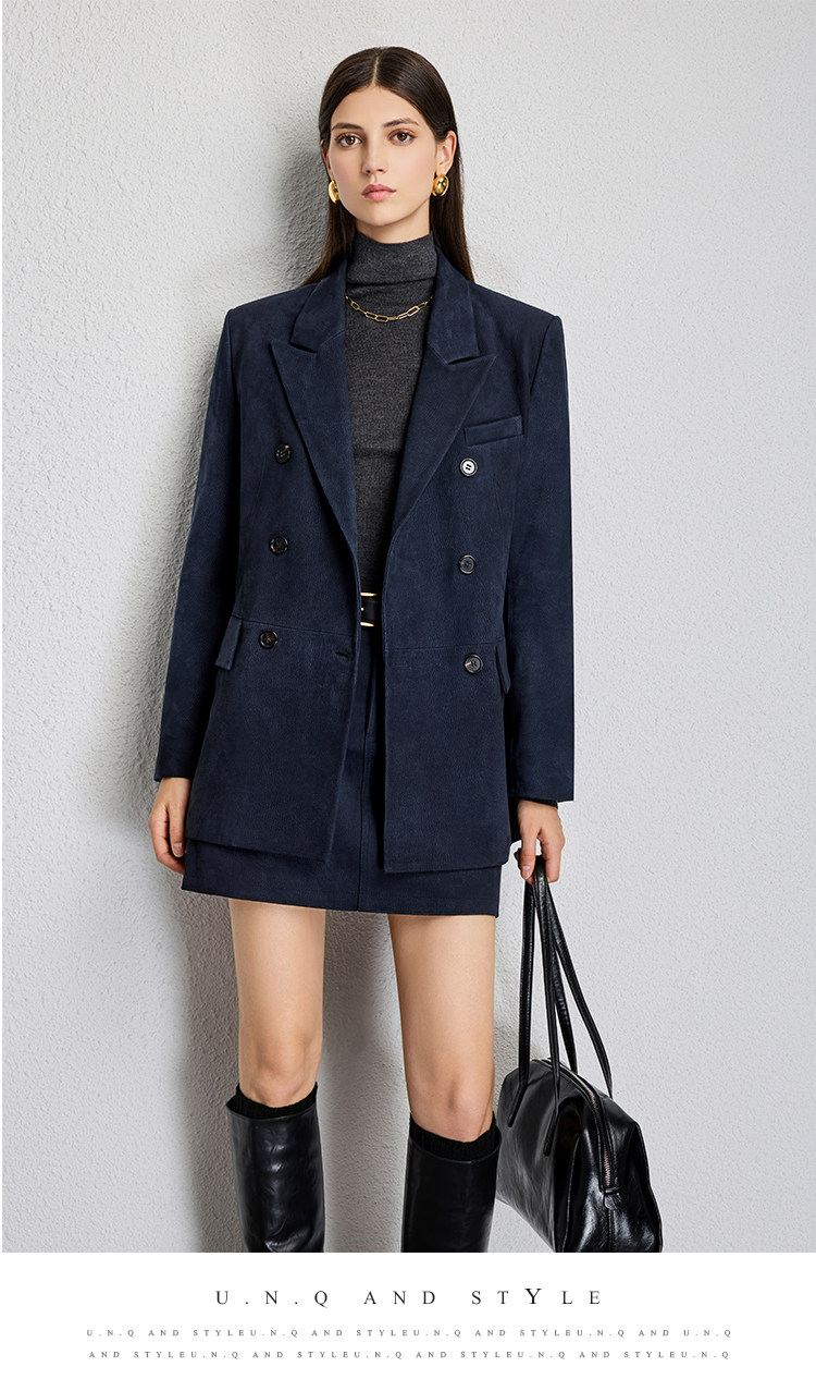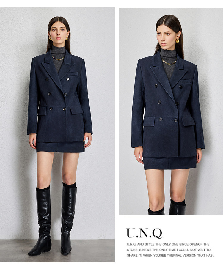 UNQ Британский стиль старых денег, импортный специальный замшевый двубортный пиджак/юбка из козьей кожи