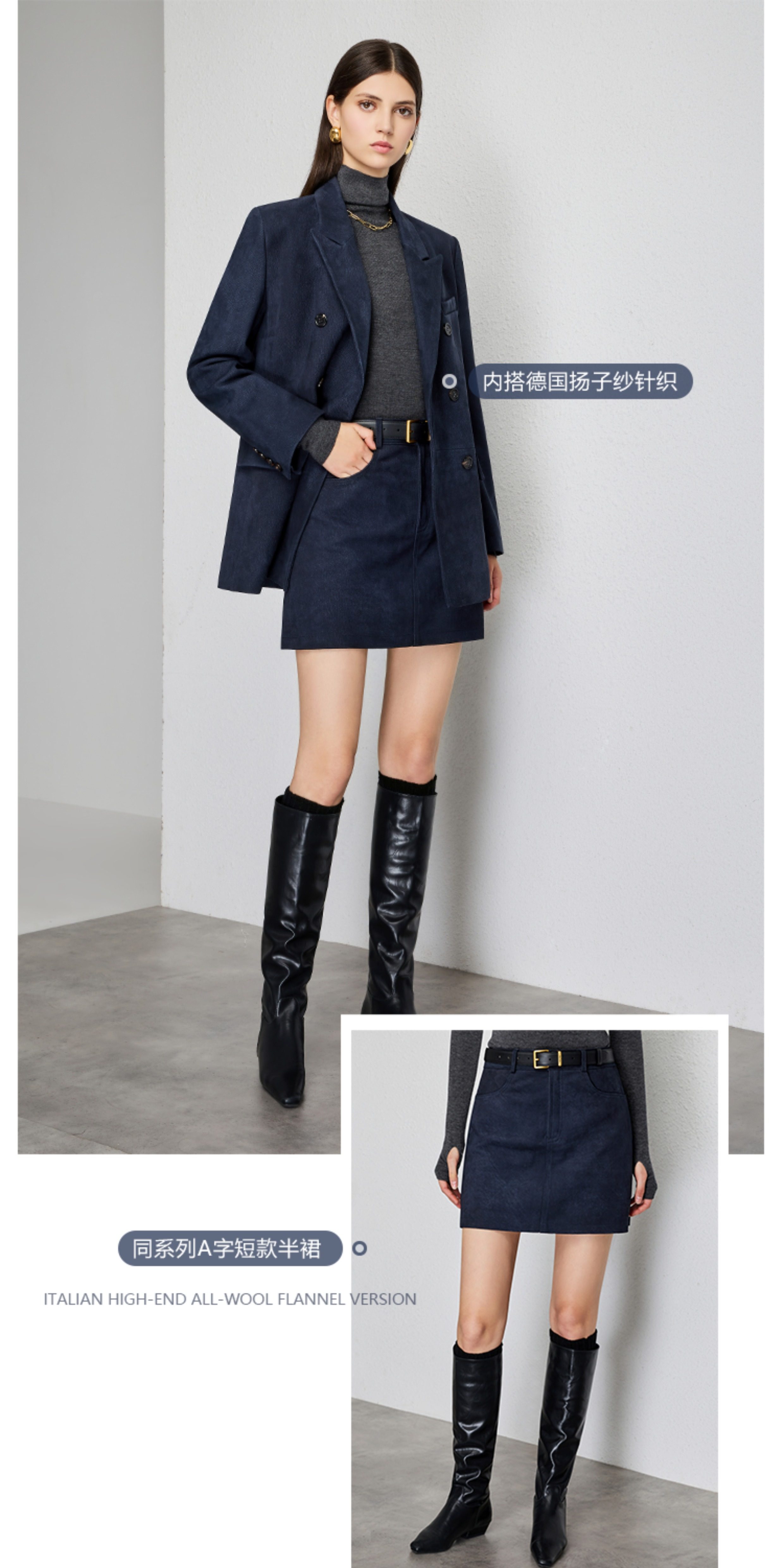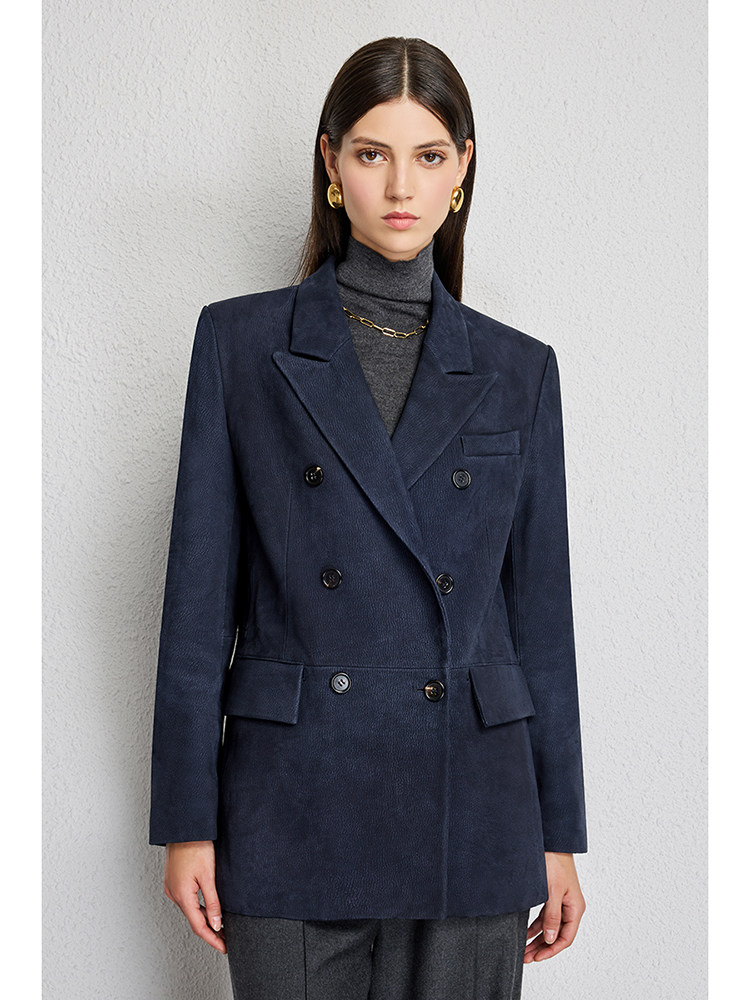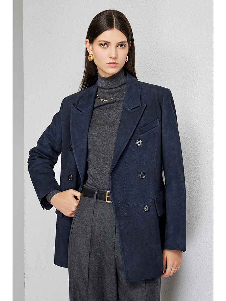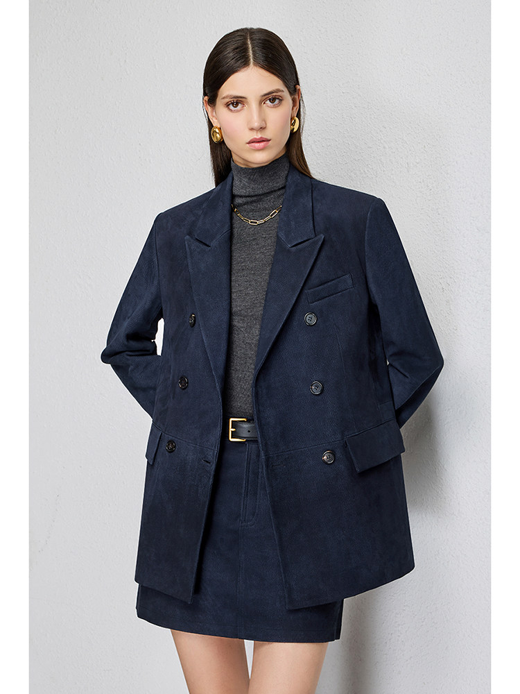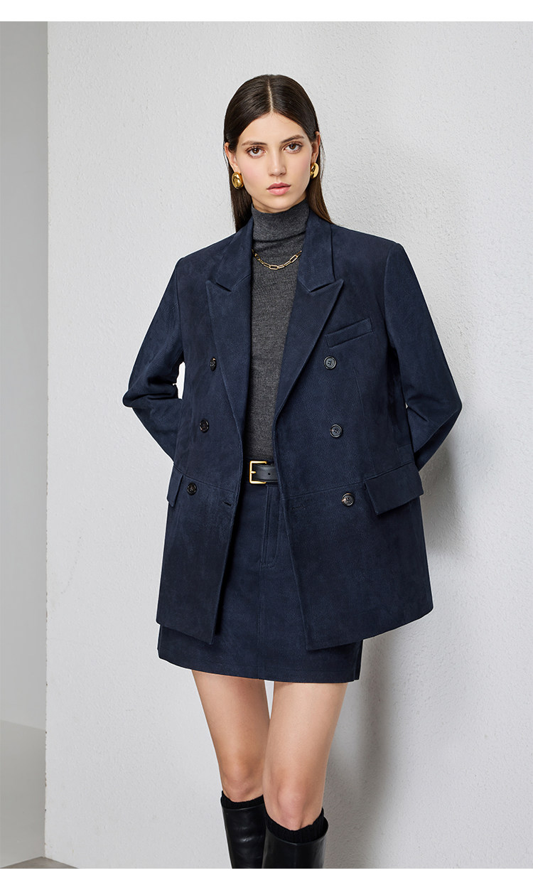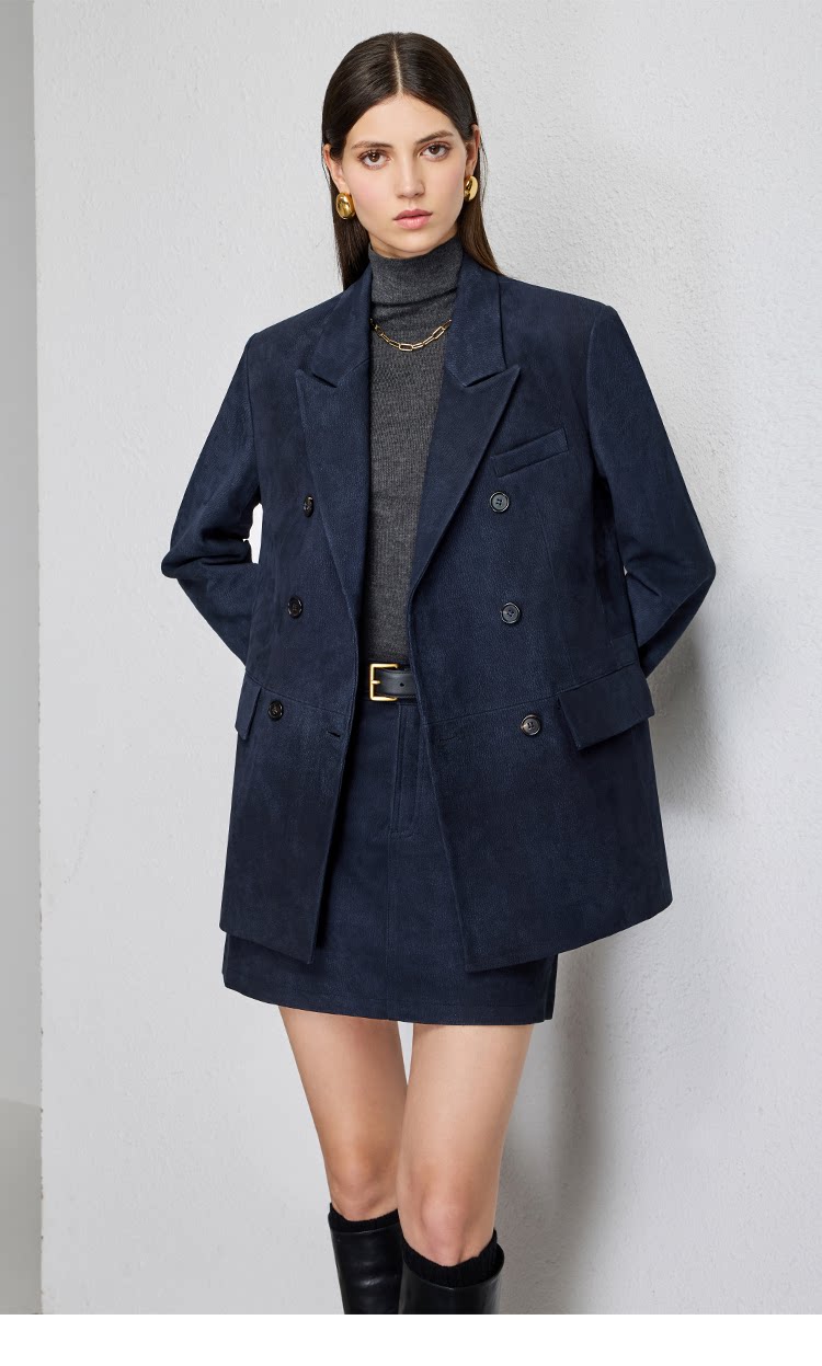 UNQ Британский стиль старых денег, импортный специальный замшевый двубортный пиджак/юбка из козьей кожи