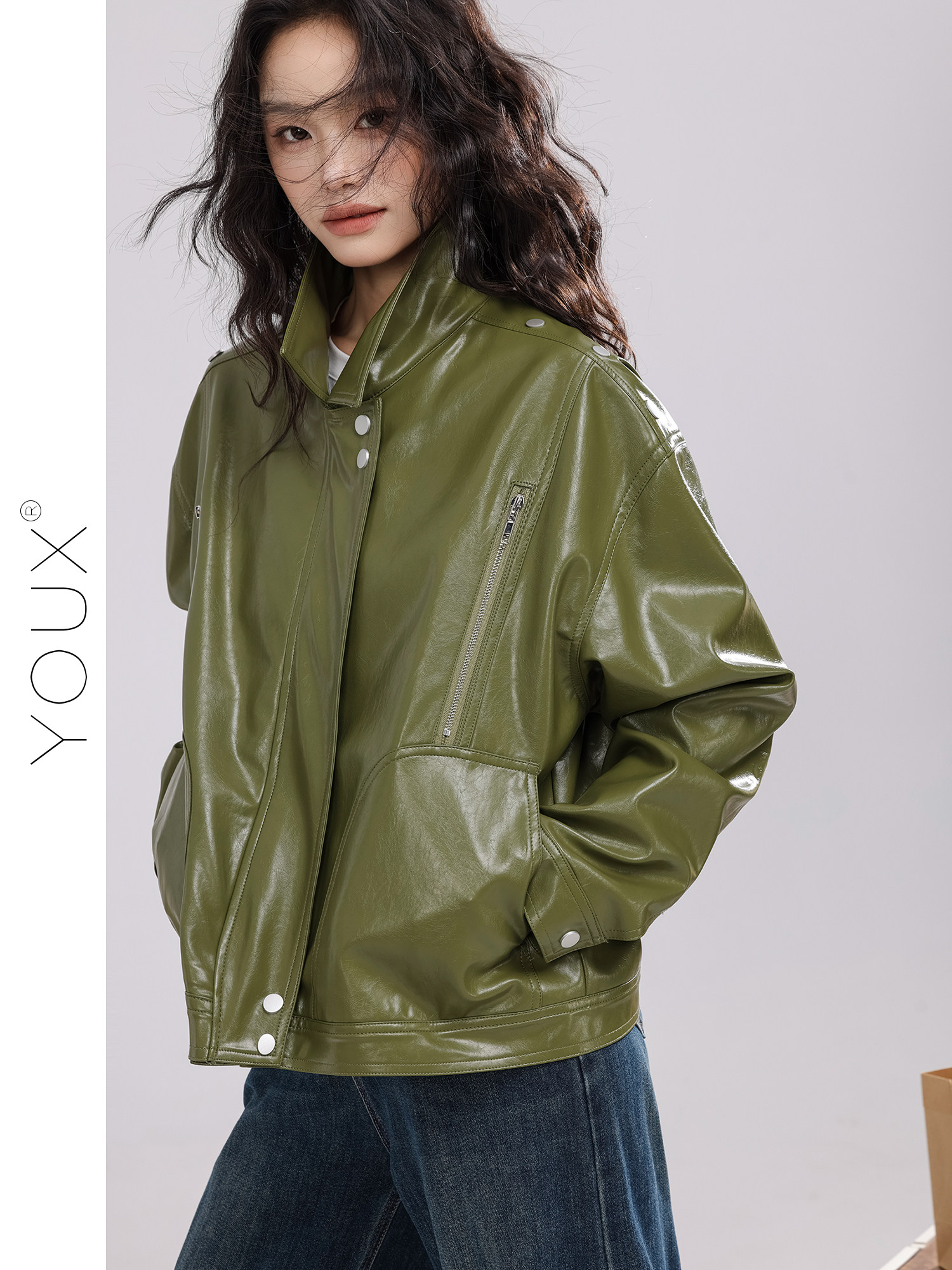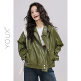 Зеленая полиуретановая осенняя дизайнерская куртка, тренд сезона