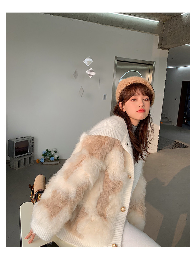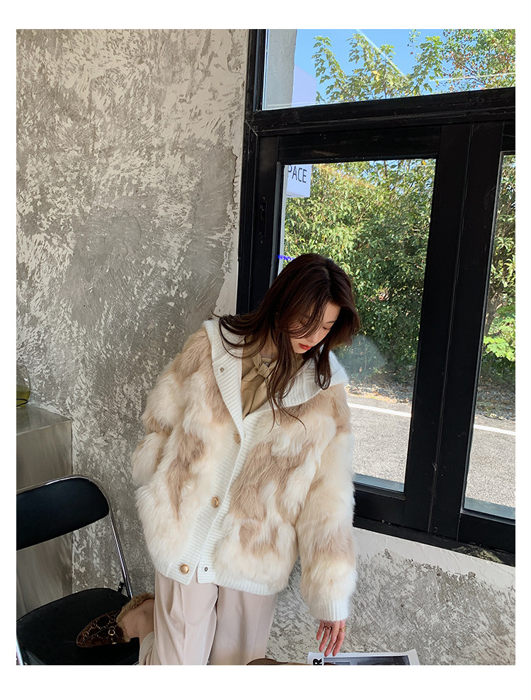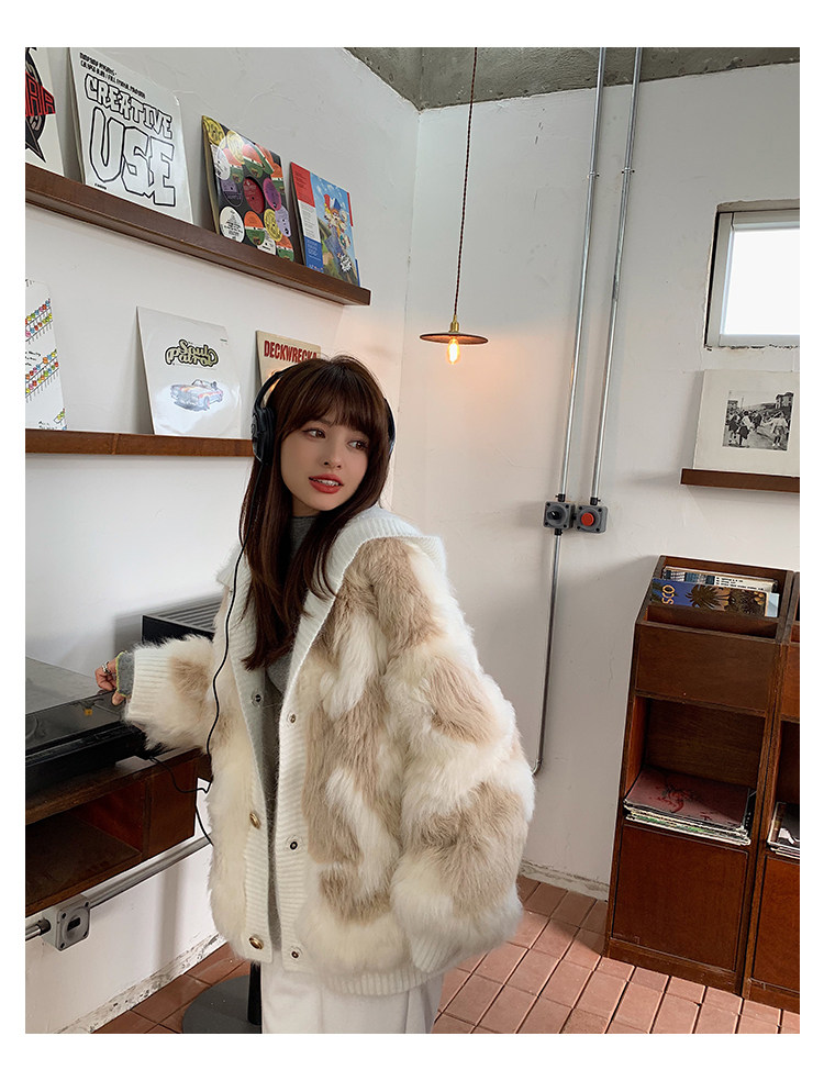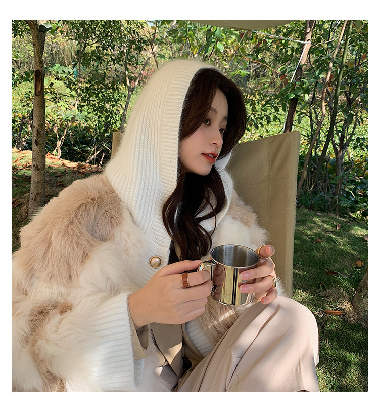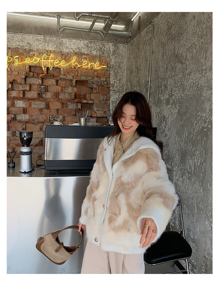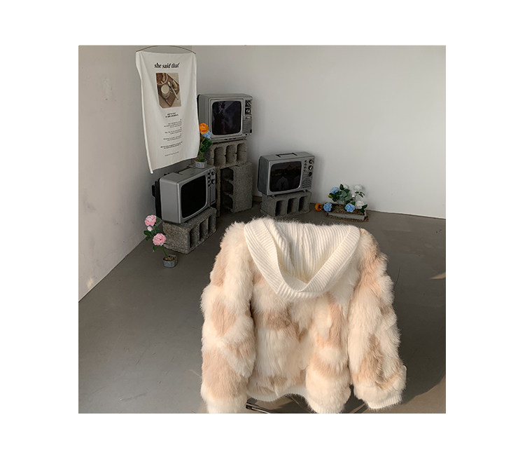Вся версия слегка свободно, в верхней части тела достаточно баланса, чувства сдержанности не будет, и терпимость тела также очень терпимо.Длина одежды - это обычный короткий дизайн.Шляпы и пластины.Манжеты и подол - все вязание цветов.