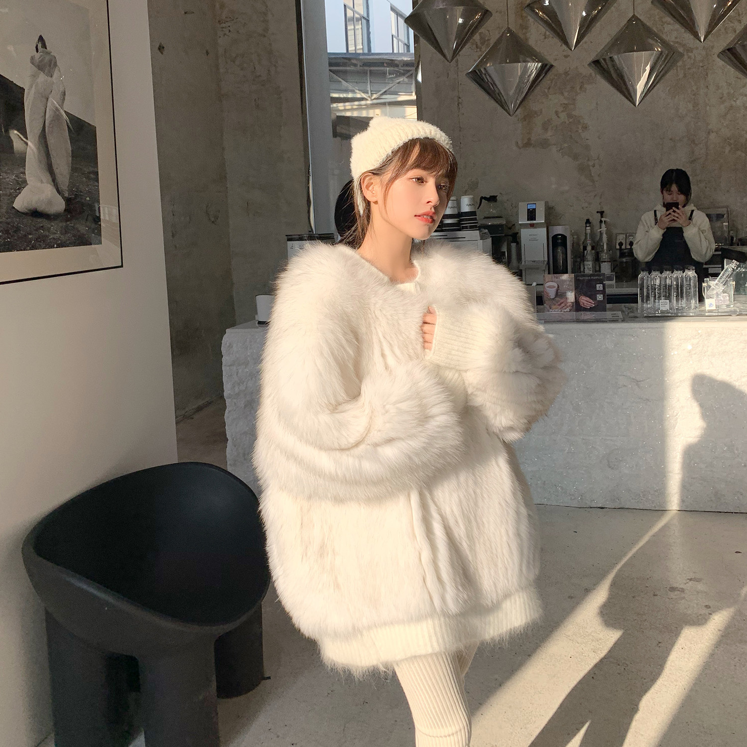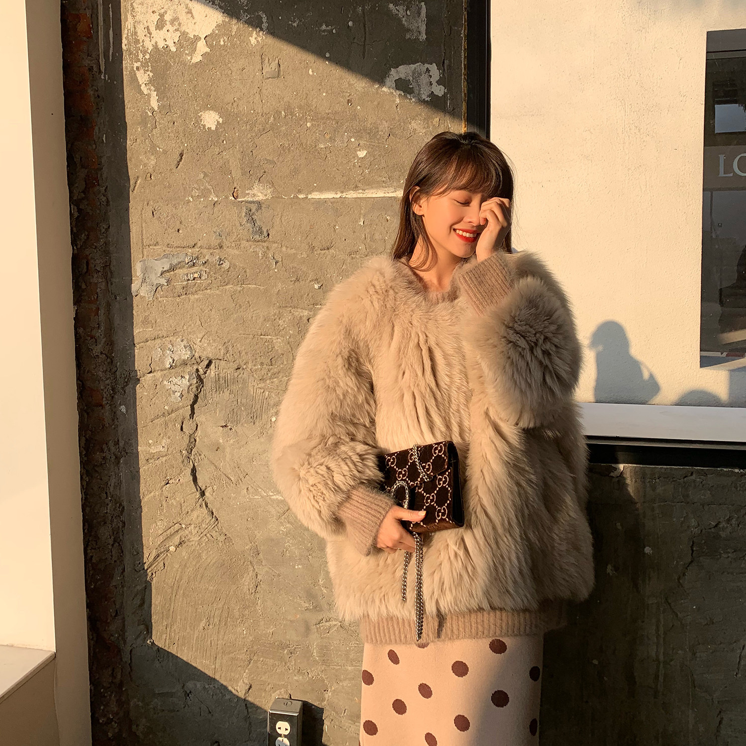 Вообще говоря, это волосатое пальто Fox, которое очень легко носить и контролировать.Смотрит с темпераментной юбкой, очень нежная и атмосферная.