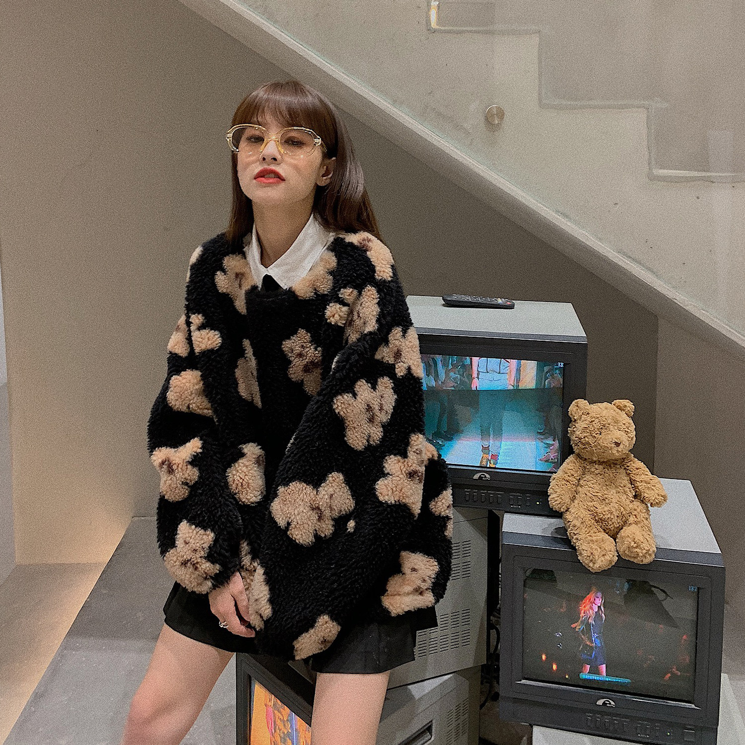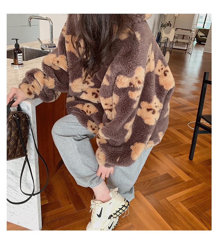 Импортная шерстяная милая куртка в форме цветка, с медвежатами