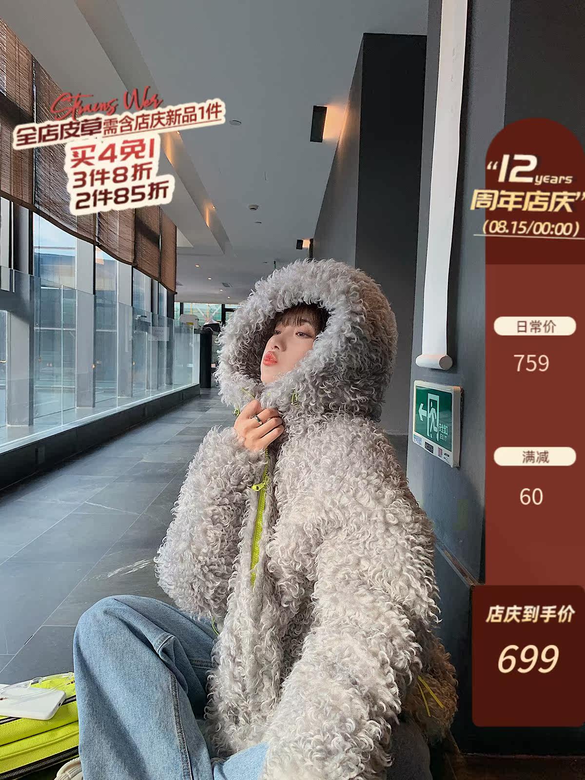 [4 бесплатно 1] «Тедди» Xiaohua 21 Новый импортный рулонный меховой меховой трава с капюшоном.