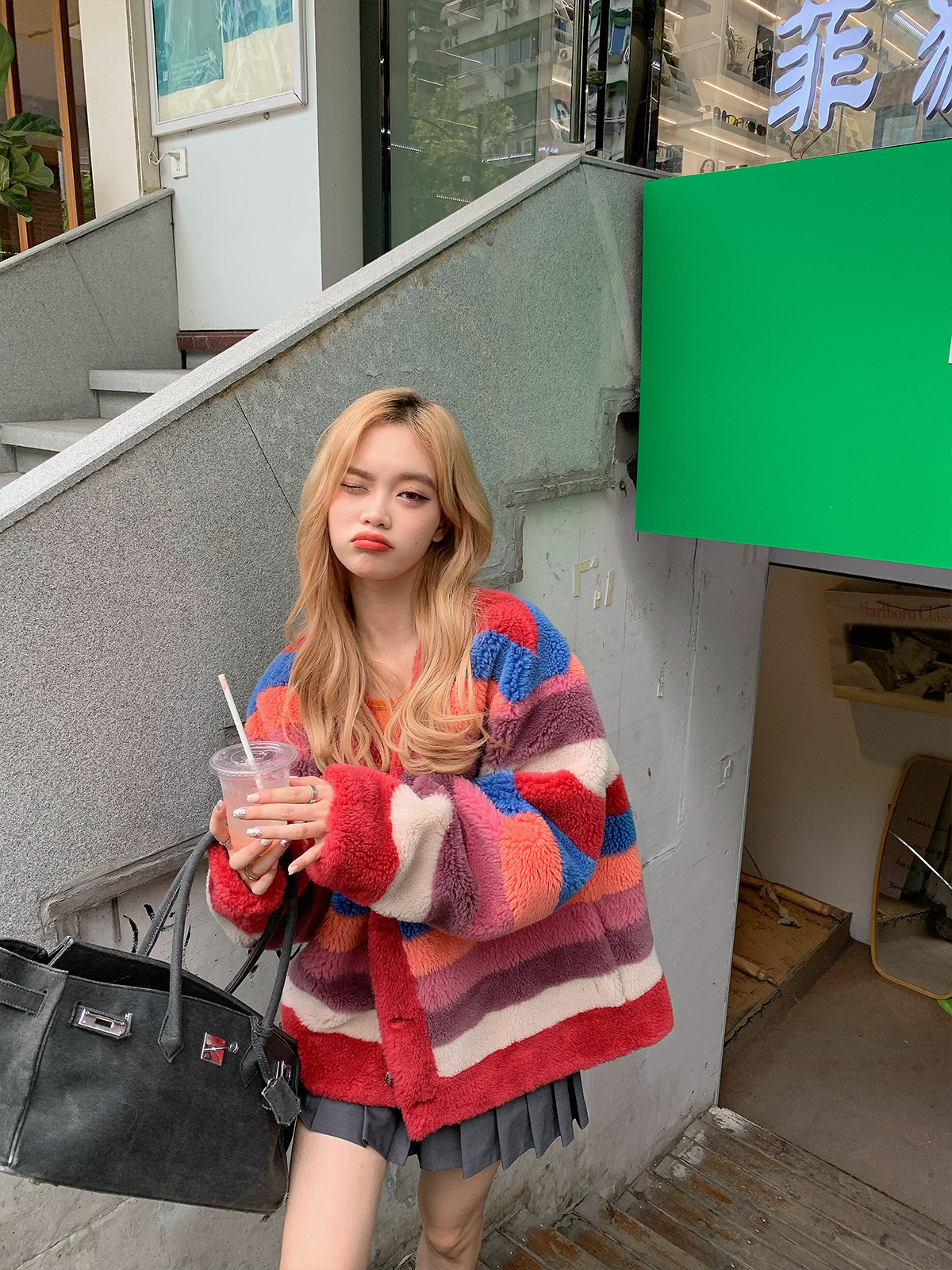 Радужная импортная шерстяная бархатная куртка в форме цветка