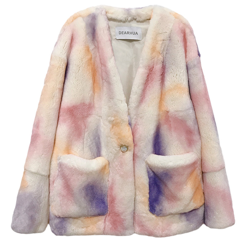 Dearhua xiaohua's "Neon Rabbit" Новое импортированное rex кроличье меховое пальто