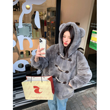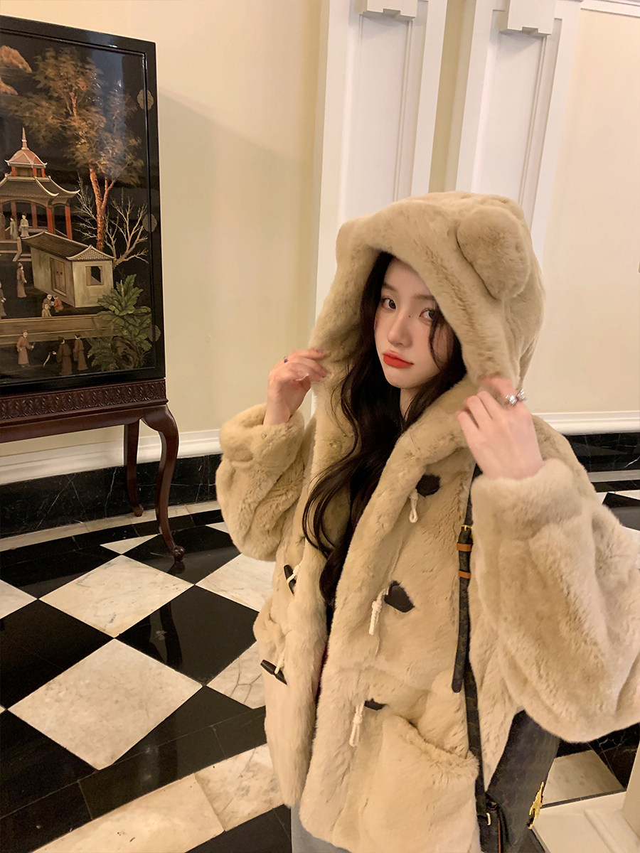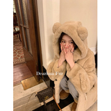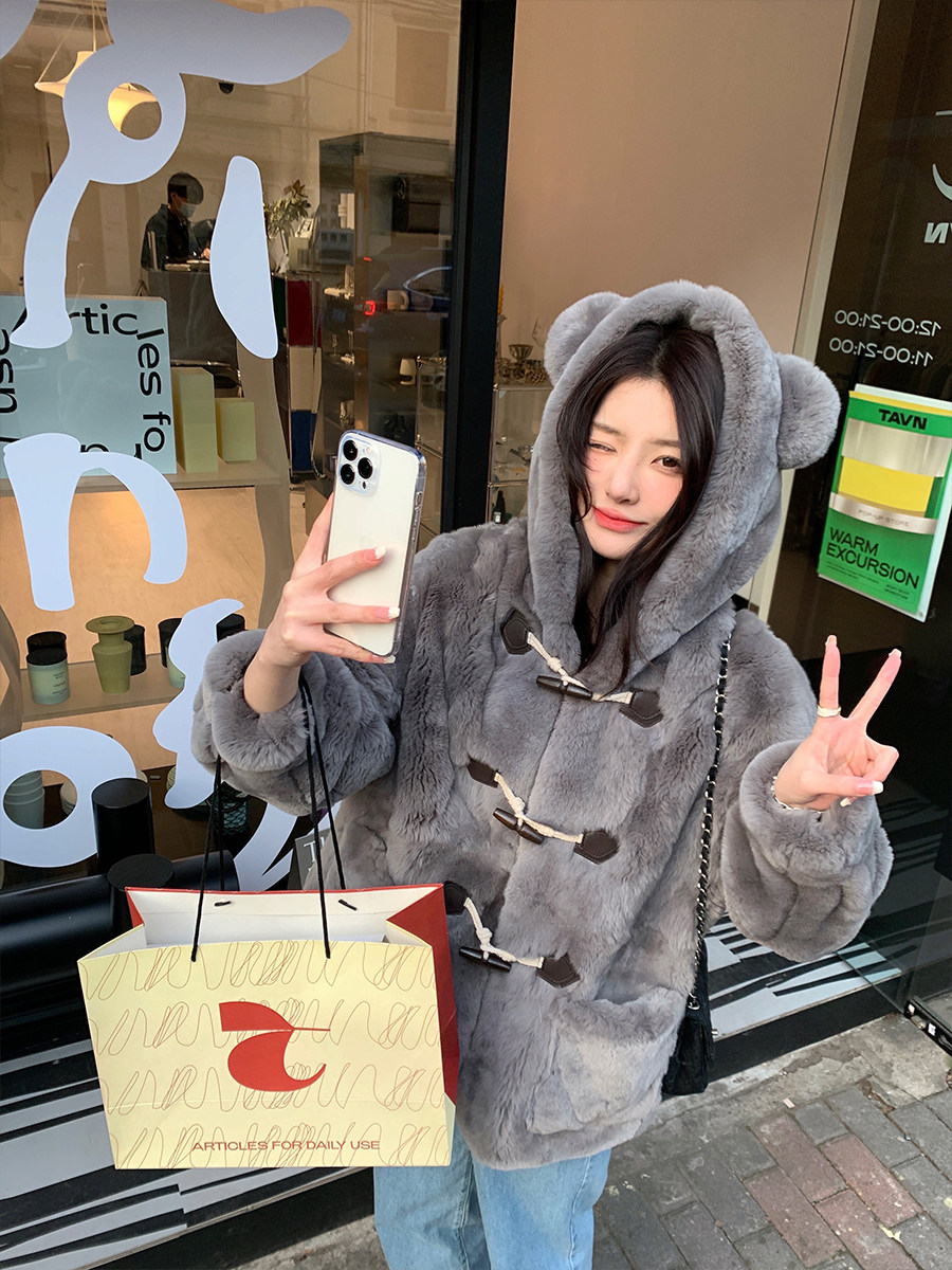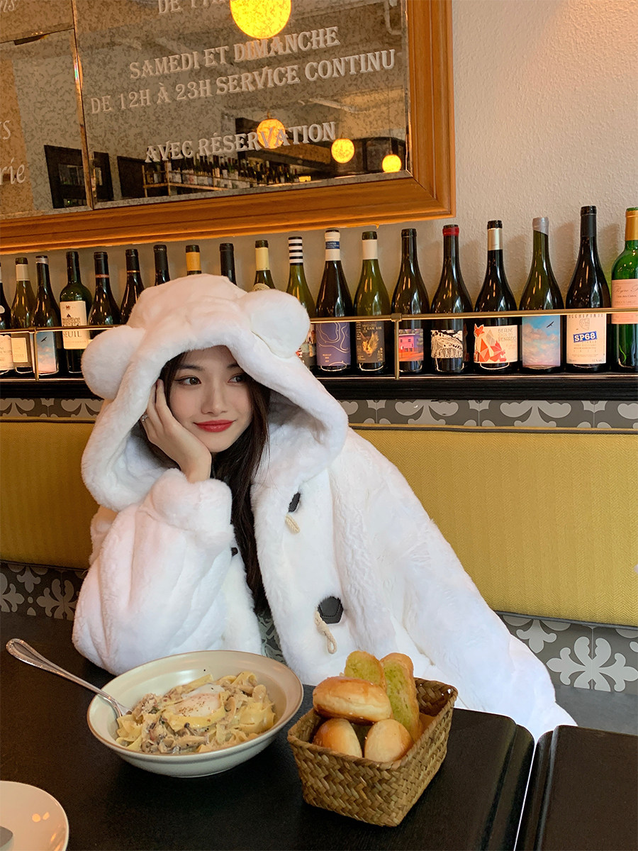 Весь кусок - свободная версия с капюшоном.Длина одежды просто правильная.Дизайн с капюшоном подчеркивает случайный случайный тон ~Сочетание медвежьих ушей и пряжков рога добавляет игривую и милую атмосферу.Крупные карманы, маленькие руки намного теплее мгновенно.