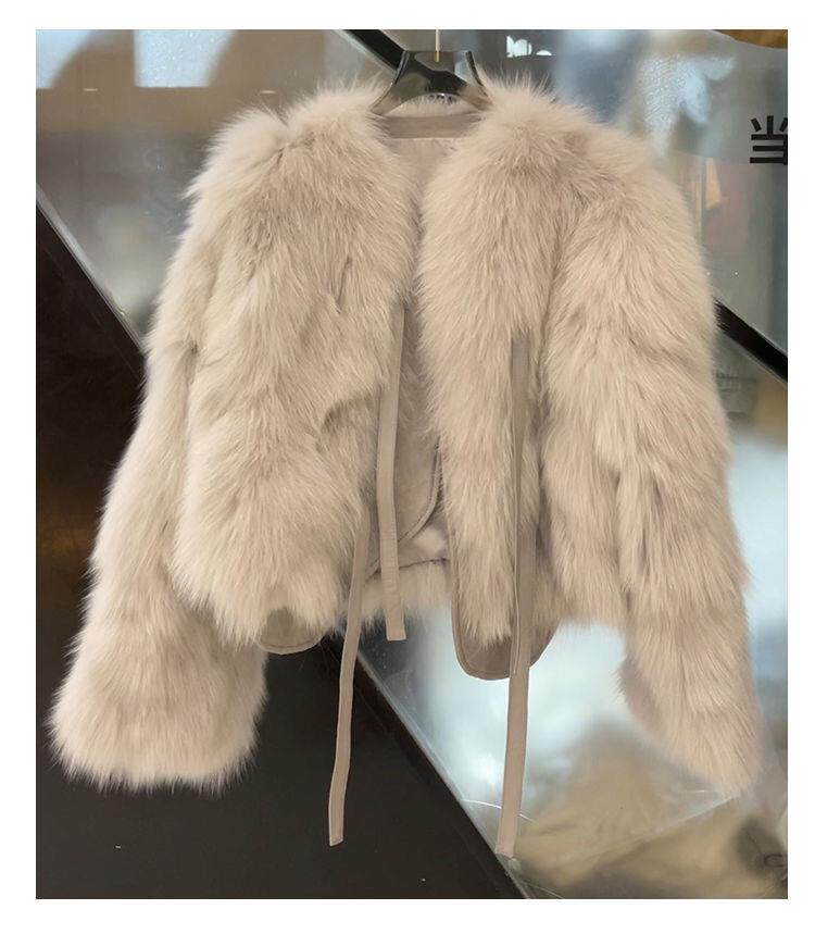 Новинка 2024 года, зимнее короткое пальто Haining с искусственным лисьим мехом, женское меховое пальто со встроенным мехом