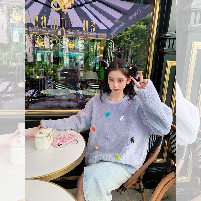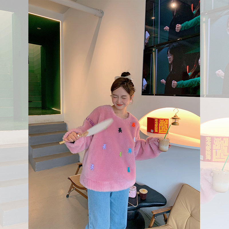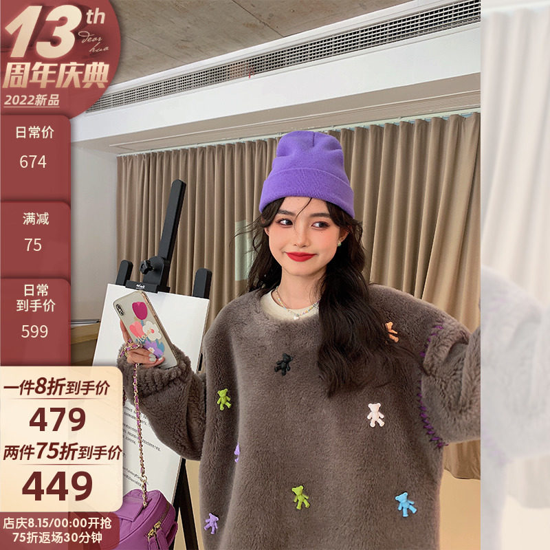 Dearhua xiaohua's "Bear Campaign" 100 All -Wool Lambspse, Сдвиг бархатный меховой пальто самка сладкое стиль